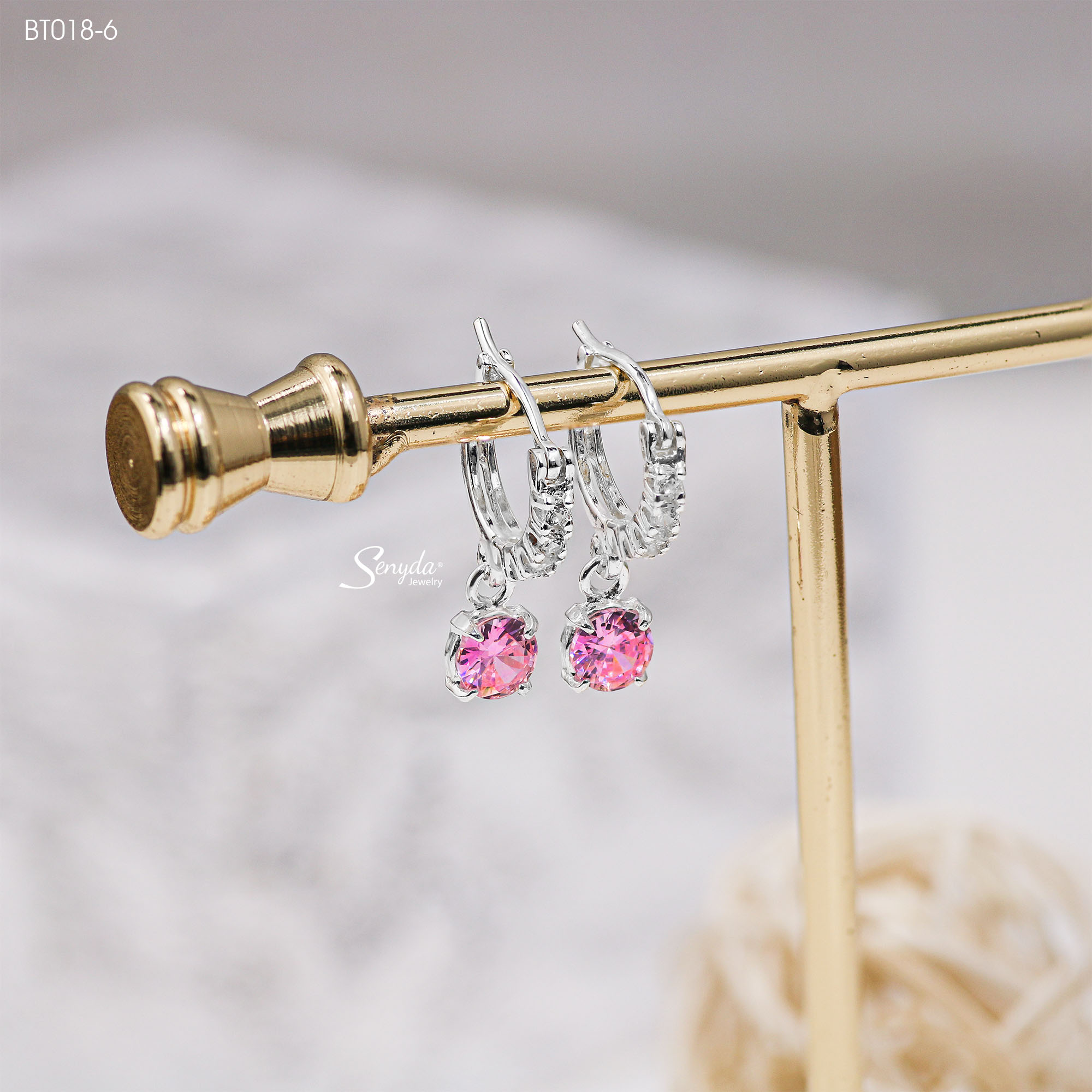 BT018 Bông tai bạc Ý Senyda khoen đá nụ đá