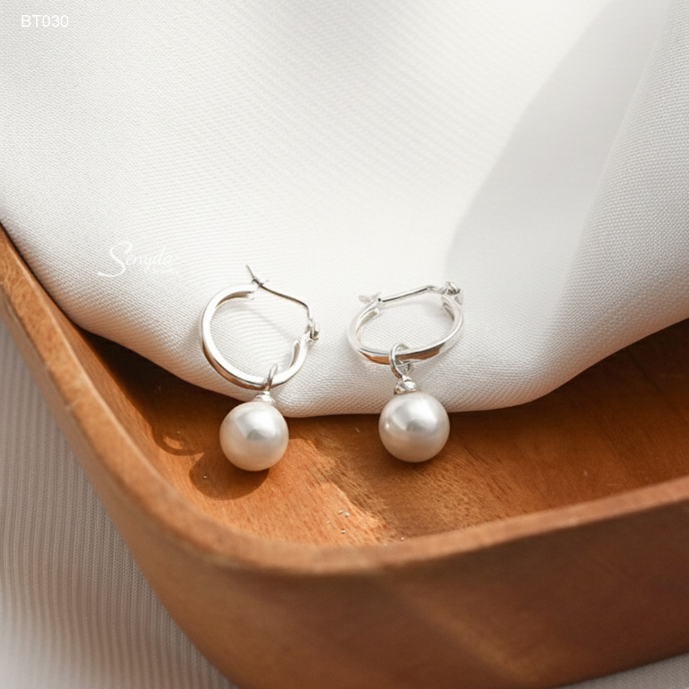 BT030 Bông tai bạc Ý Senyda khoen ngọc trai treo
