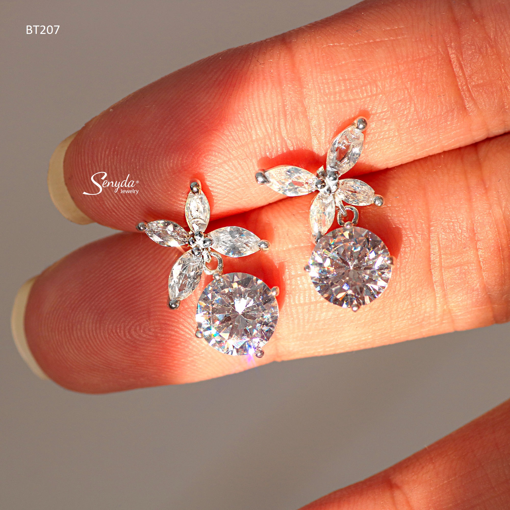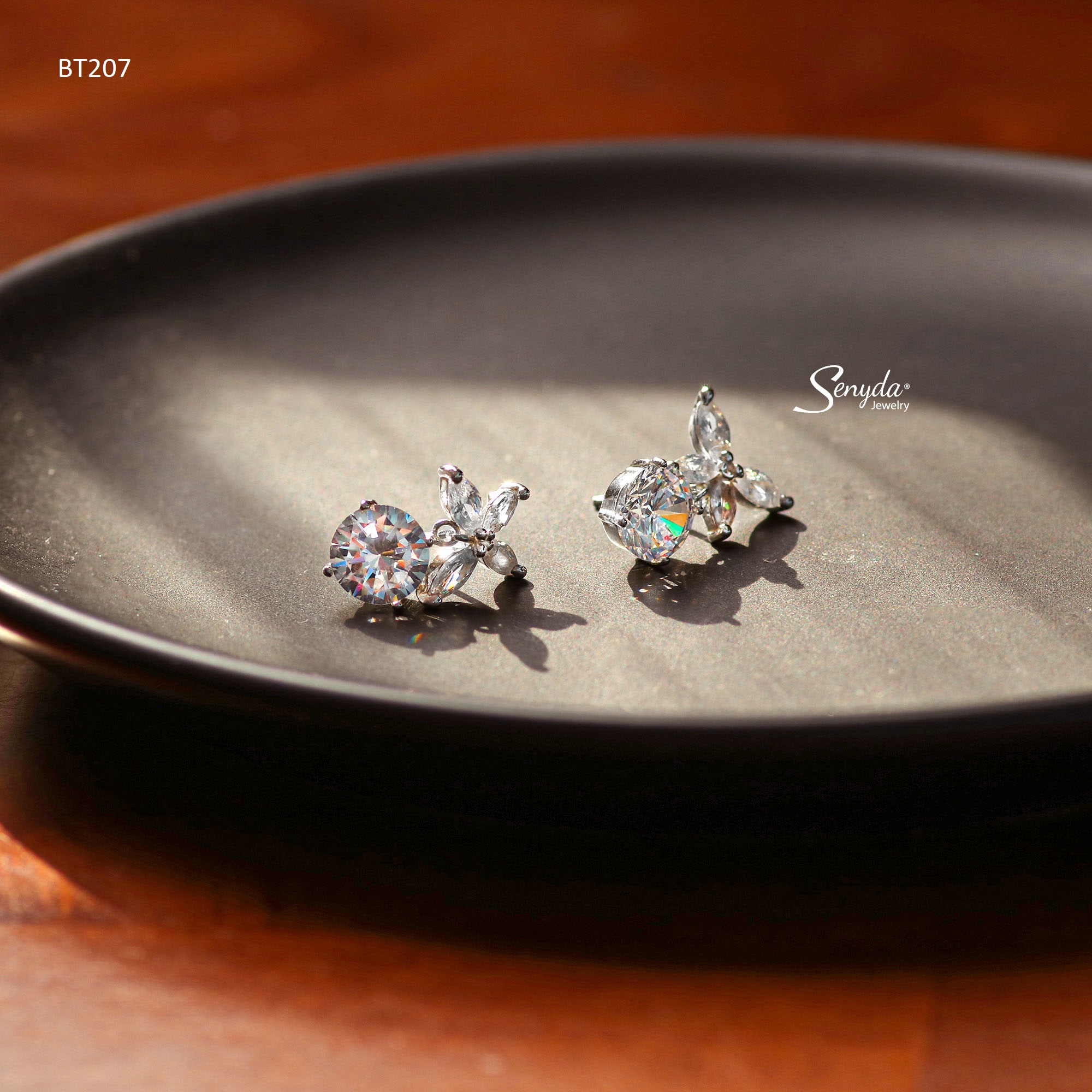 Mô tả: BT207 Bông tai bạc Ý Senyda hoa 4 cánh nụ đá treo