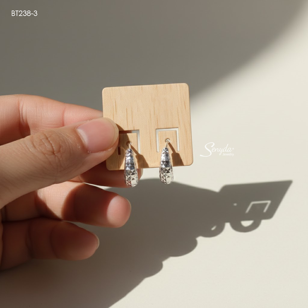 BT238 Bông tai bạc Ý Senyda khoen giác ốp