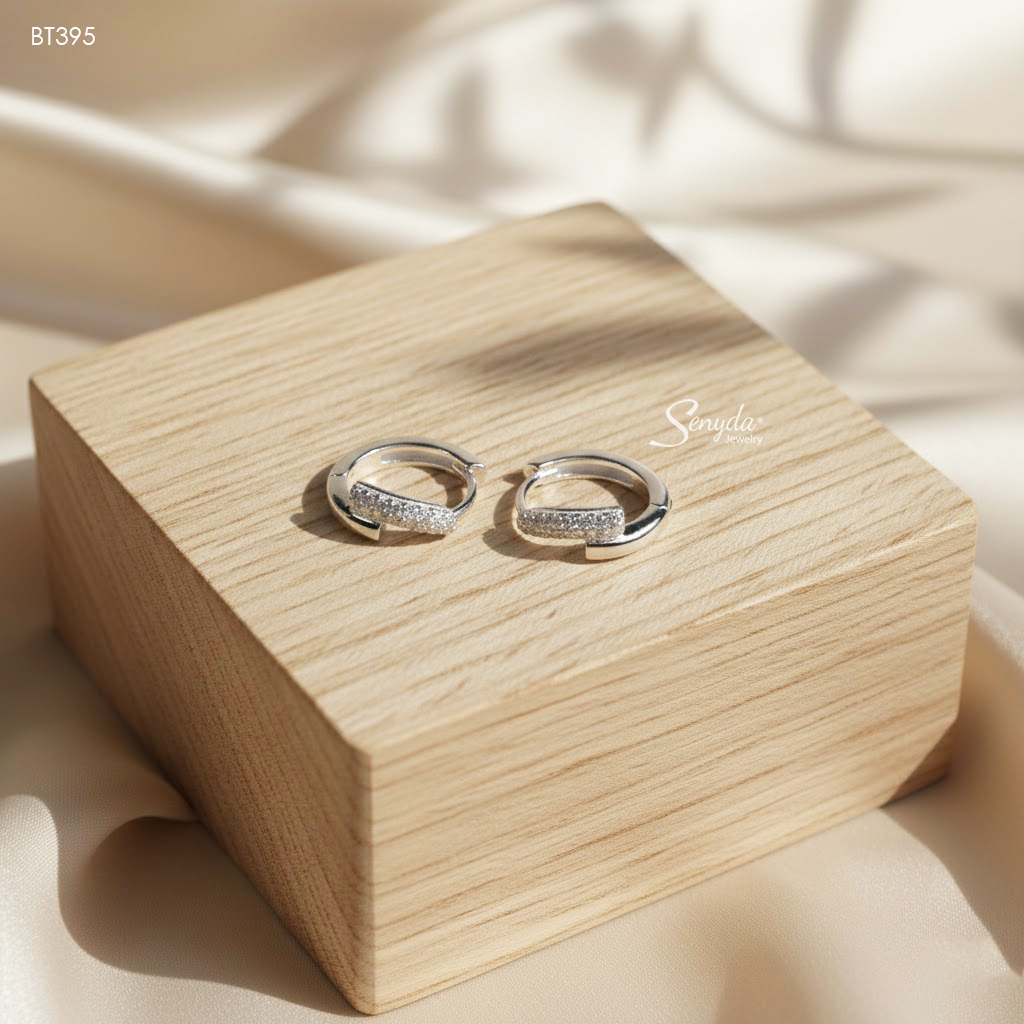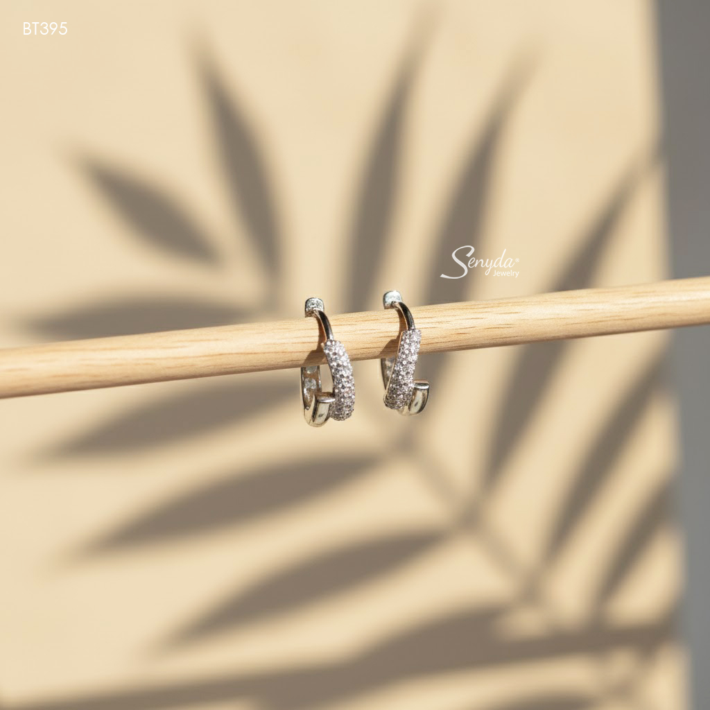 53 đánh giá cho BT395 Bông tai bạc Ý Senyda khoen trơn đá kép