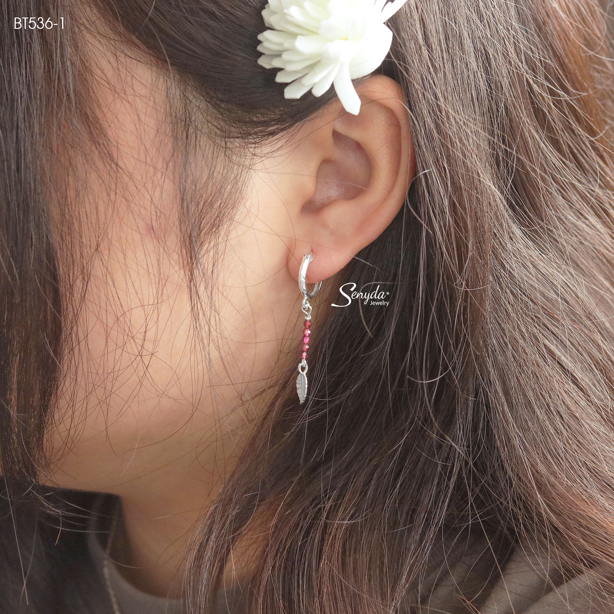 Mô tả: BT536 Bông tai bạc Ý Senyda khoen giác treo đá thiên nhiên