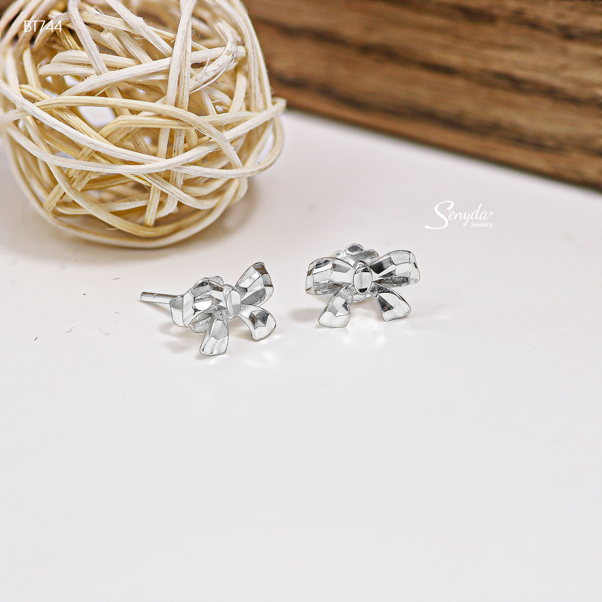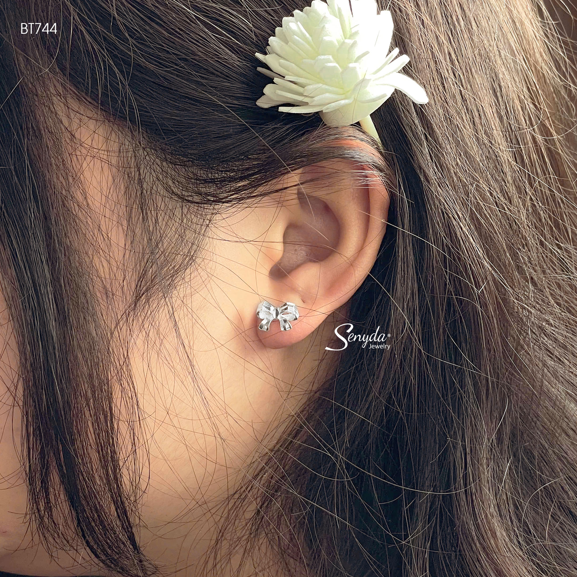 Mô tả: BT744 Bông tai bạc Ý Senyda nơ giác
