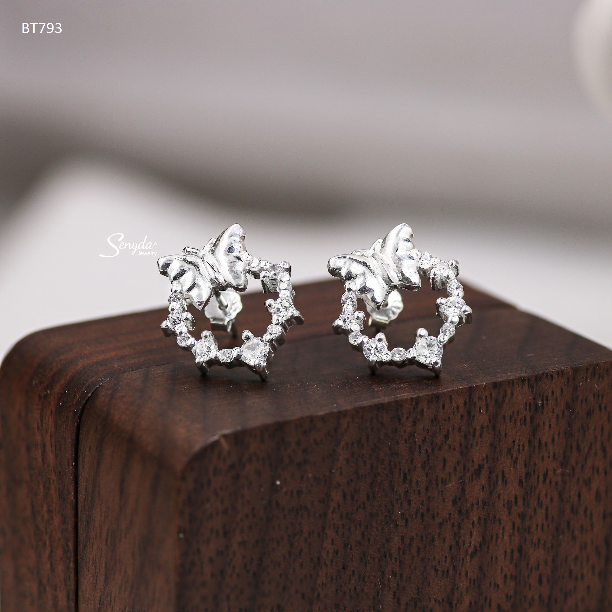 BT793 Bông tai bạc Ý Senyda vòng tròn đá bướm trơn