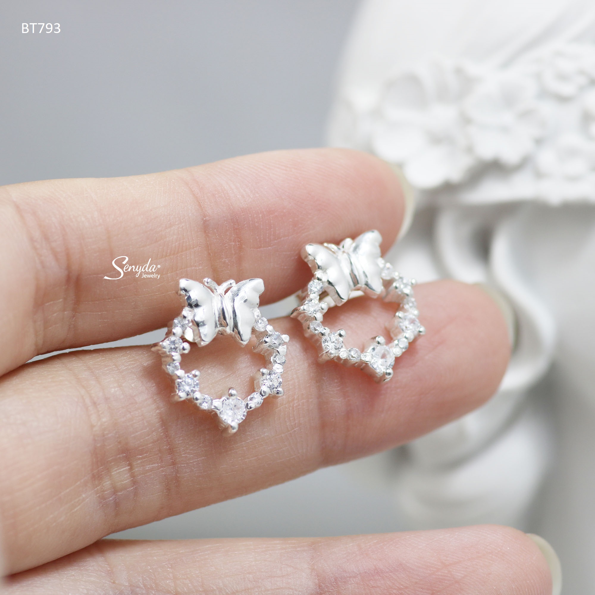 Mô tả: BT793 Bông tai bạc Ý Senyda vòng tròn đá bướm trơn