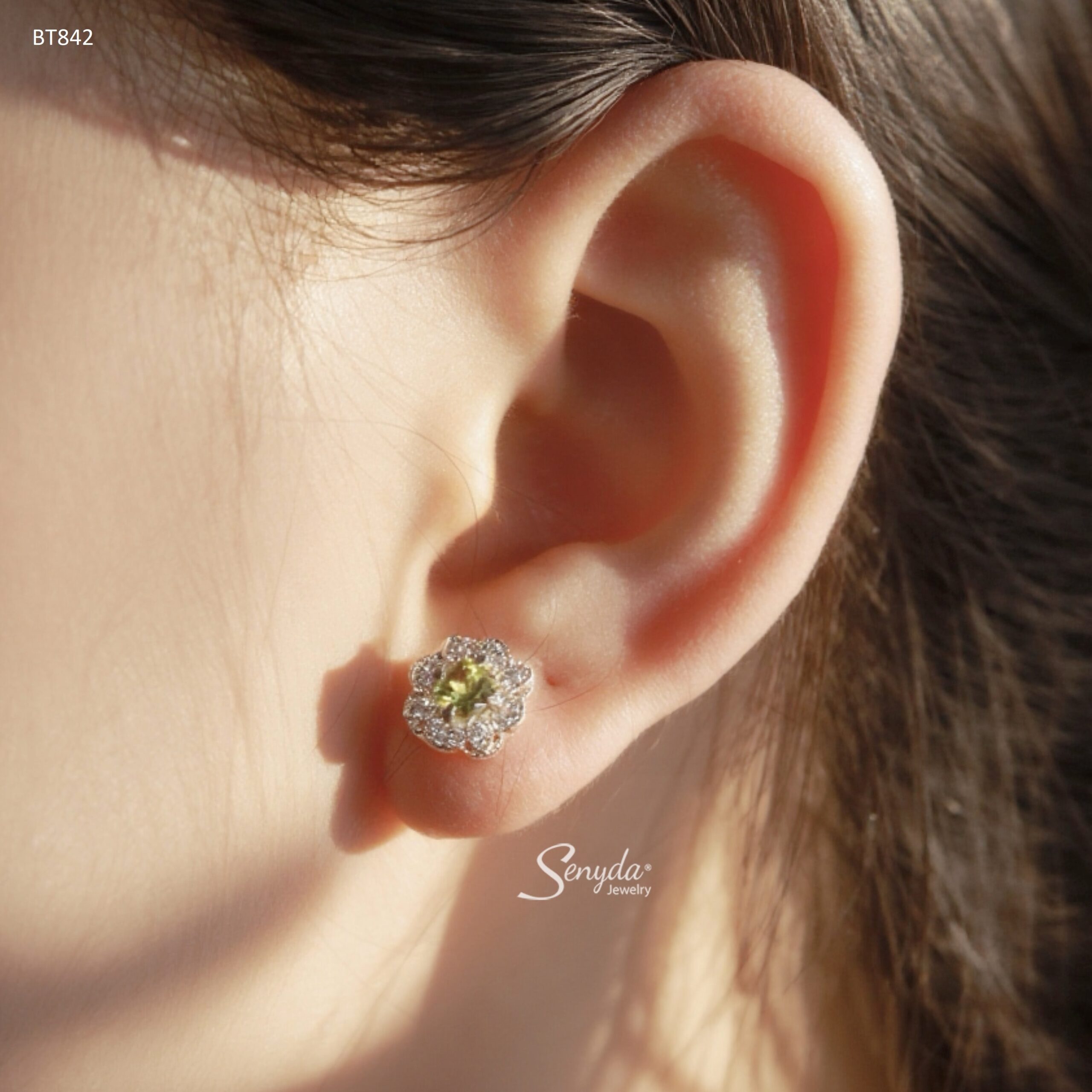20 đánh giá cho BT842 Bông tai bạc Ý Senyda mặt đá Peridot viền tròn hoa văn