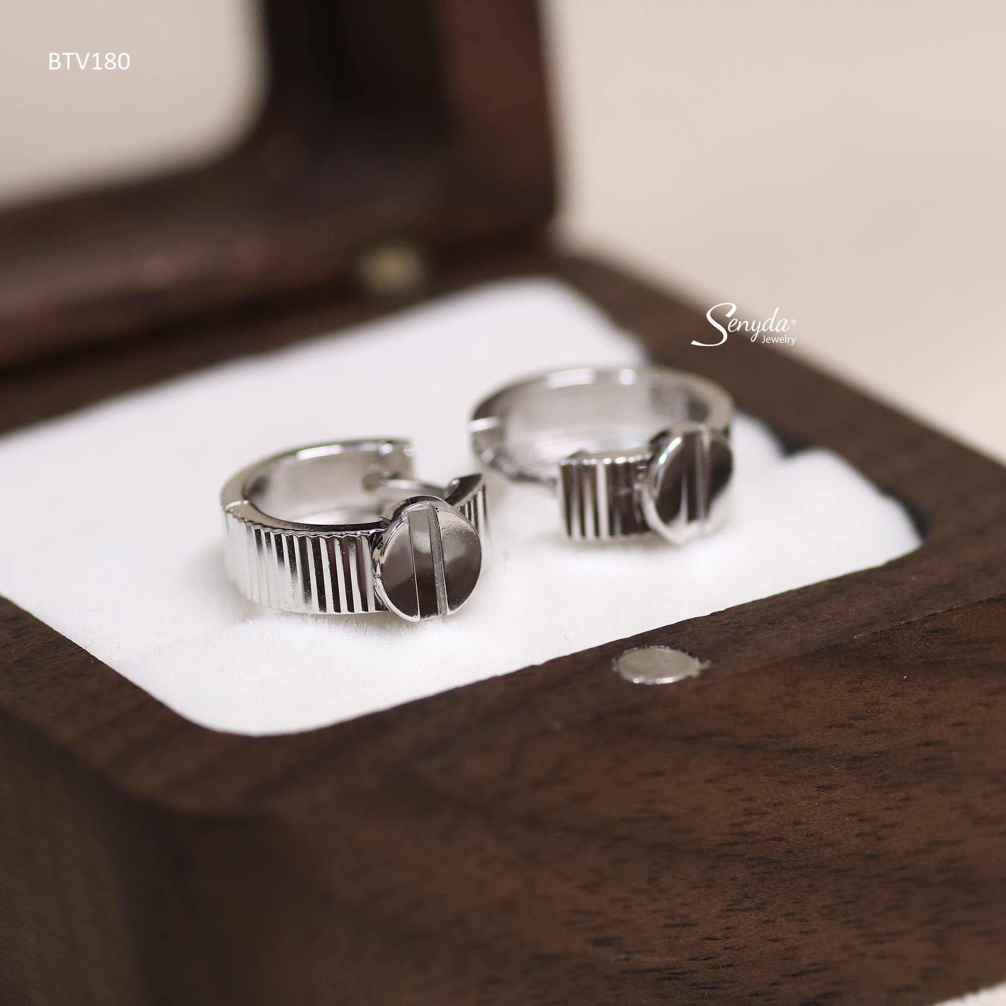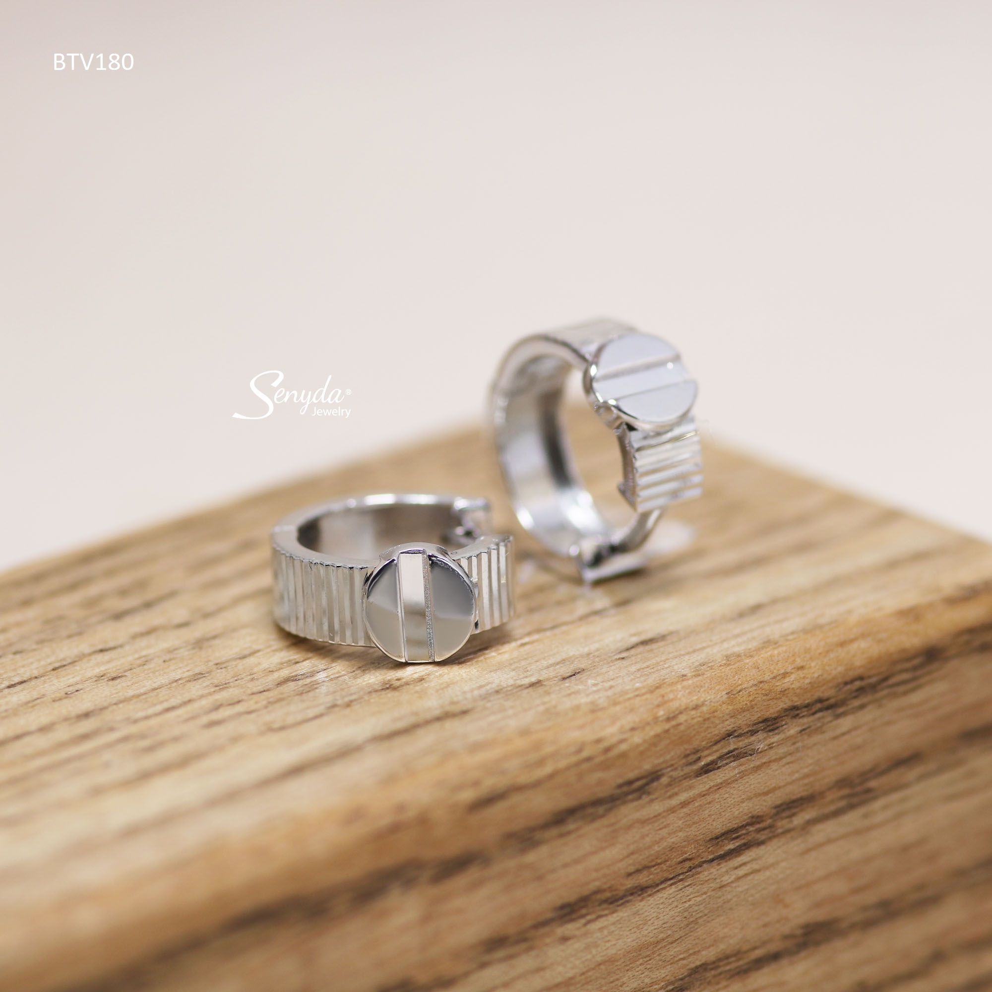 Hãy là người đầu tiên nhận xét “BTV180 Bông tai vàng Senyda khoen sọc ngang mặt tròn trơn rãnh giữa”