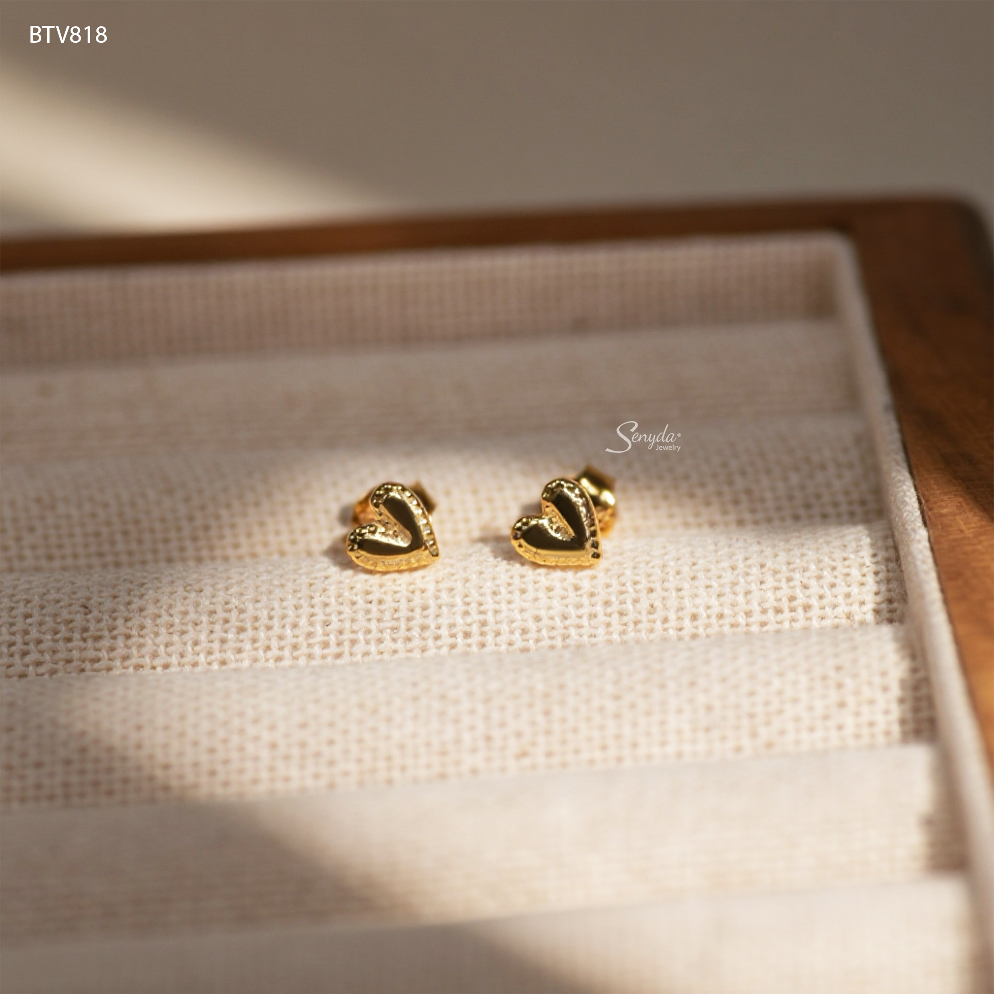 BTV818 Bông tai vàng Senyda trái tim trơn viền bi chốt đẩy