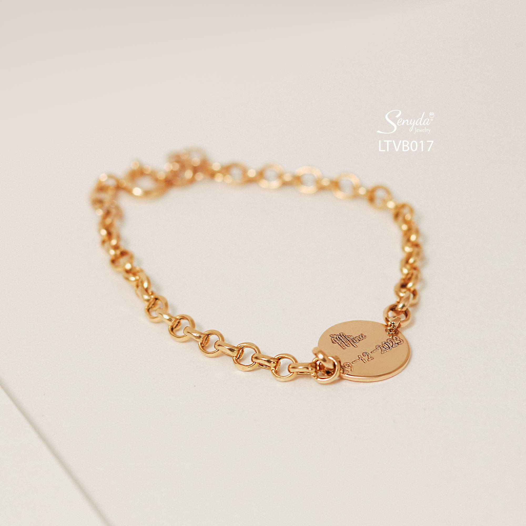 Nếu bạn muốn hướng tới sự sang trọng và giá trị lâu dài, vàng chính là gợi ý hoàn hảo. Tùy vào ngân sách, bạn có thể chọn vàng 10K, 14K hoặc 18K để có độ cứng vừa phải cho các hoạt động của trẻ. Một lưu ý quan trọng là nên ưu tiên những thiết kế tối giản, bo tròn và tránh các chi tiết quá nặng hoặc có góc sắc nhọn để không làm trầy xước làn da mỏng manh khi bé vận động.