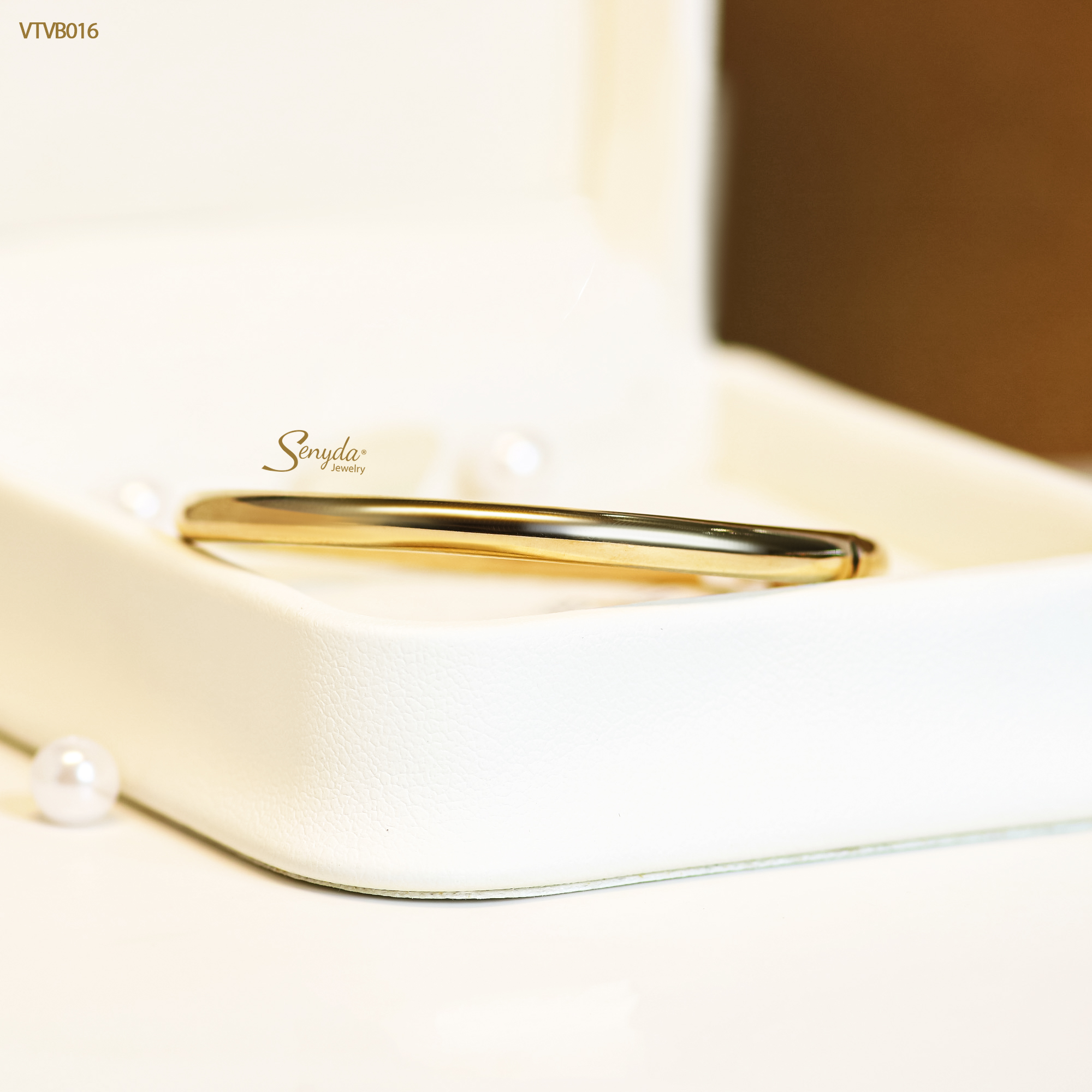 Nếu bạn muốn hướng tới sự sang trọng và giá trị lâu dài, vàng chính là gợi ý hoàn hảo. Tùy vào ngân sách, bạn có thể chọn vàng 10K, 14K hoặc 18K để có độ cứng vừa phải cho các hoạt động của trẻ. Một lưu ý quan trọng là nên ưu tiên những thiết kế tối giản, bo tròn và tránh các chi tiết quá nặng hoặc có góc sắc nhọn để không làm trầy xước làn da mỏng manh khi bé vận động.