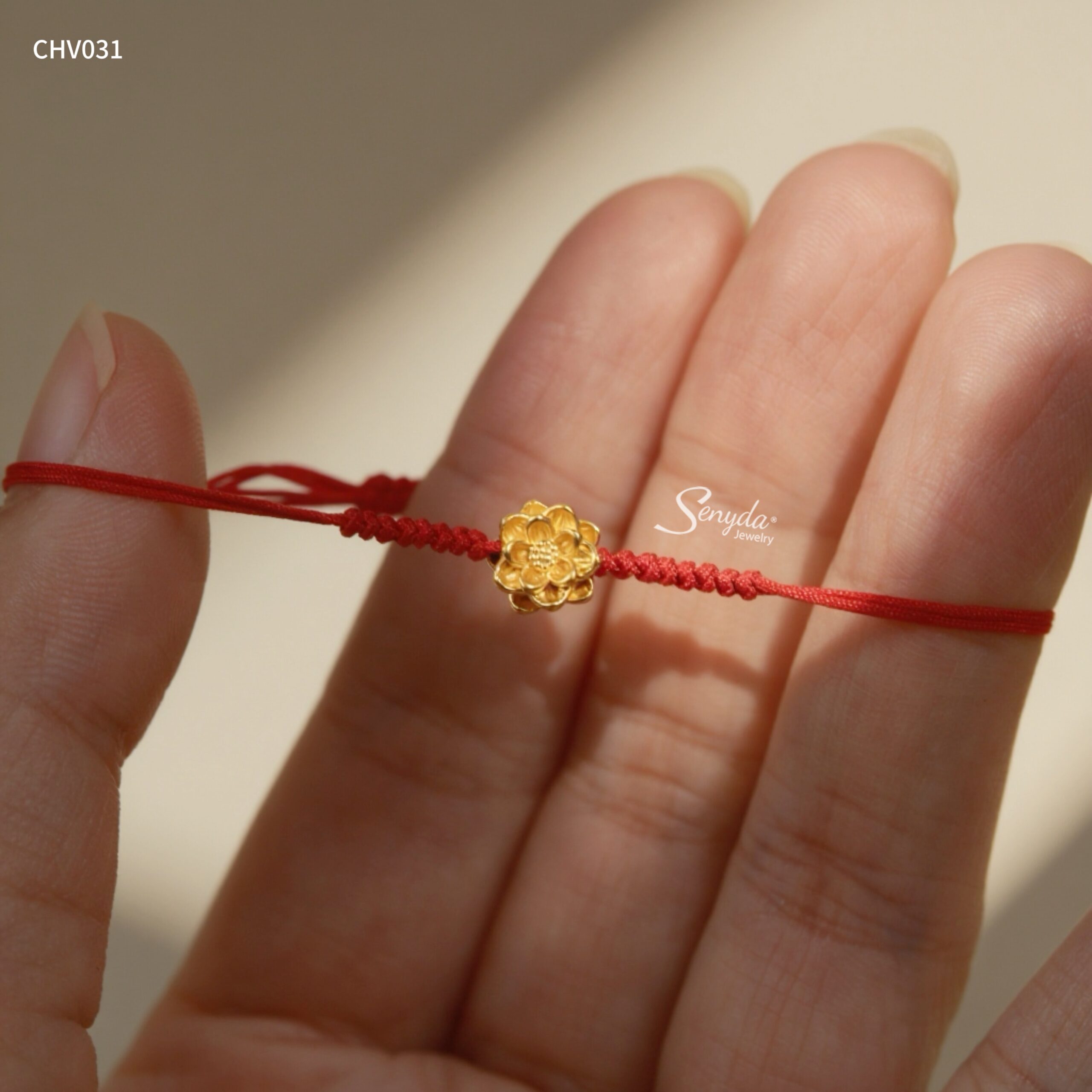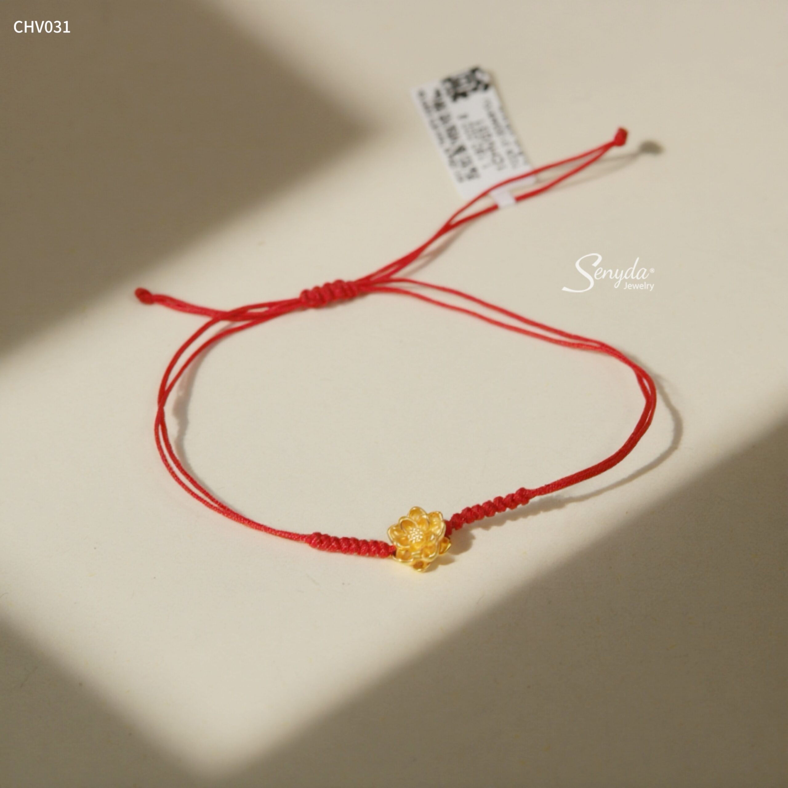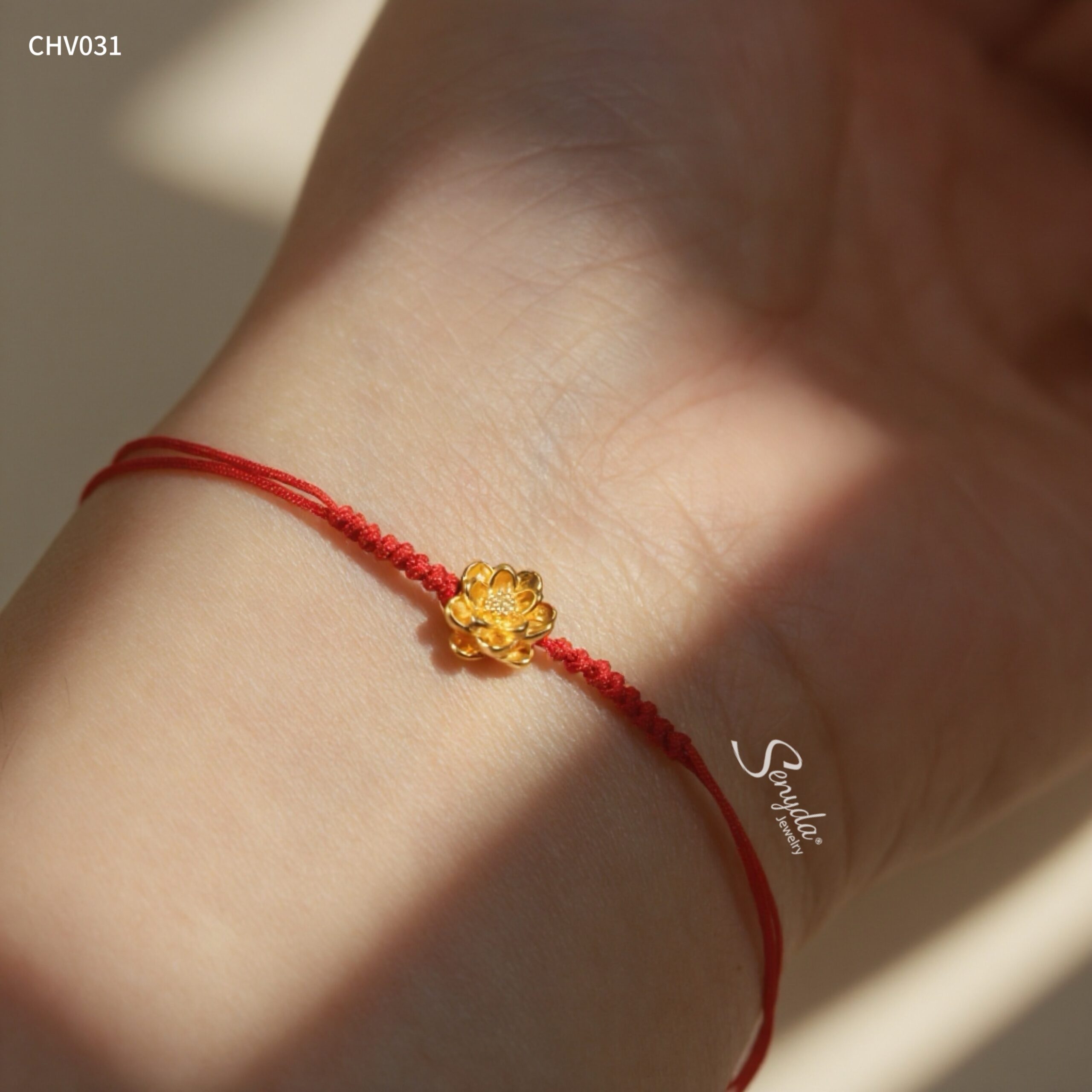 Mô tả: CHV031 Vòng tay chỉ đỏ charm vàng Senyda hoa sen nở