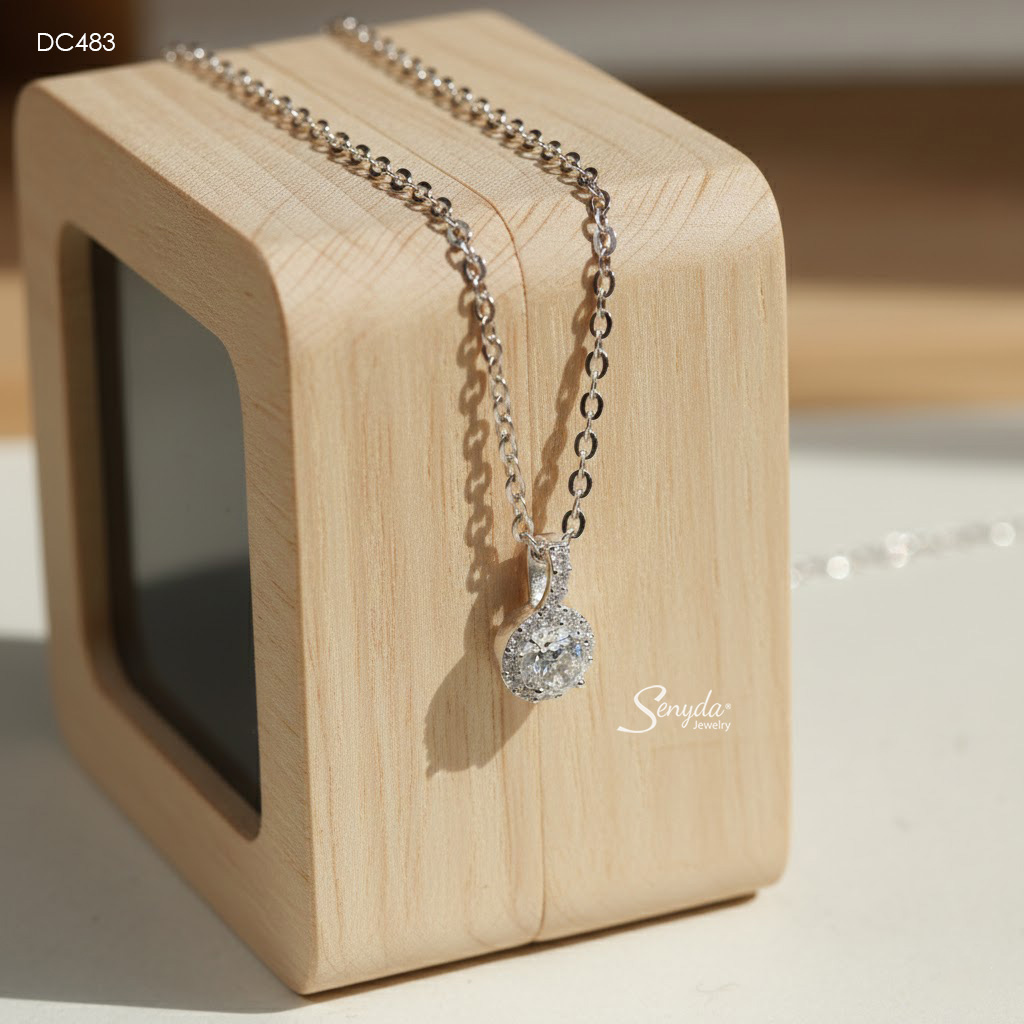 DC483 Dây chuyền bạc Ý Senyda nụ đá viền tròn đá nhỏ