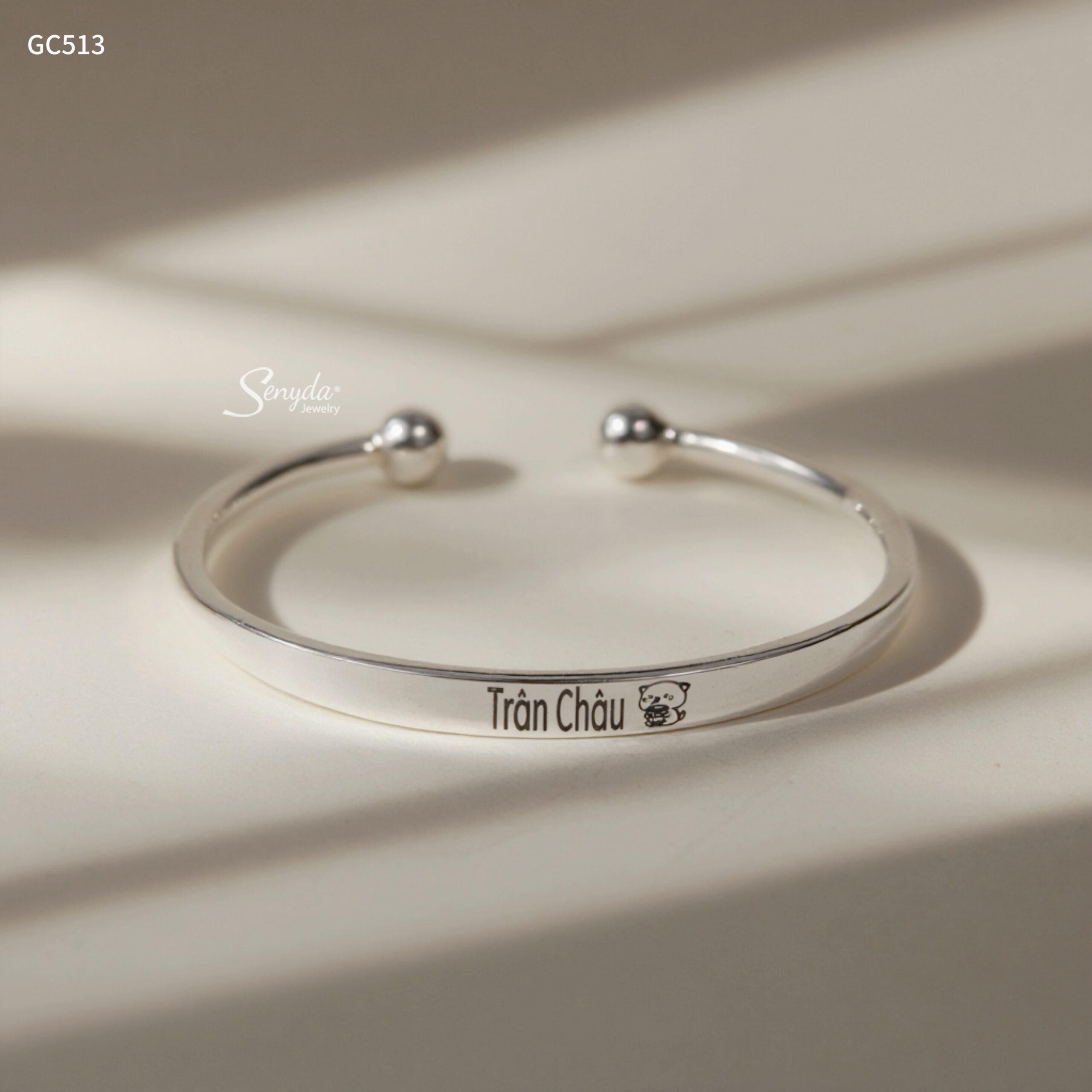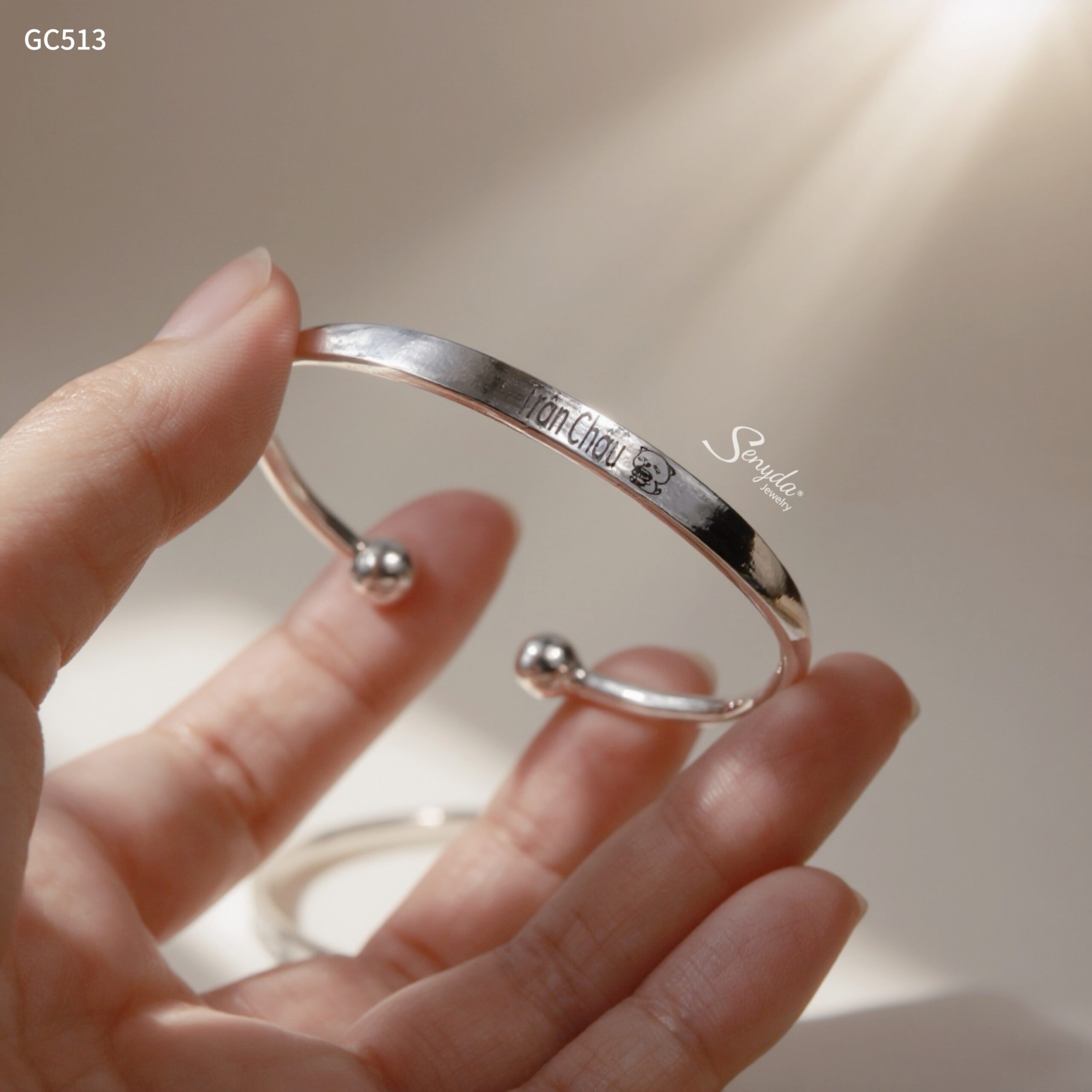 Mô tả: DC513 Vòng tay bạc Ý Senyda 2 đầu bi mặt dẹp khắc hình