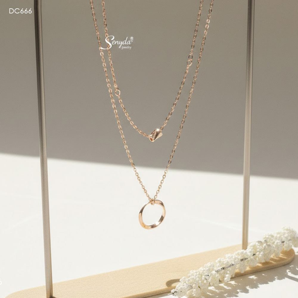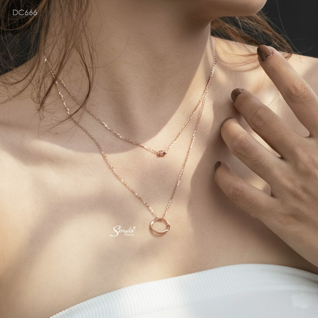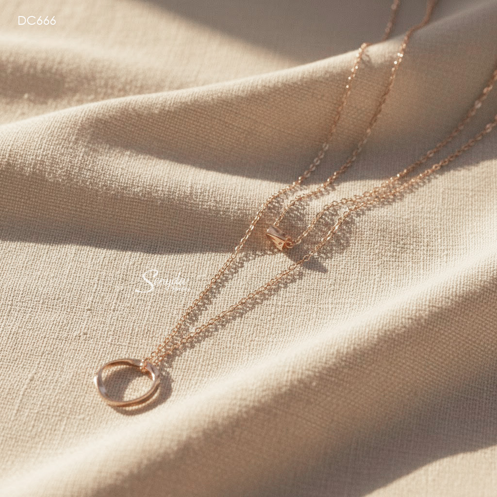 Mô tả: DC666-1 Dây chuyền bạc Ý Senyda kép trụ vòng tròn lượn sóng xi vàng hồng