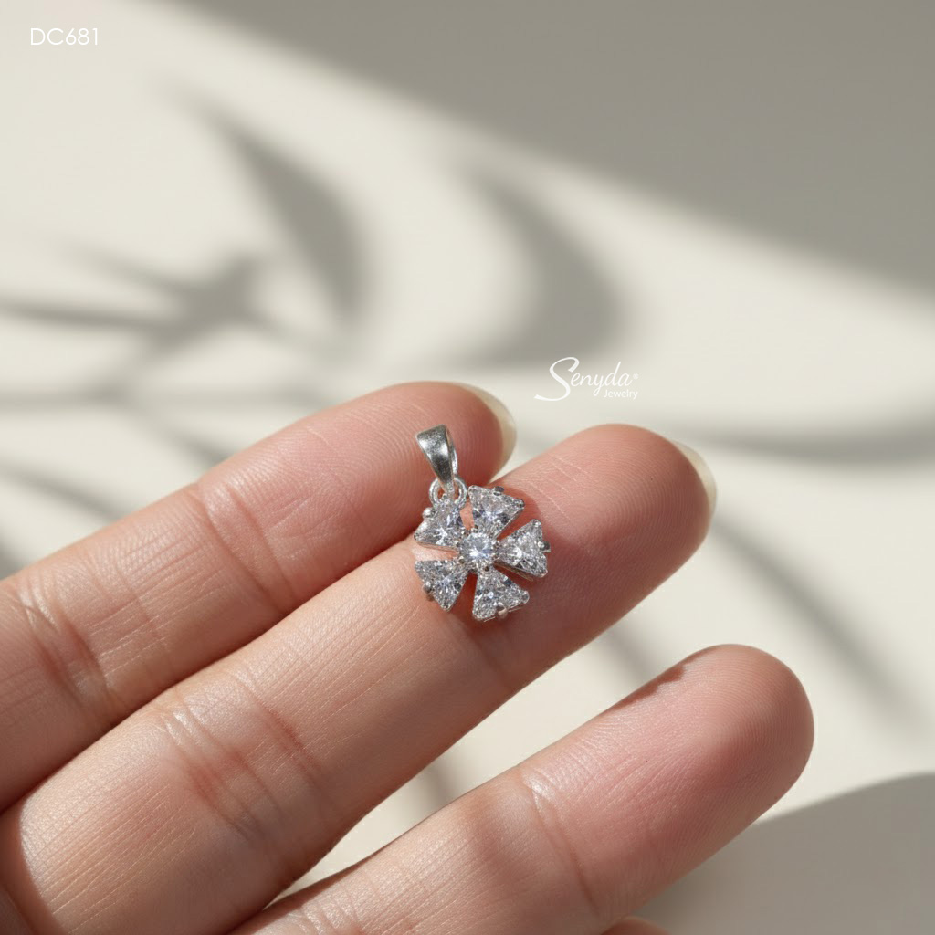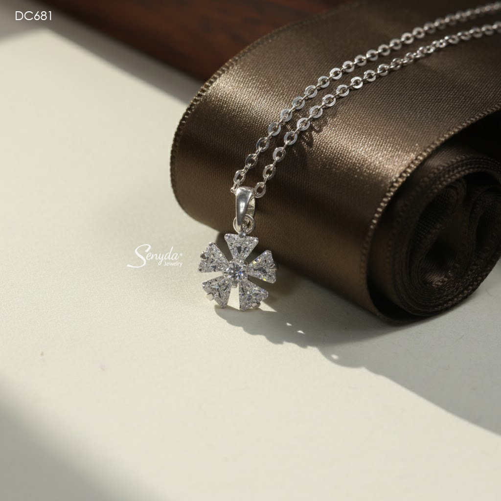 39 đánh giá cho DC681 Dây chuyền bạc Ý Senyda hoa 5 cánh tam giác đá