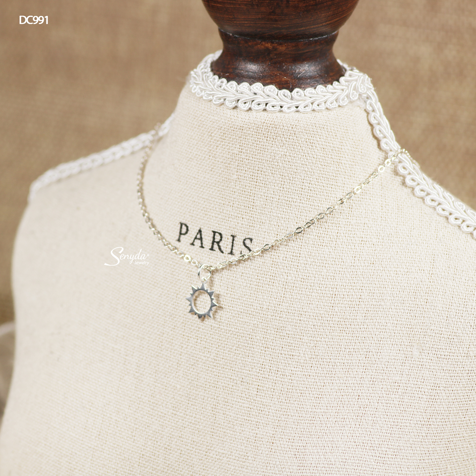 Mô tả: DC991 Dây chuyền bạc Ý Senyda mặt trời trơn rỗng