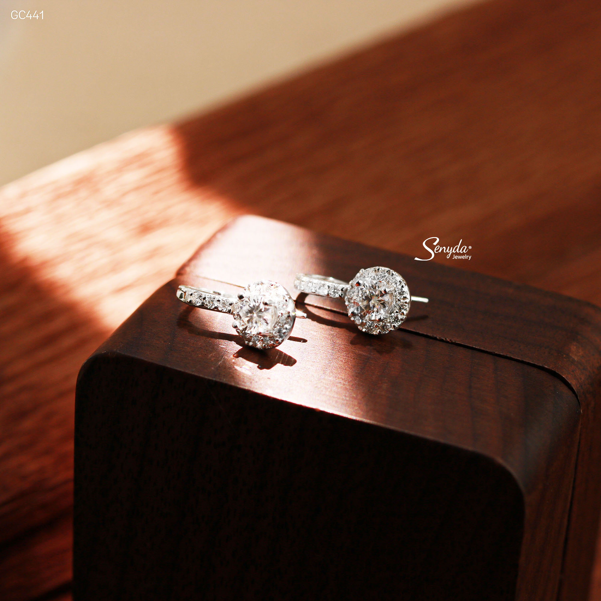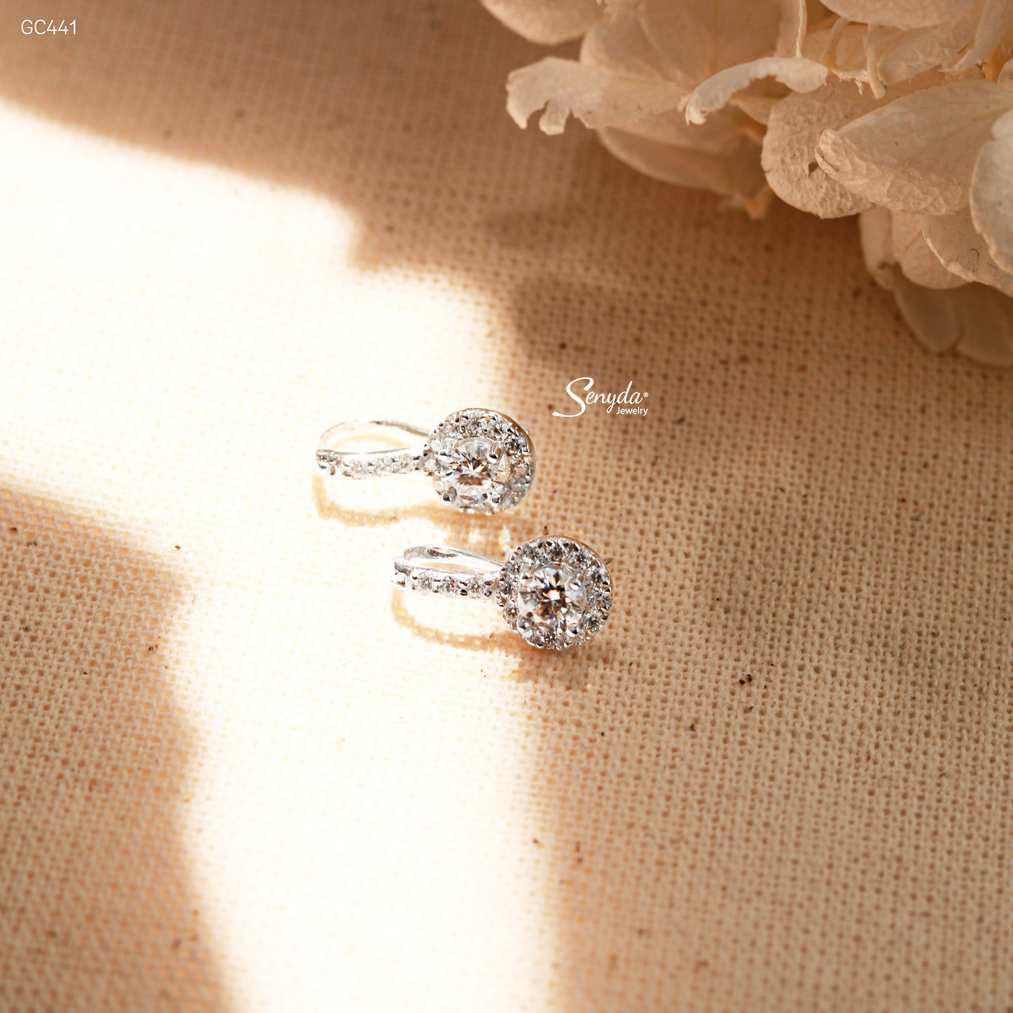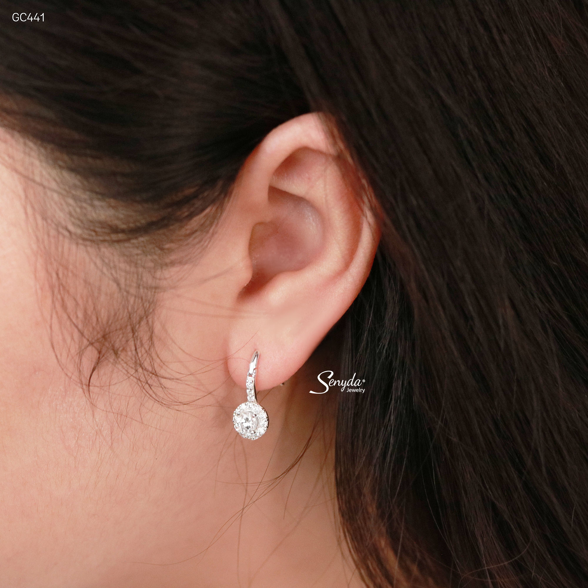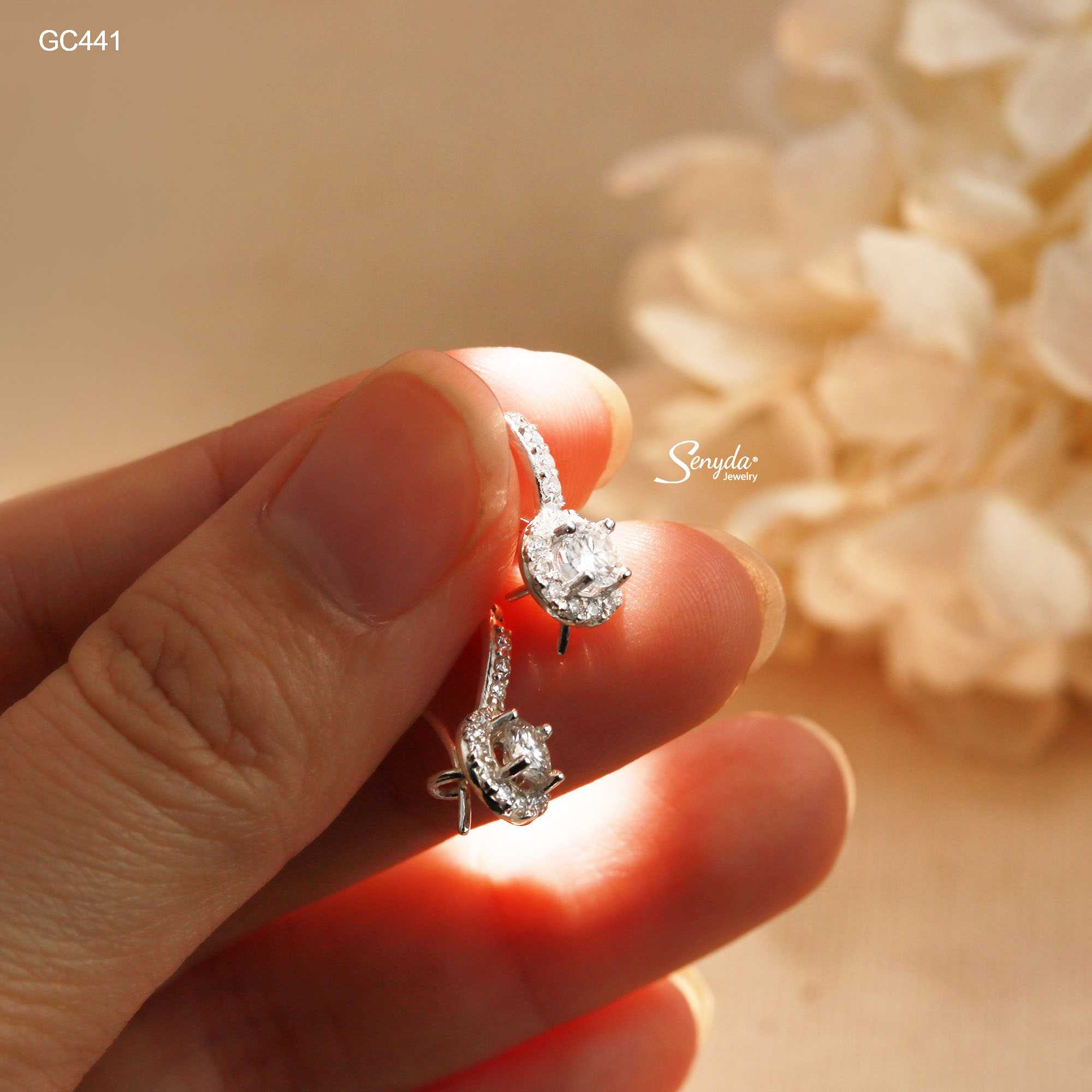 16 đánh giá cho GC441 Bông tai bạc Ý Senyda móc cân đá nhụy đá viền tròn đá