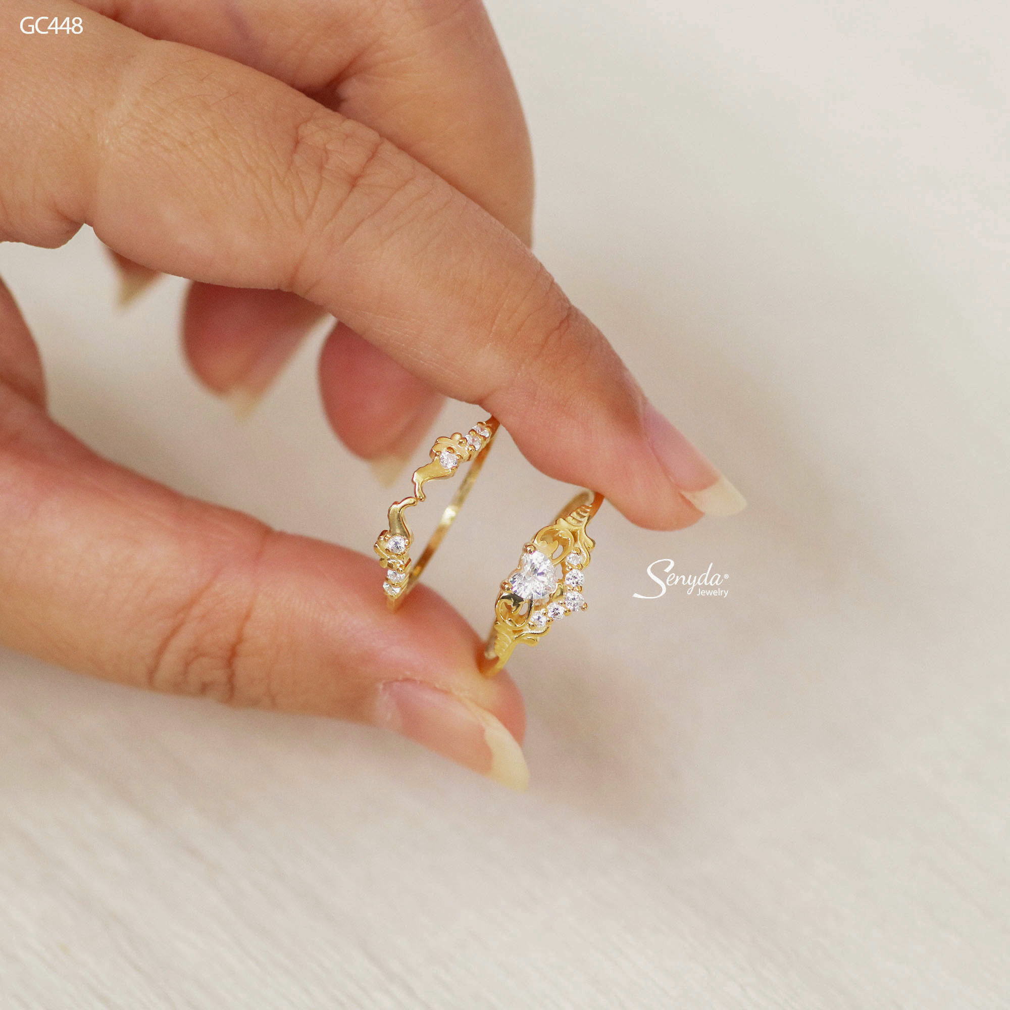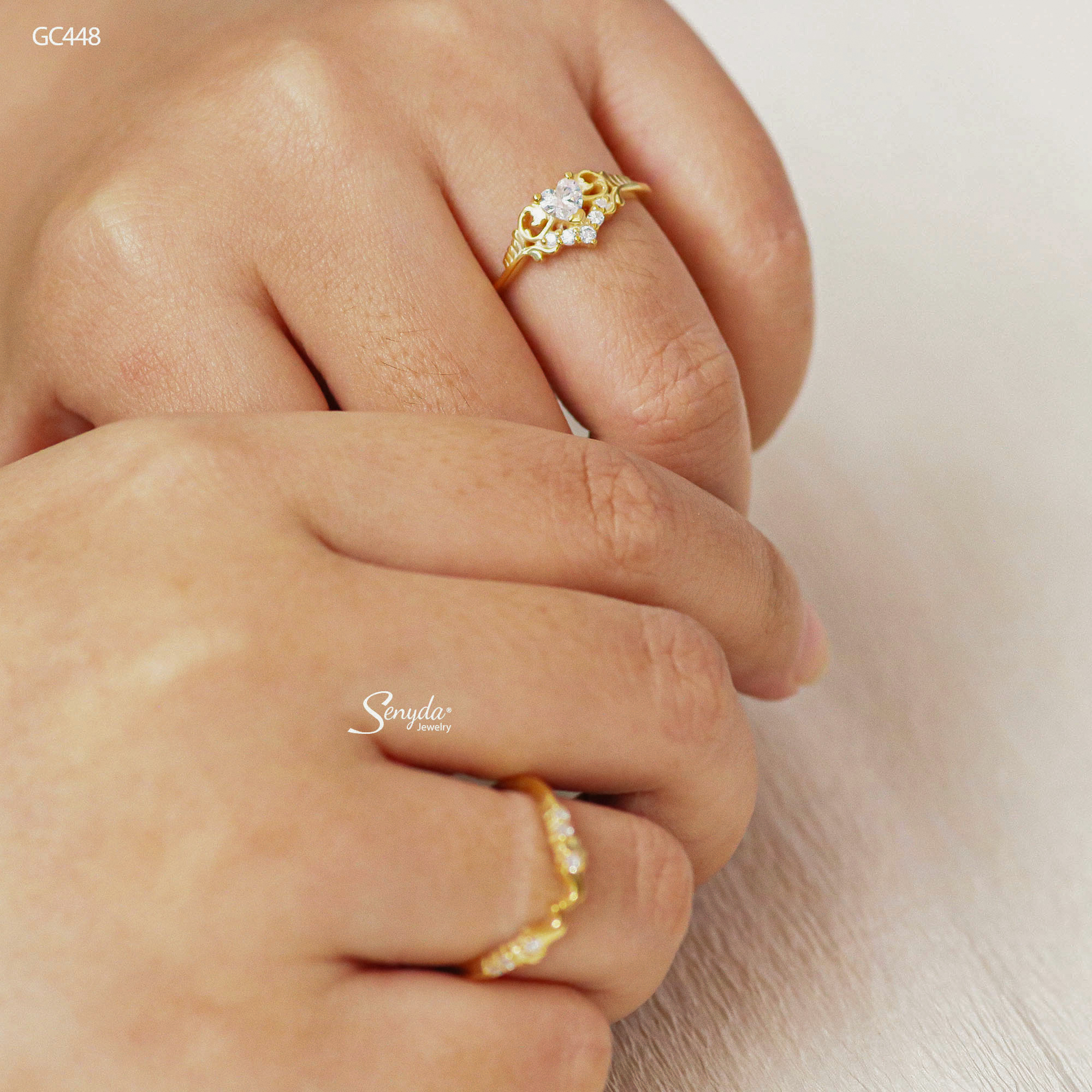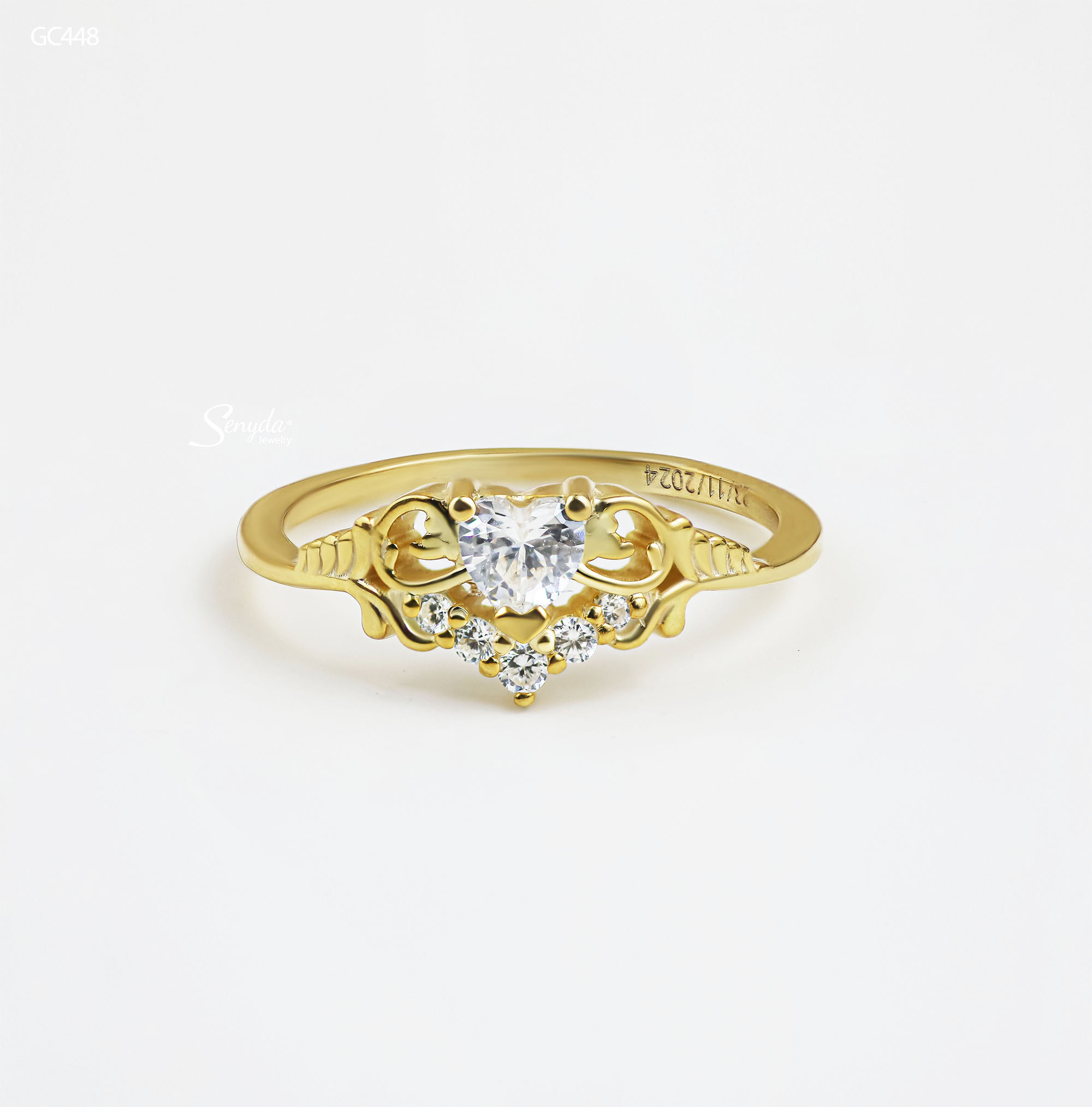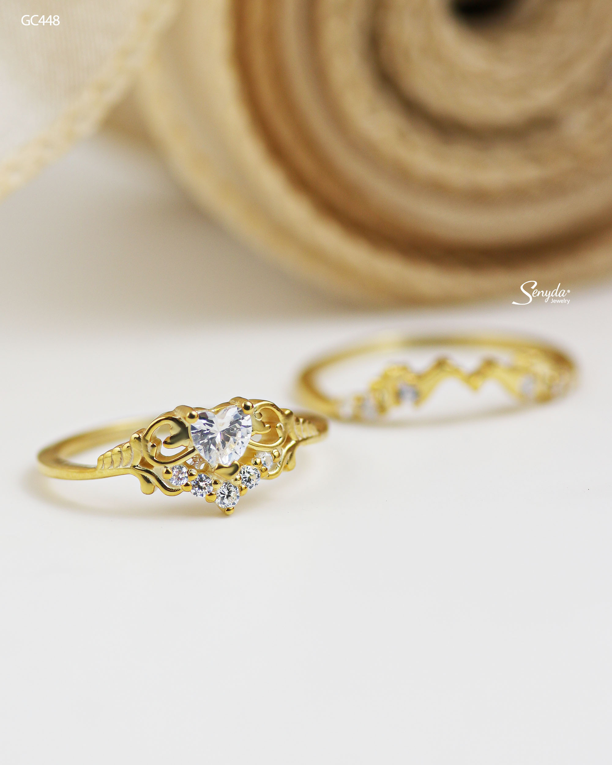 Mô tả: GC448 Nhẫn bạc Ý Senyda kép 1 hột tim đai hoa văn nhánh lá – vương miện nhánh lá xen đá hở