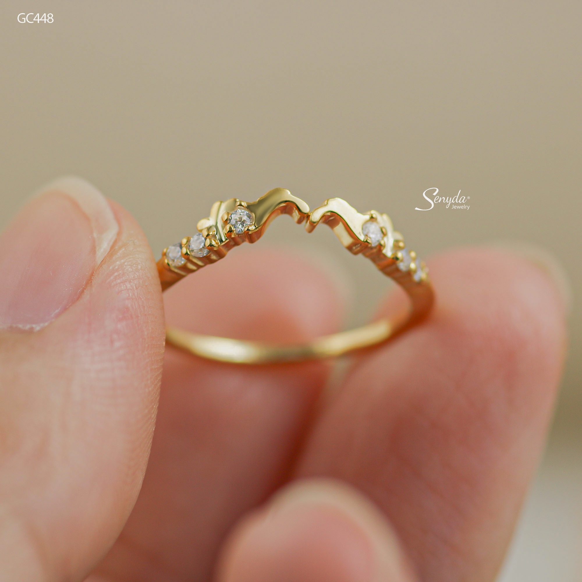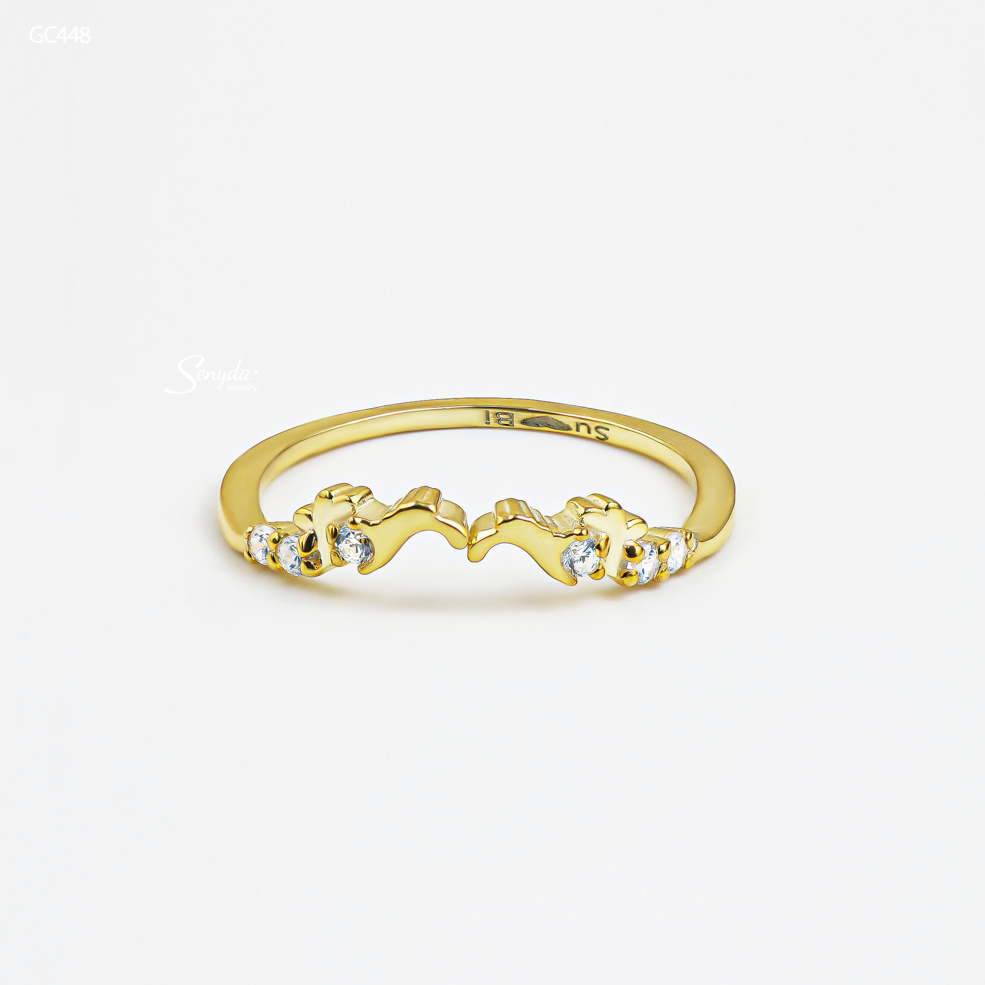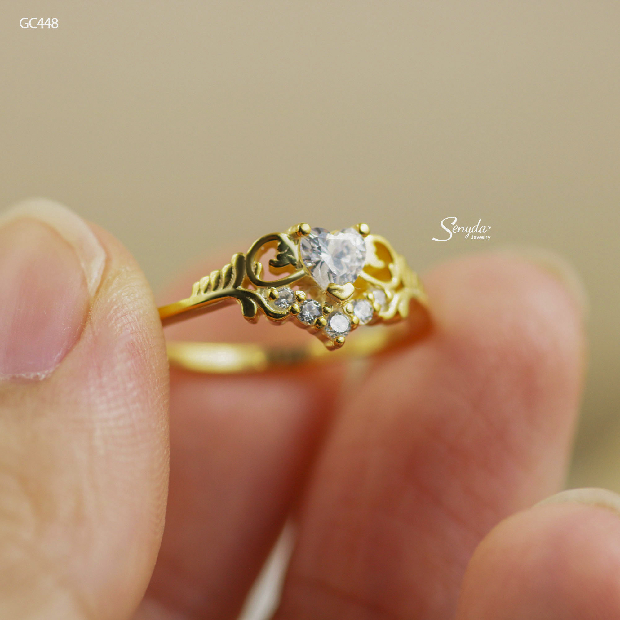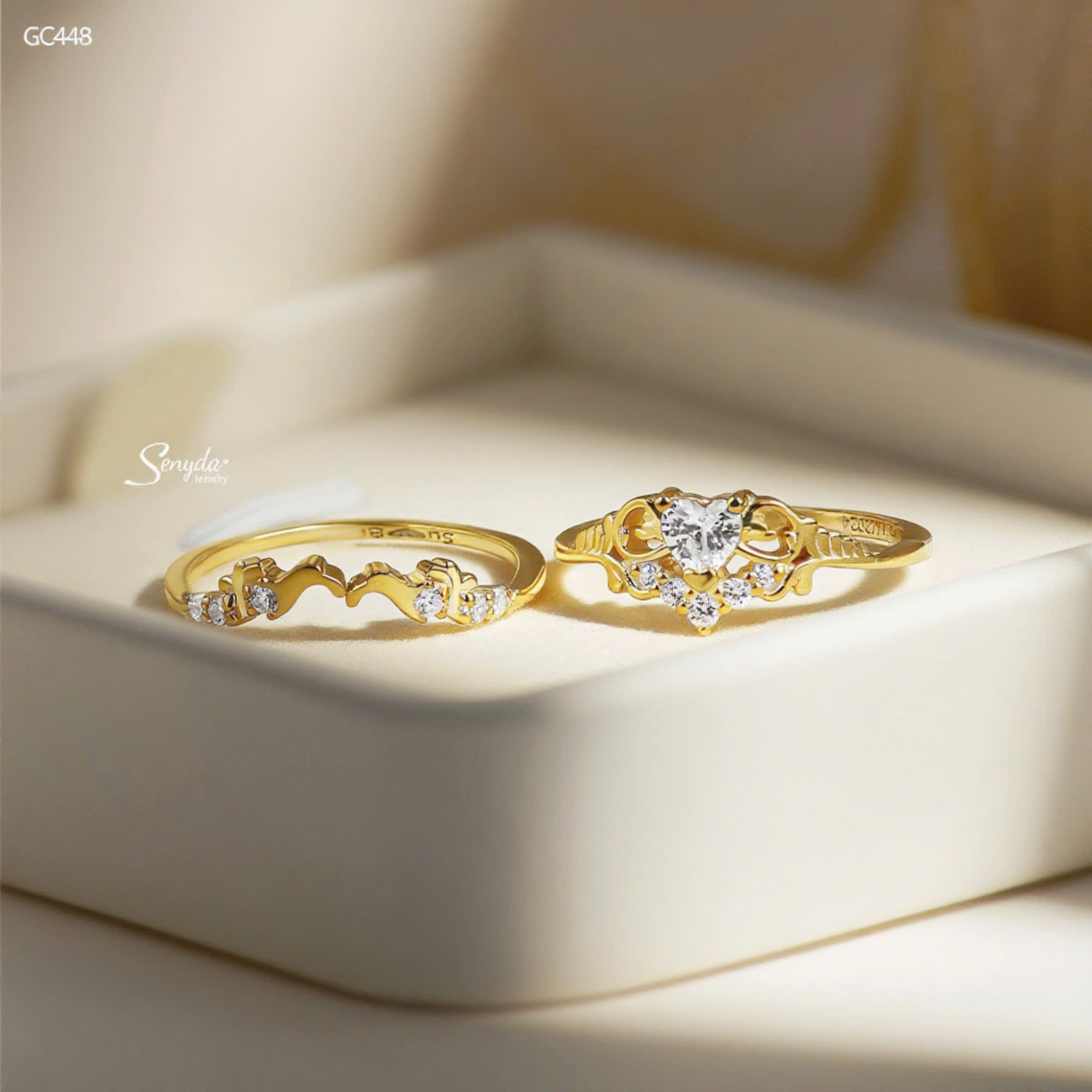 Mô tả: GC448 Nhẫn bạc Ý Senyda kép 1 hột tim đai hoa văn nhánh lá – vương miện nhánh lá xen đá hở
