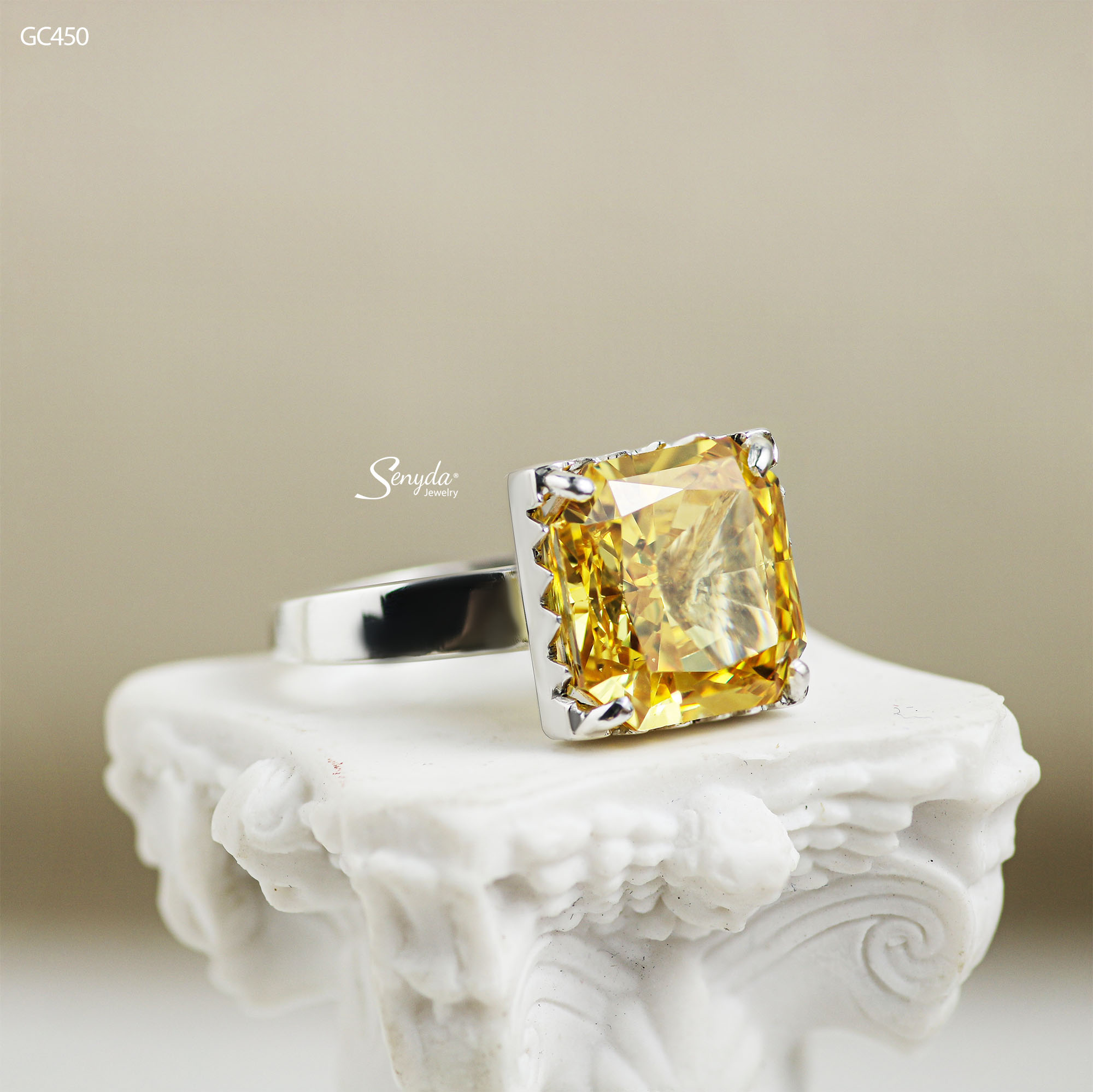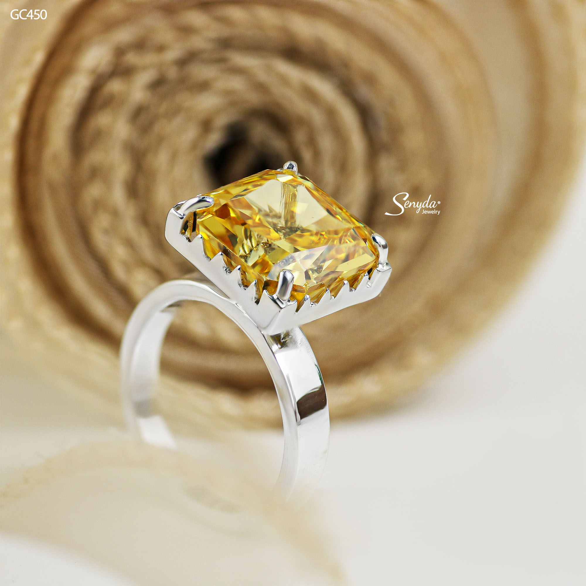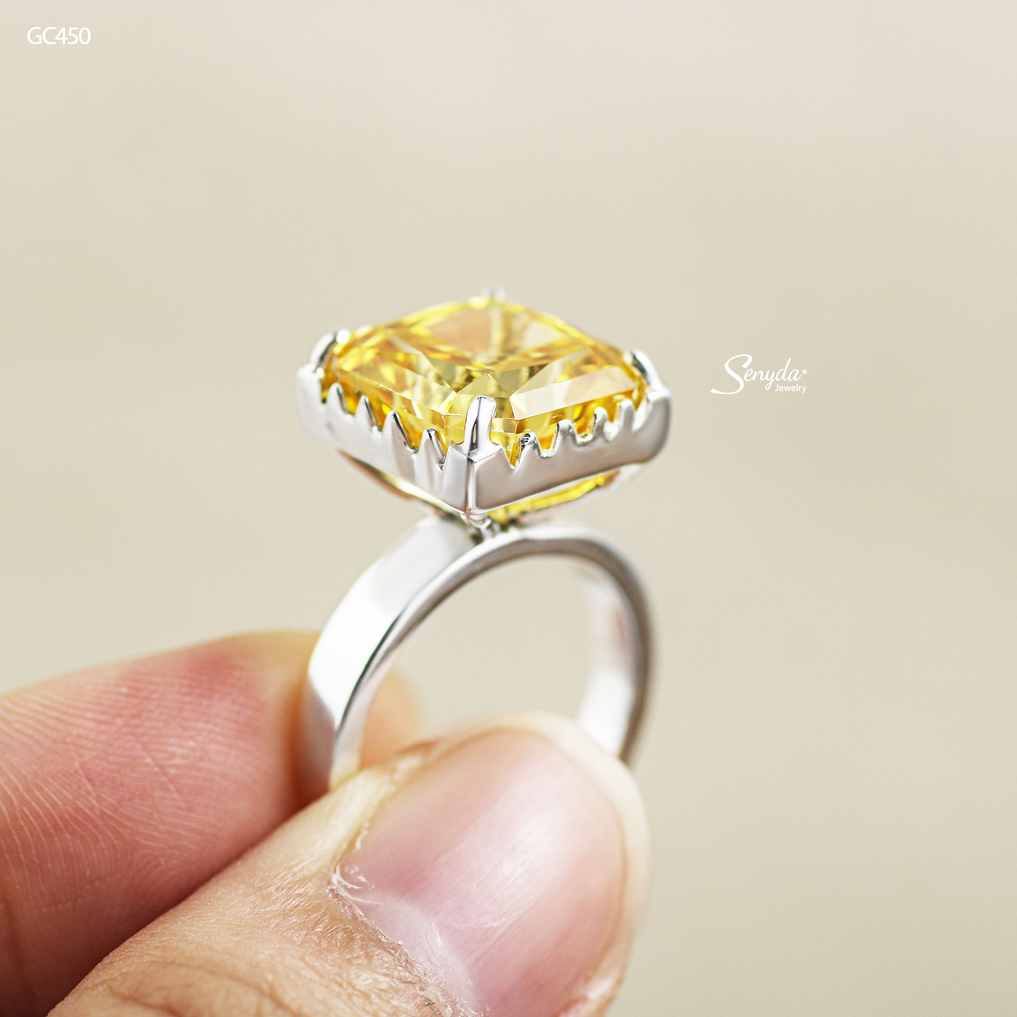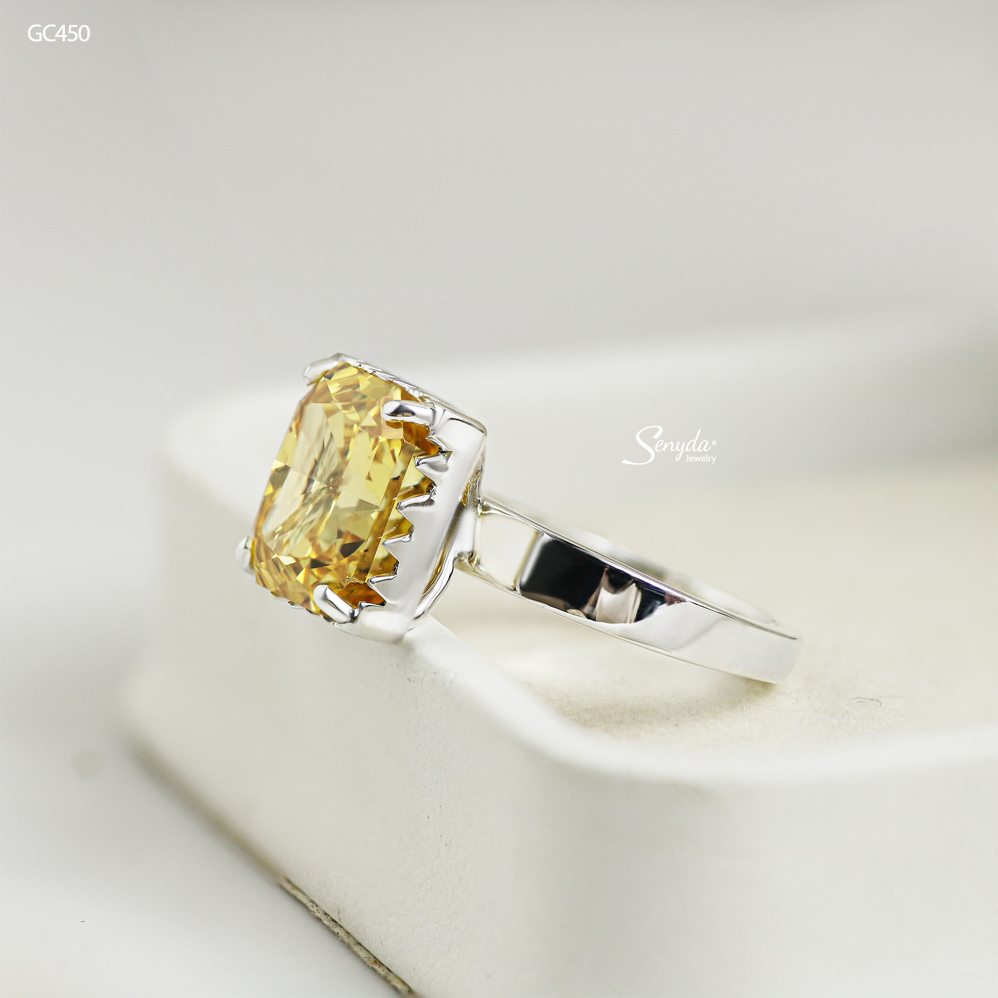 Mô tả: GC450 Nhẫn bạc Ý Senyda 4 chấu đai trơn