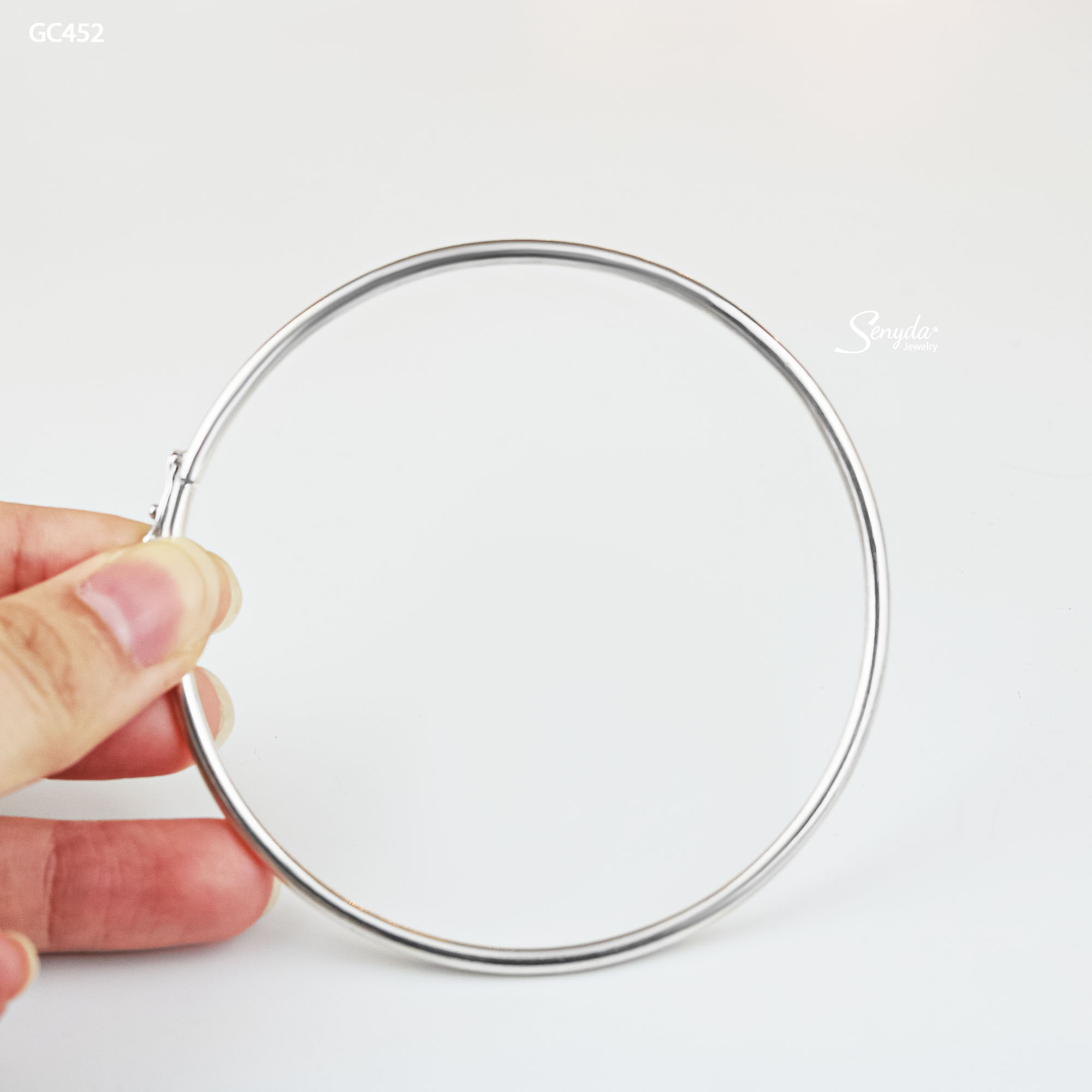Mô tả: GC452 Vòng chân bạc Senyda trơn đặc ruột có khóa ống