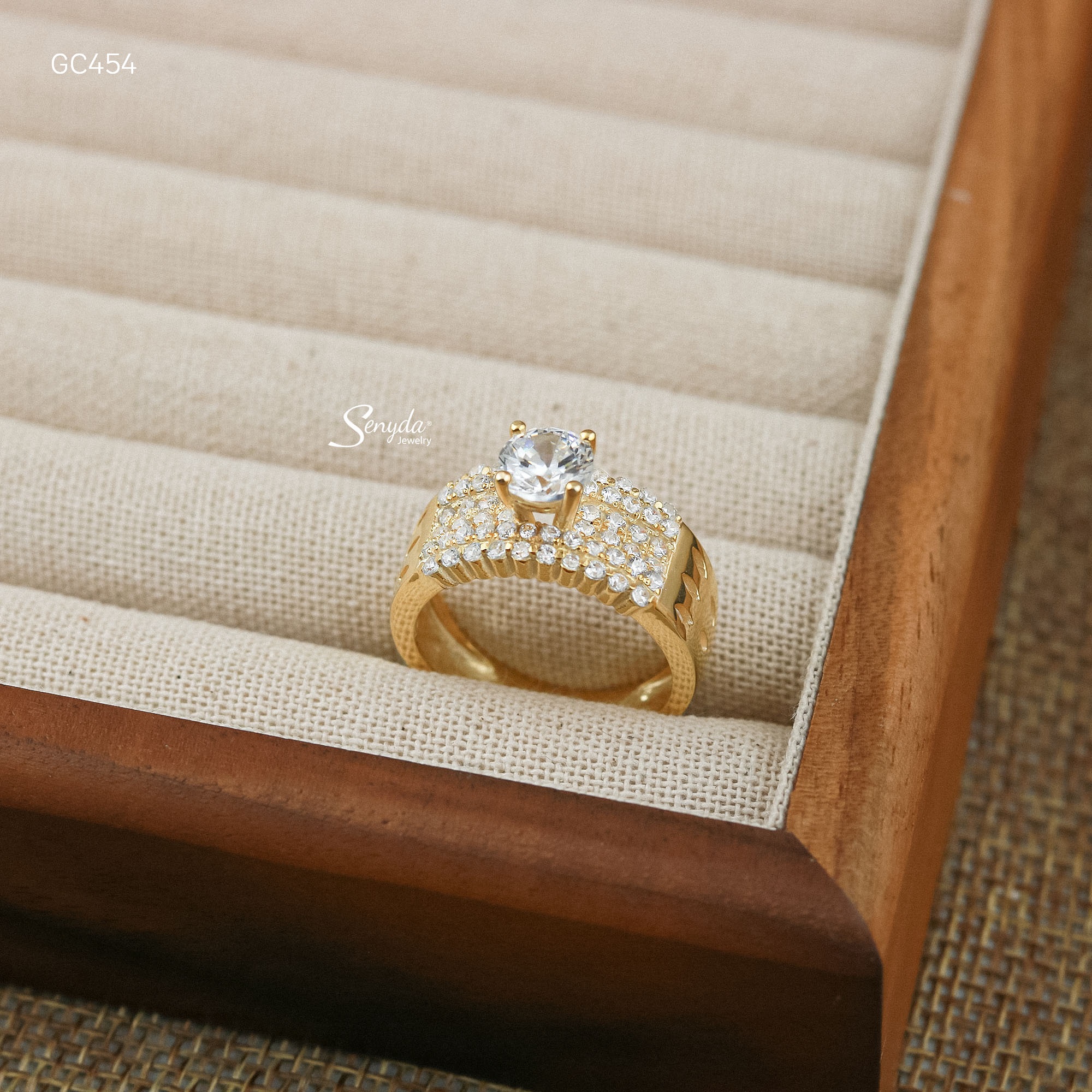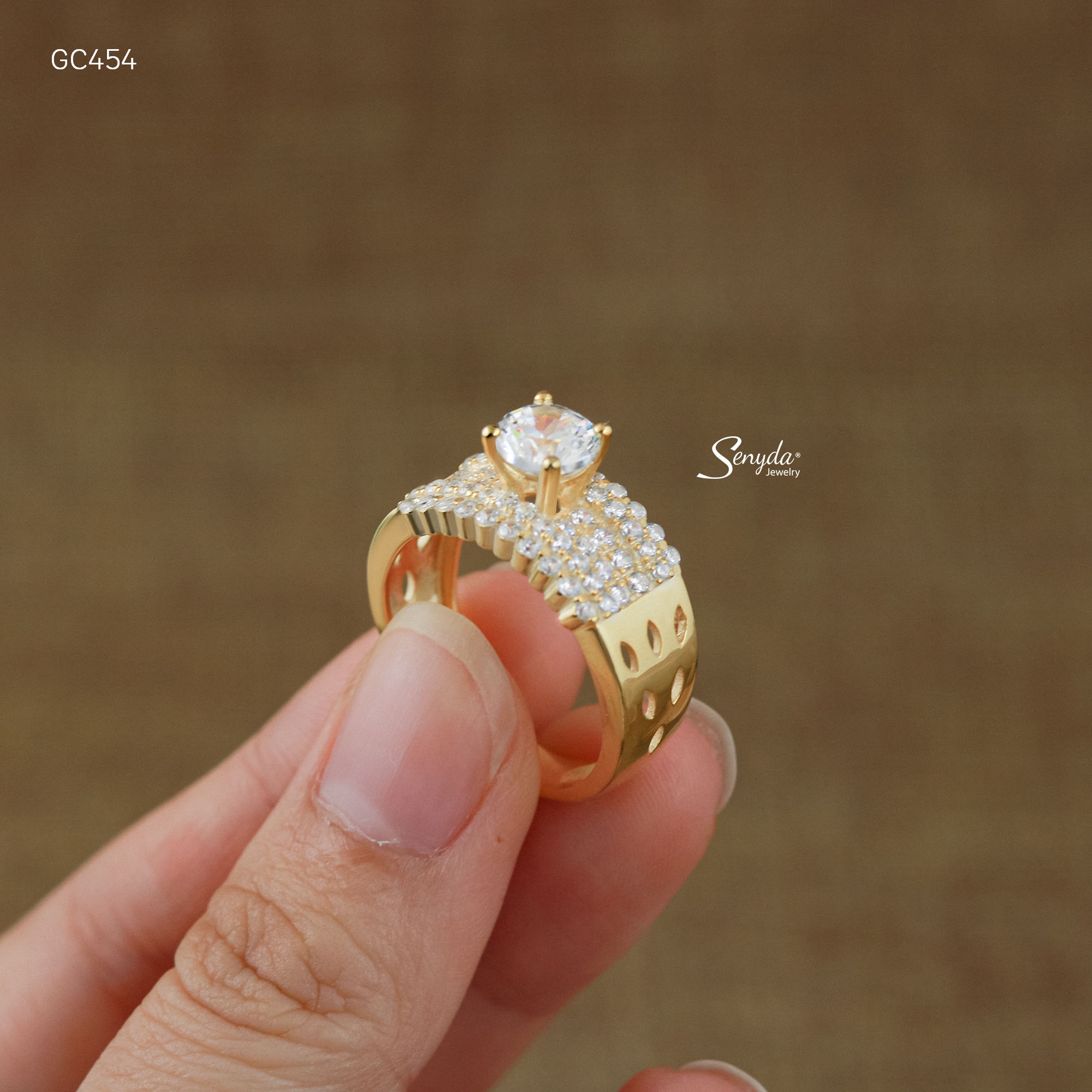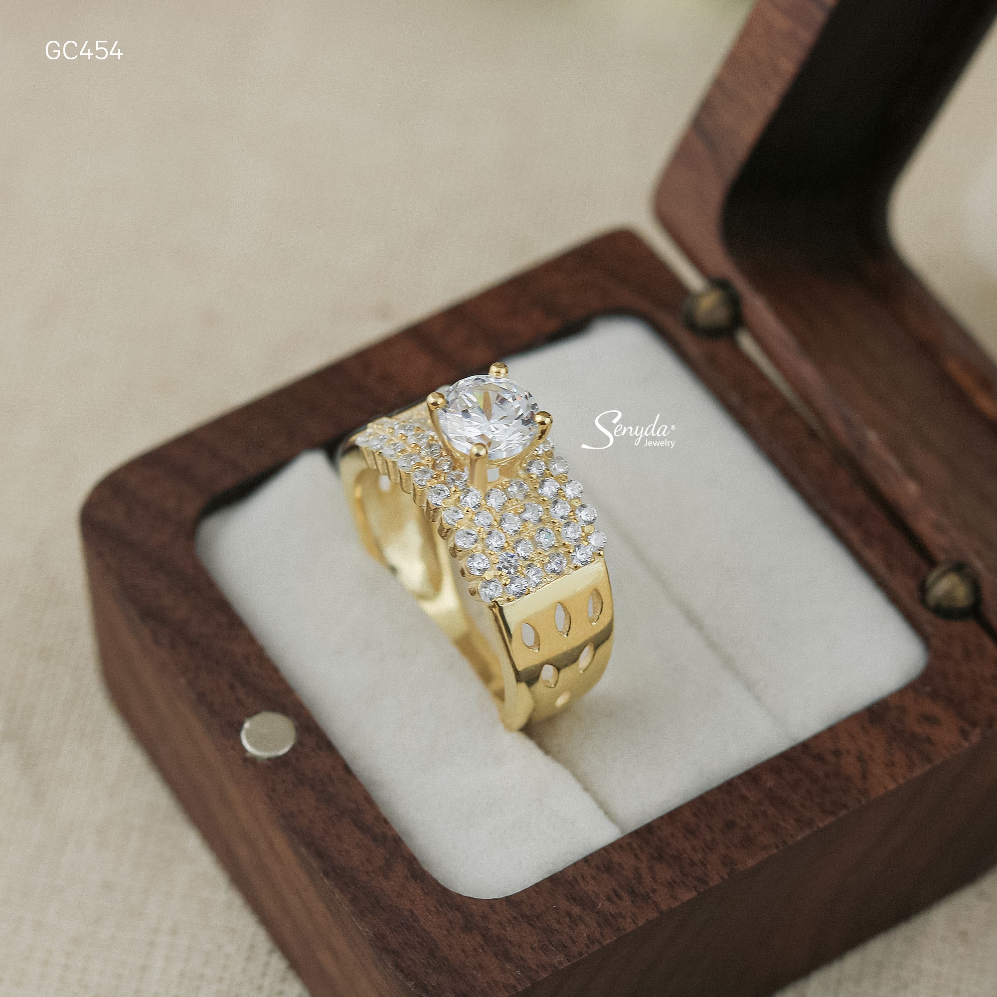 Mô tả: GC454 Nhẫn bạc Ý Senyda 1 hột 4 chấu đai 6 dãy đá xi vàng