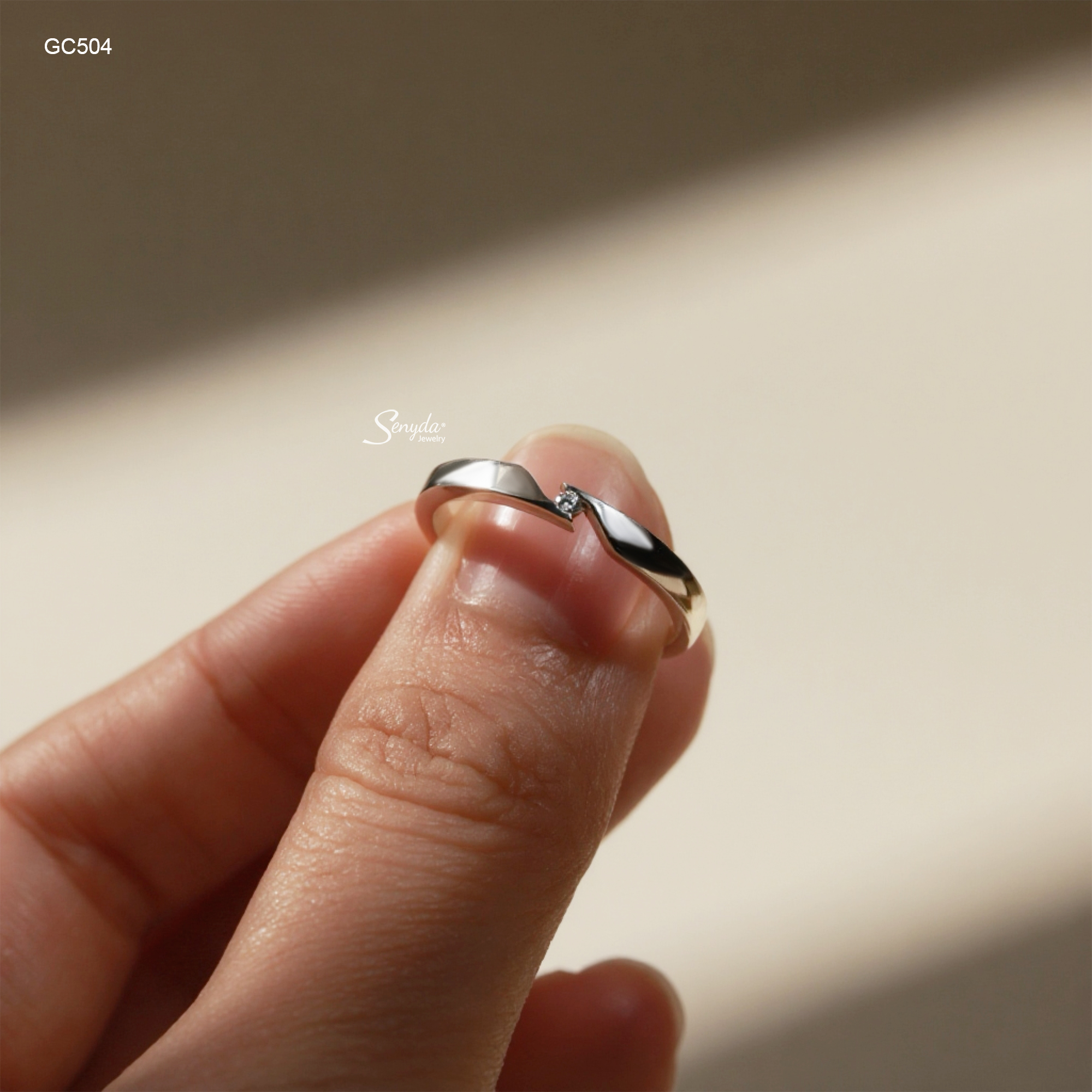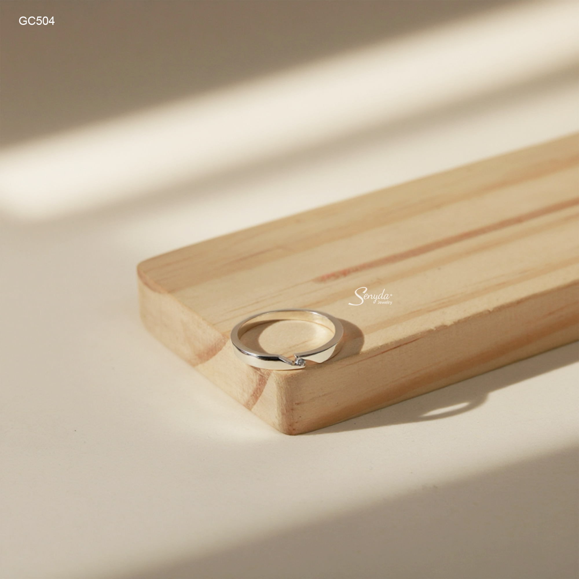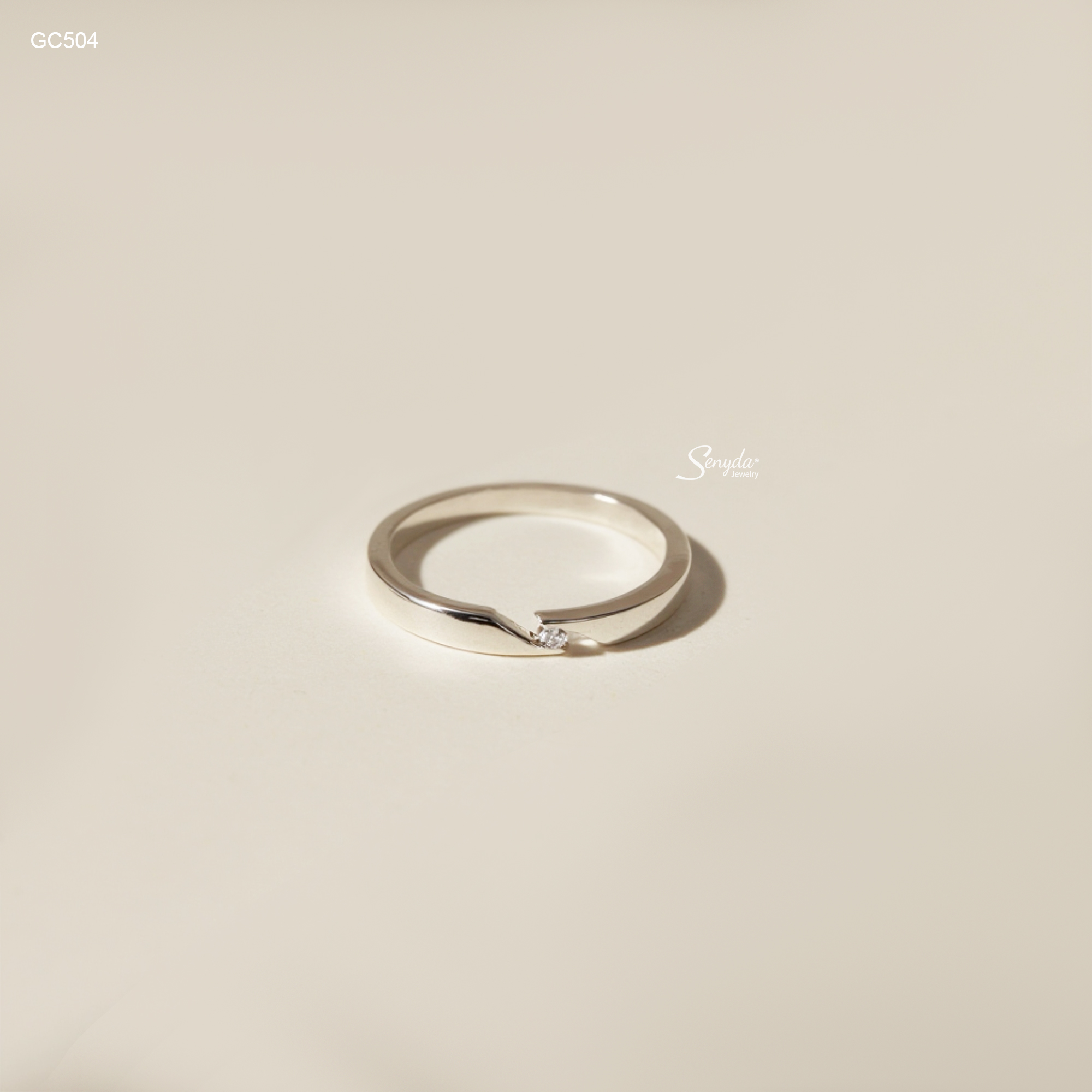 Mô tả: GC504 Nhẫn bạc Ý Senyda đai trơn mặt hở xéo nụ đá