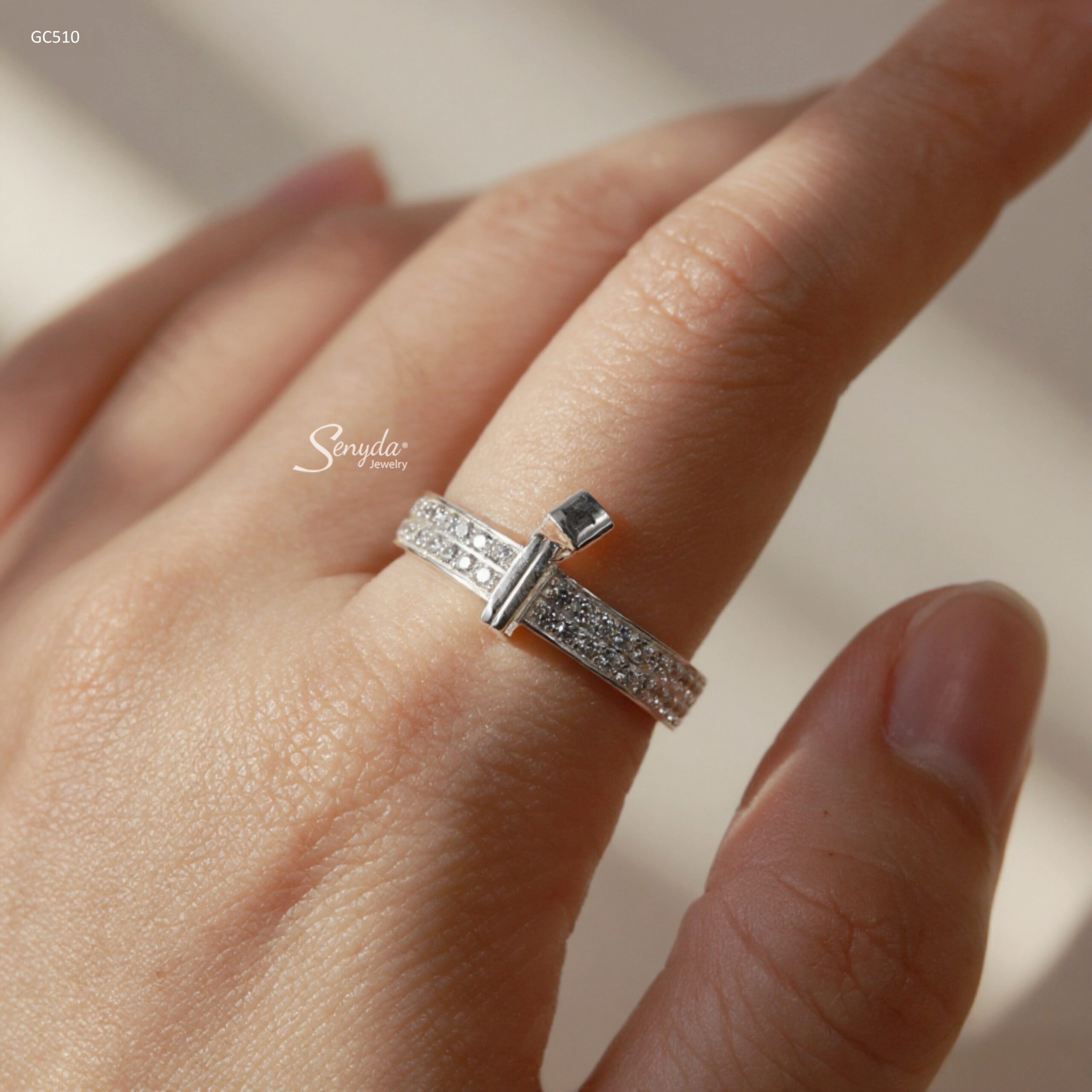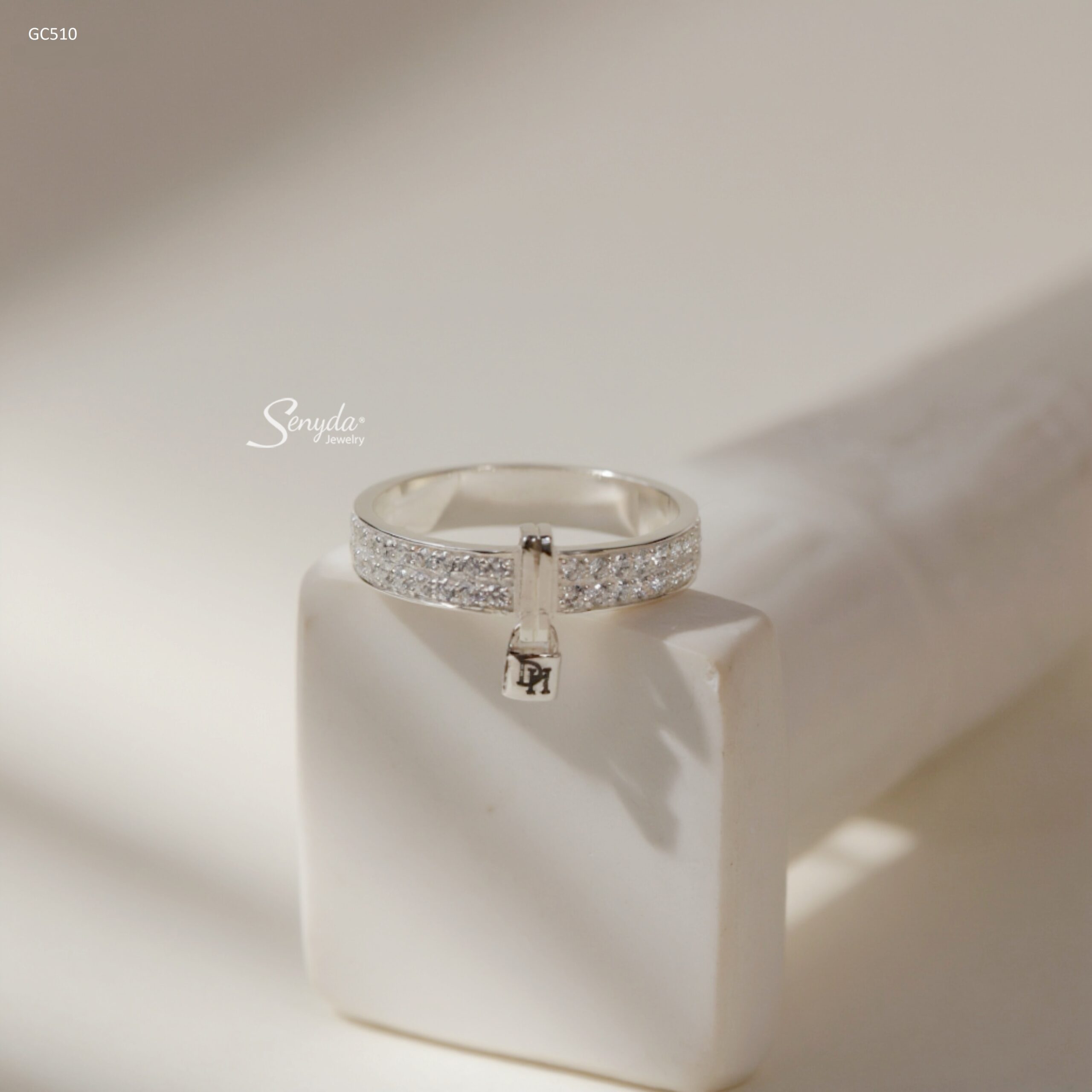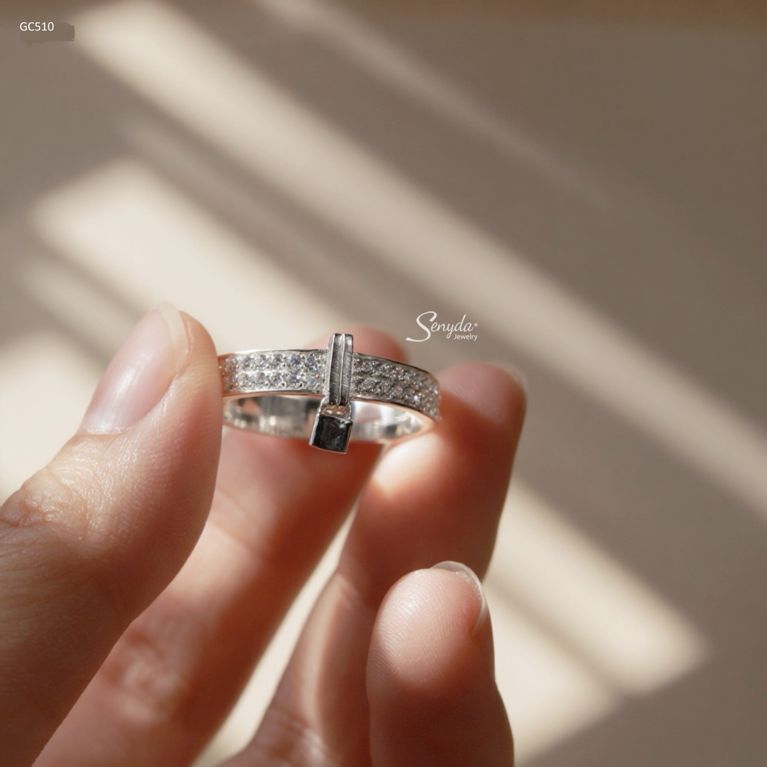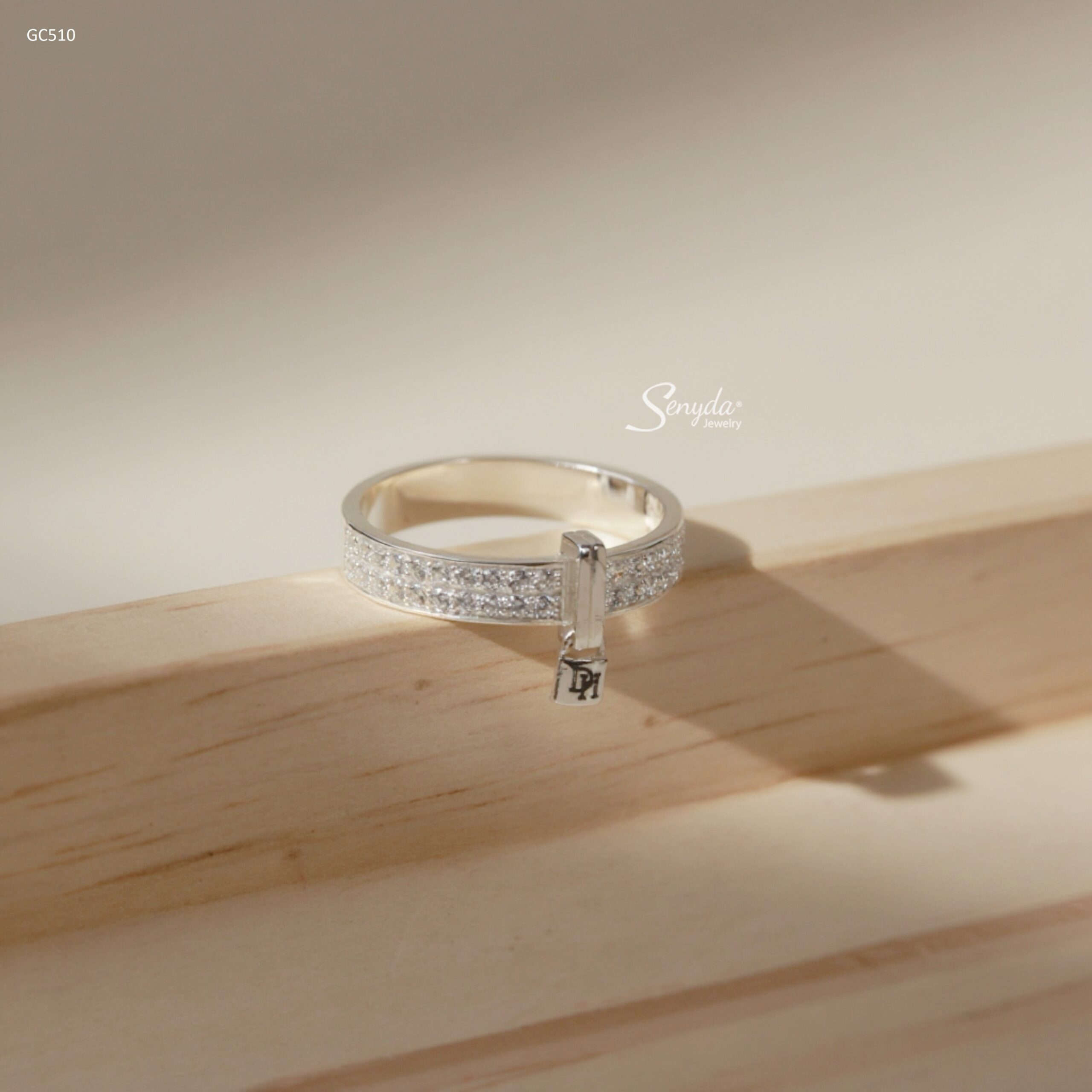 Mô tả: GC510 Nhẫn bạc Ý Senyda bản nữa hàng đá hai dãy treo charm theo yêu cầu