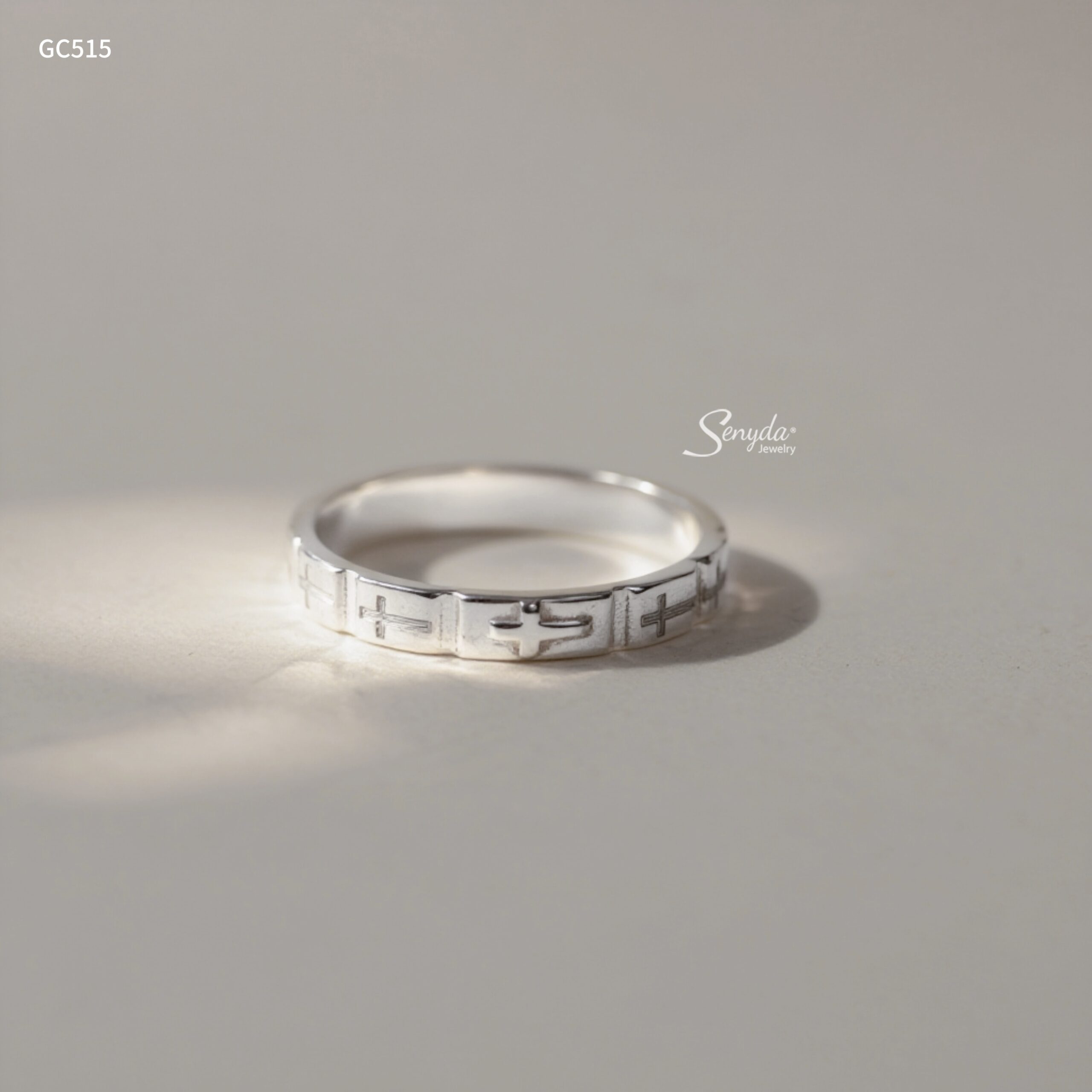 Mô tả: GC515 Nhẫn bạc Ý Senyda bản khúc chữ nhật thánh giá