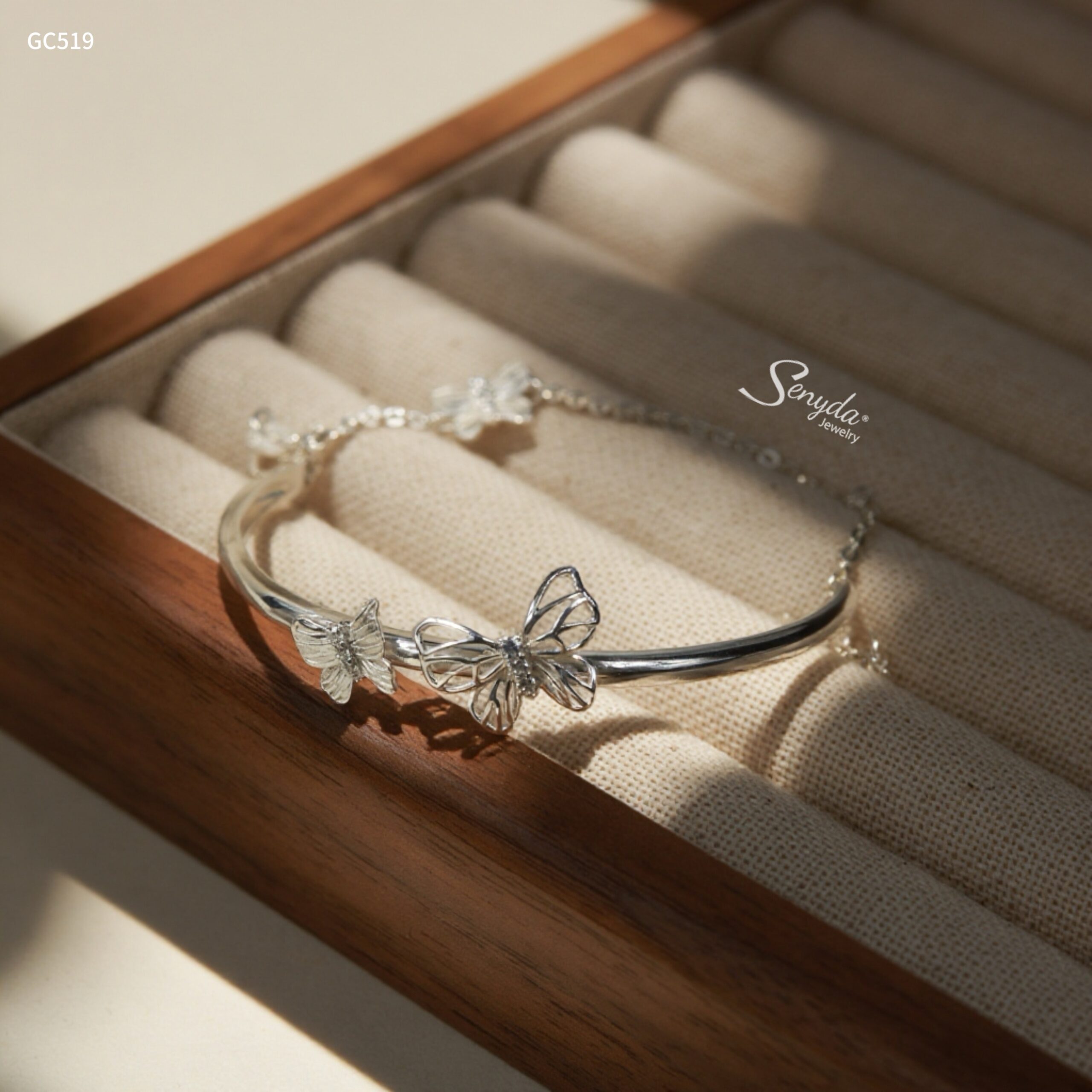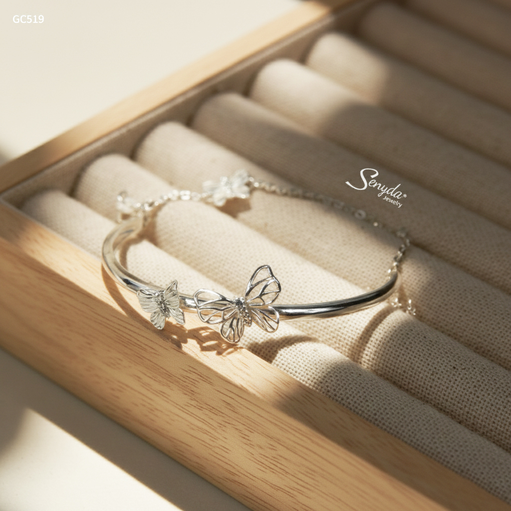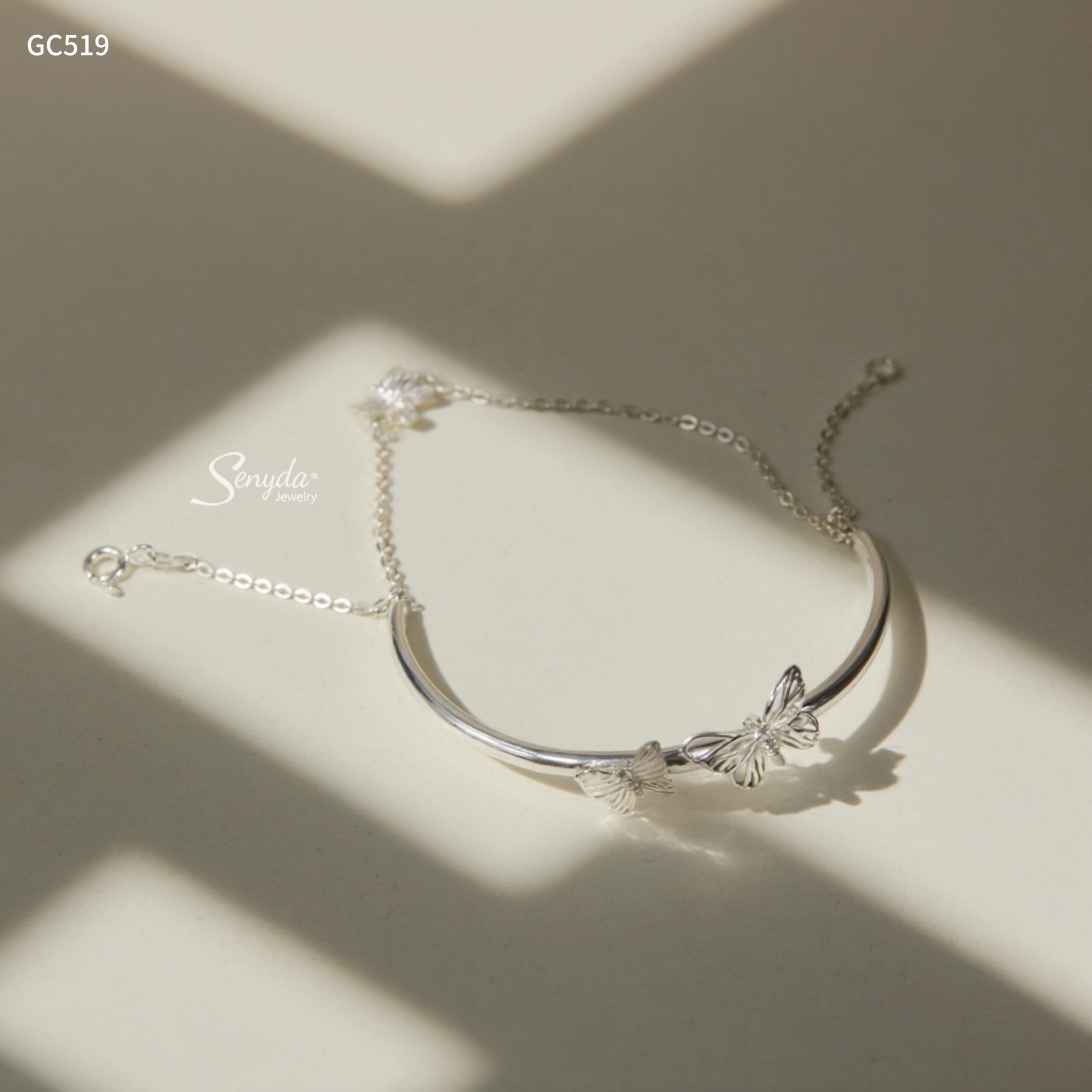 Mô tả: GC519 Vòng tay bạc Ý Senyda kép dây cong mặt buớm