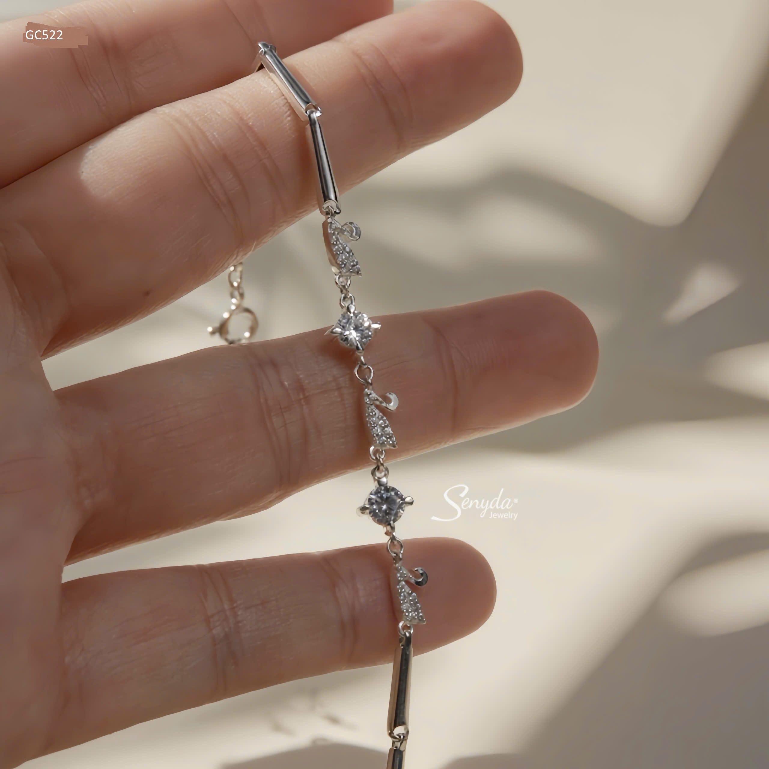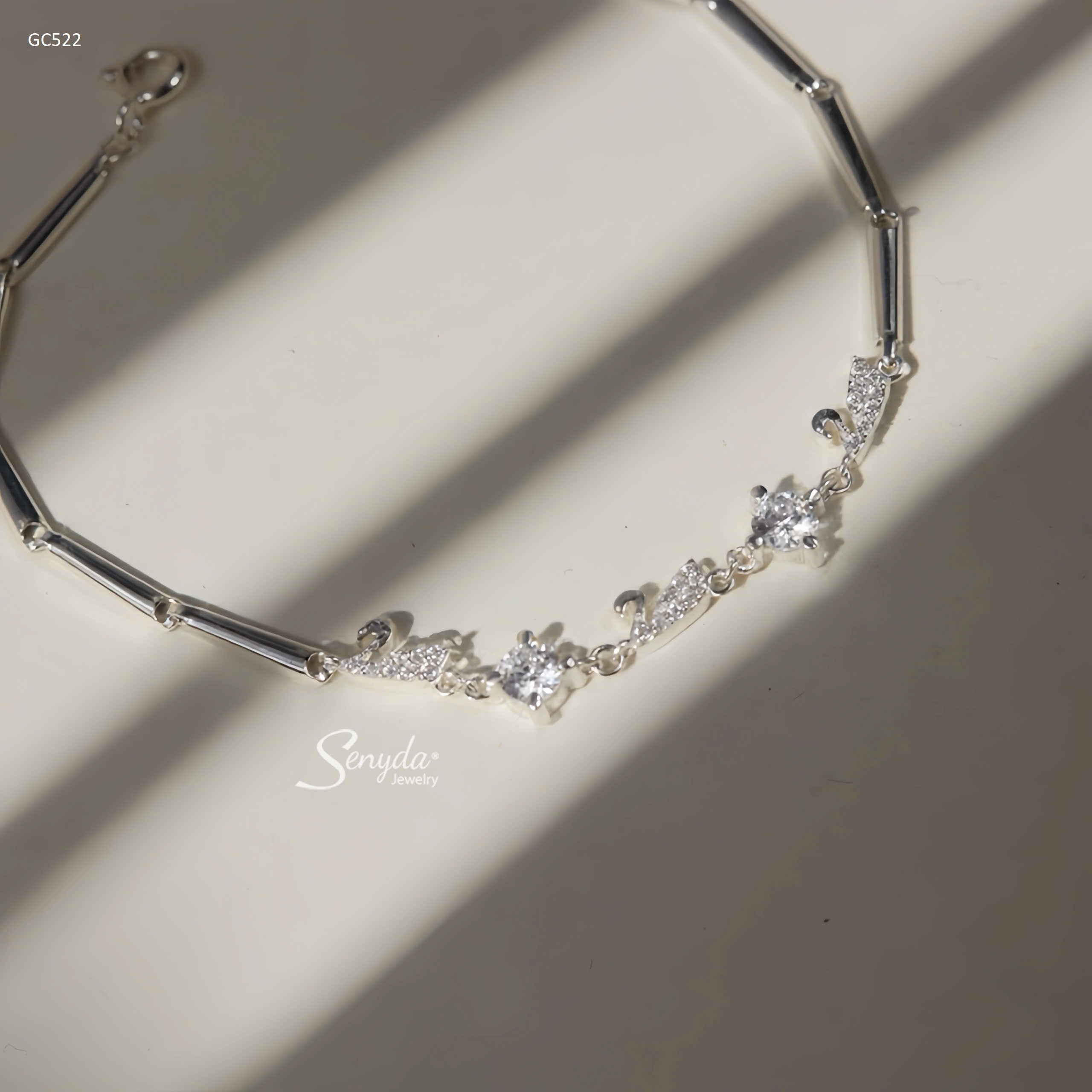 Mô tả: GC522 Lắc tay bạc Ý Senyda dây khúc nối liền mặt thiên nga đá xen nụ đá