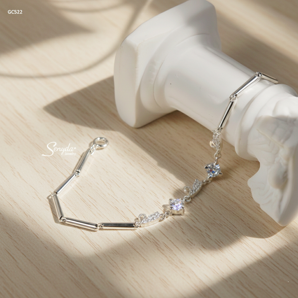 GC522 Lắc tay bạc Ý Senyda dây khúc nối liền mặt thiên nga đá xen nụ đá