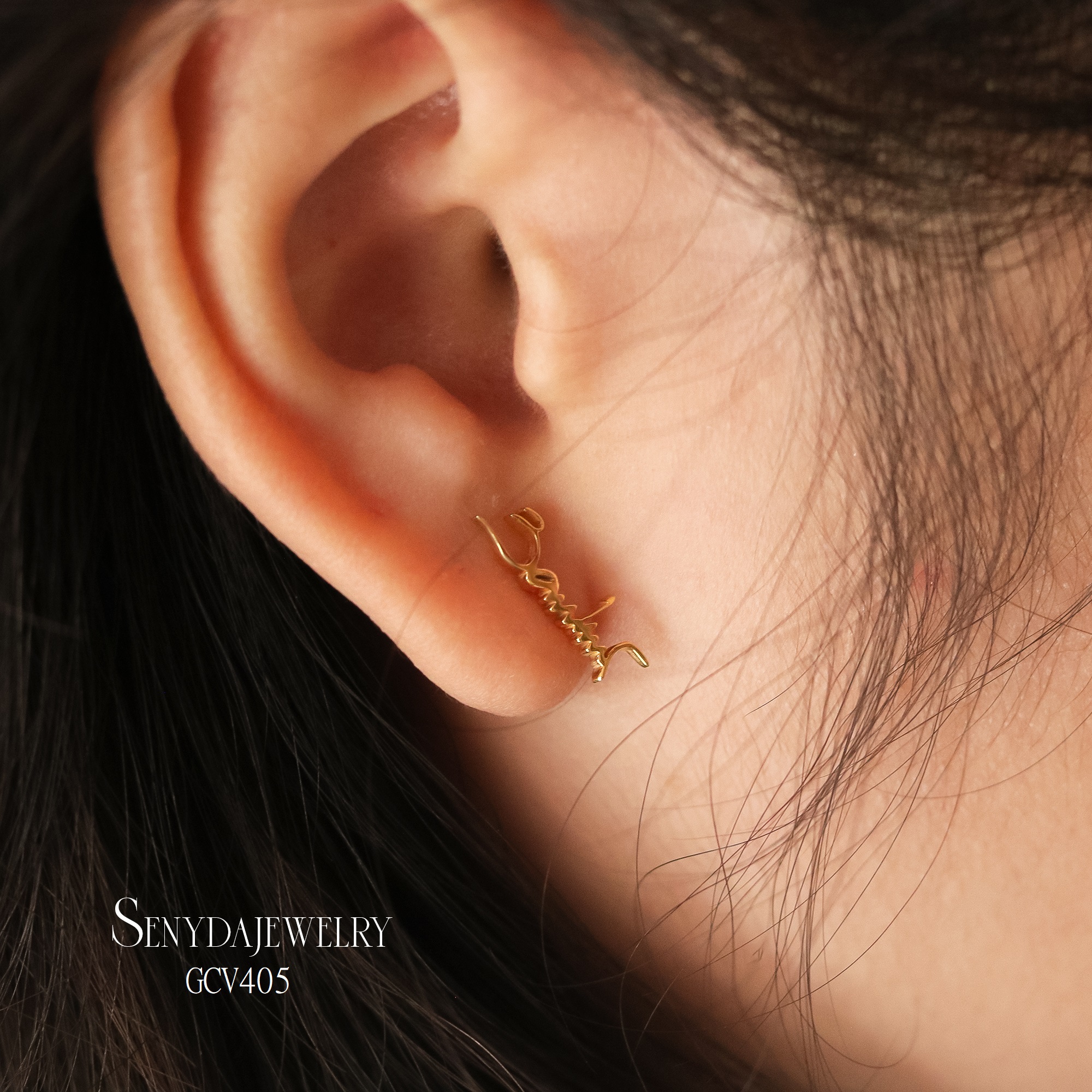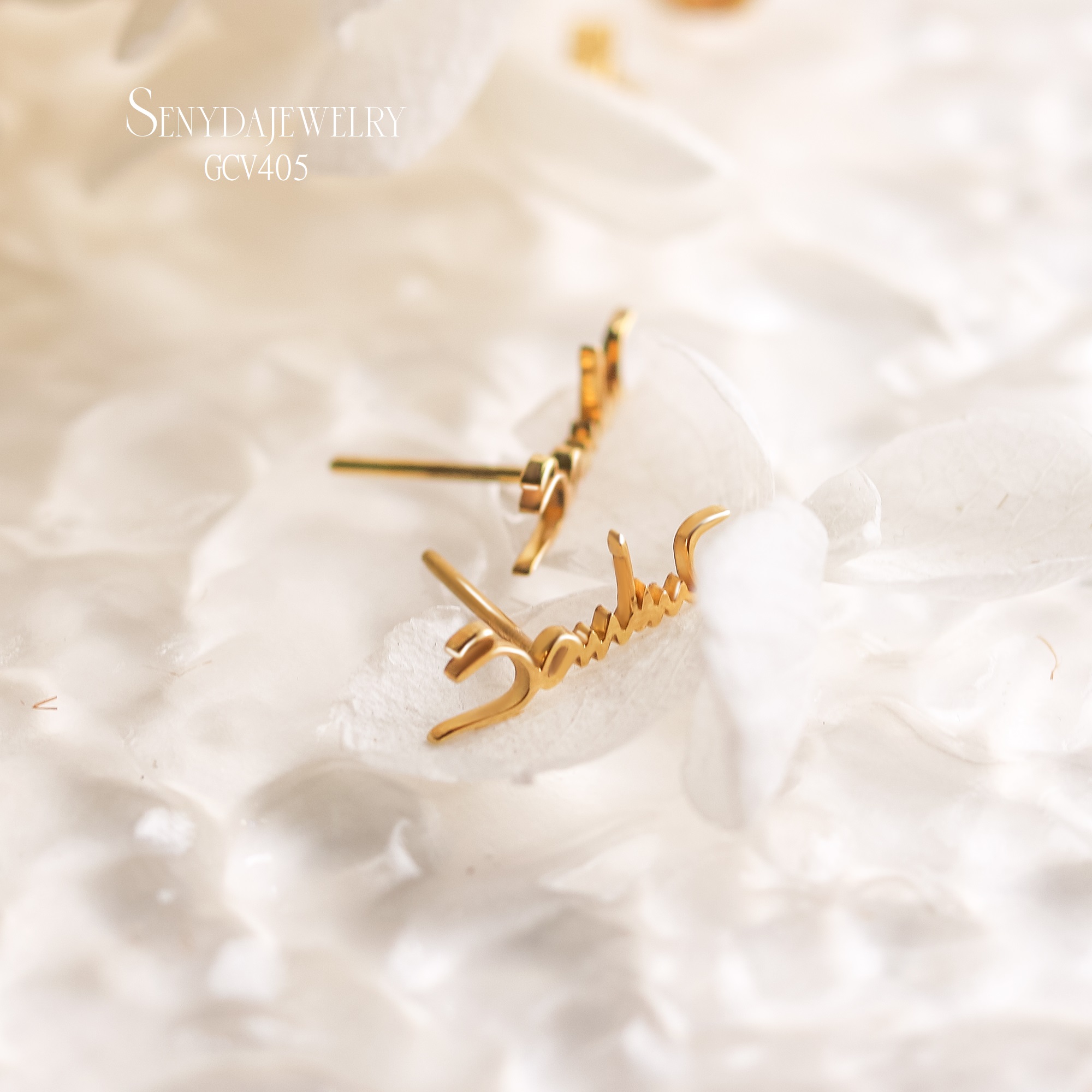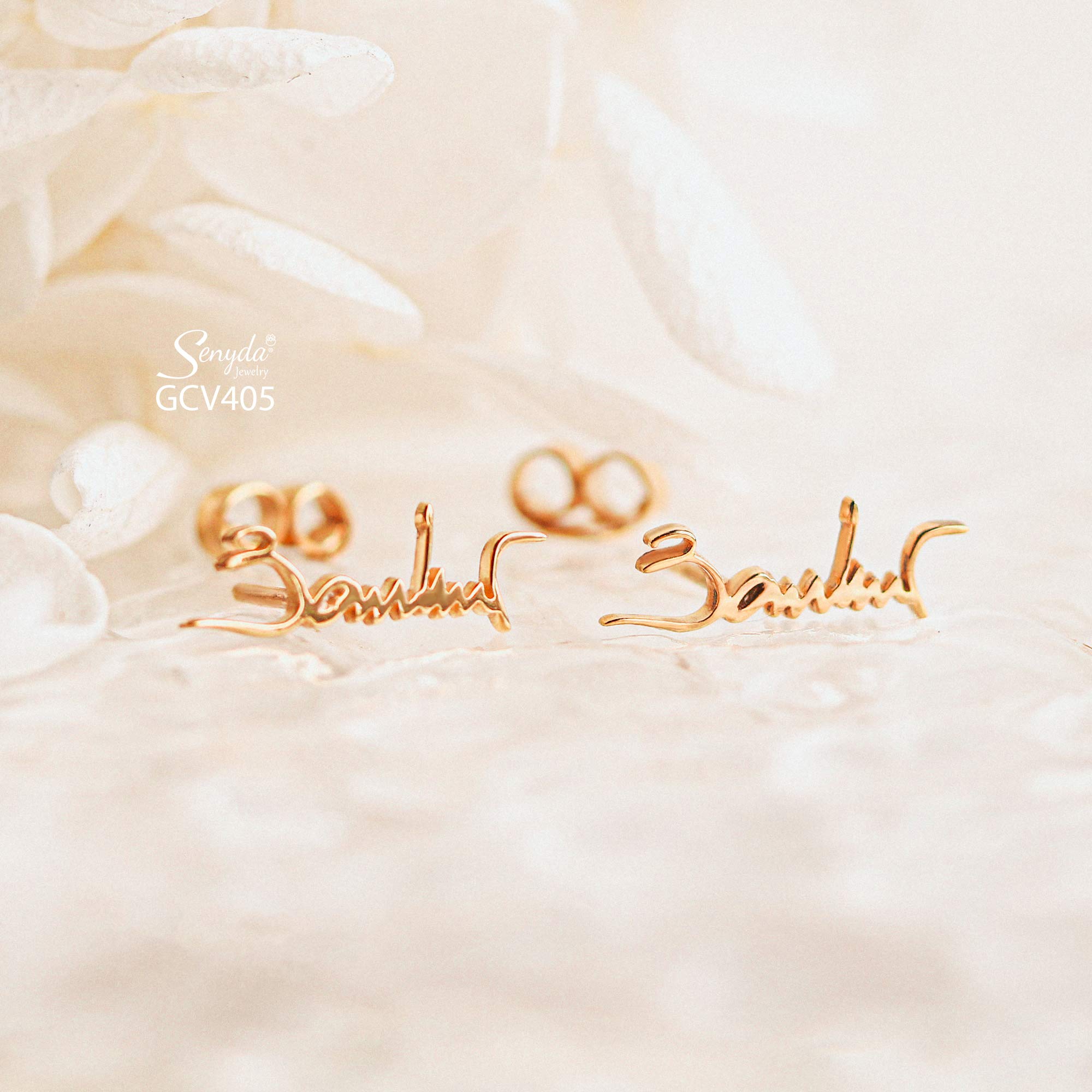 Mô tả: GCV405 Bông tai vàng Senyda lộng chữ ký treo theo yêu cầu