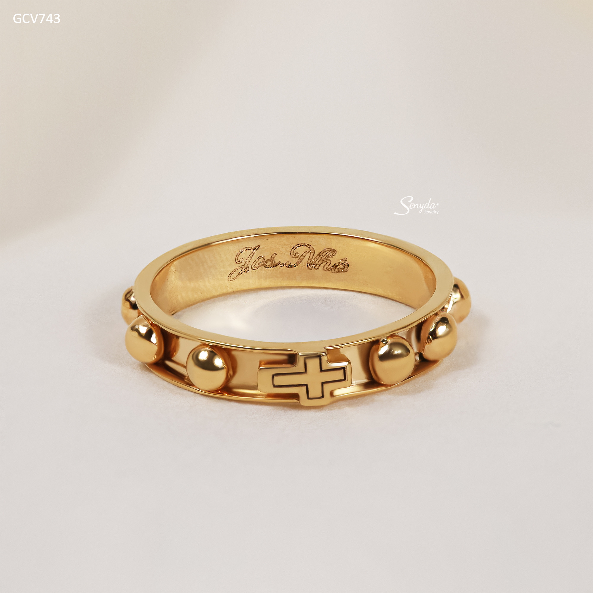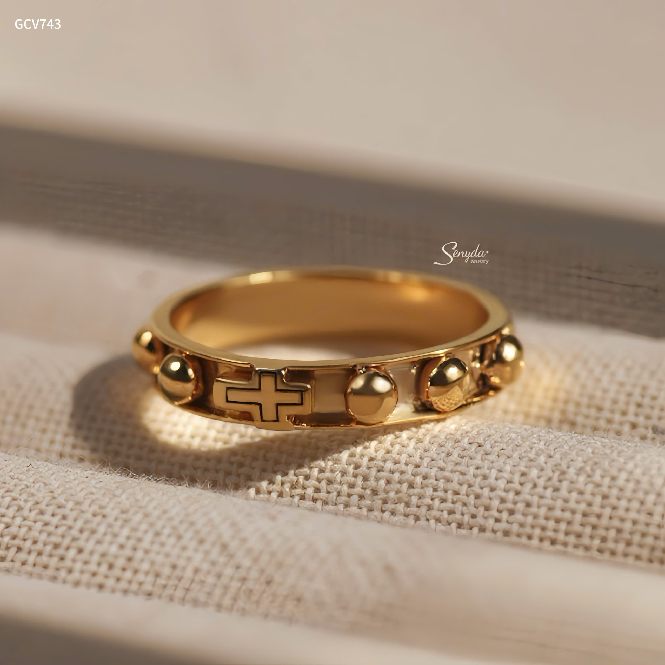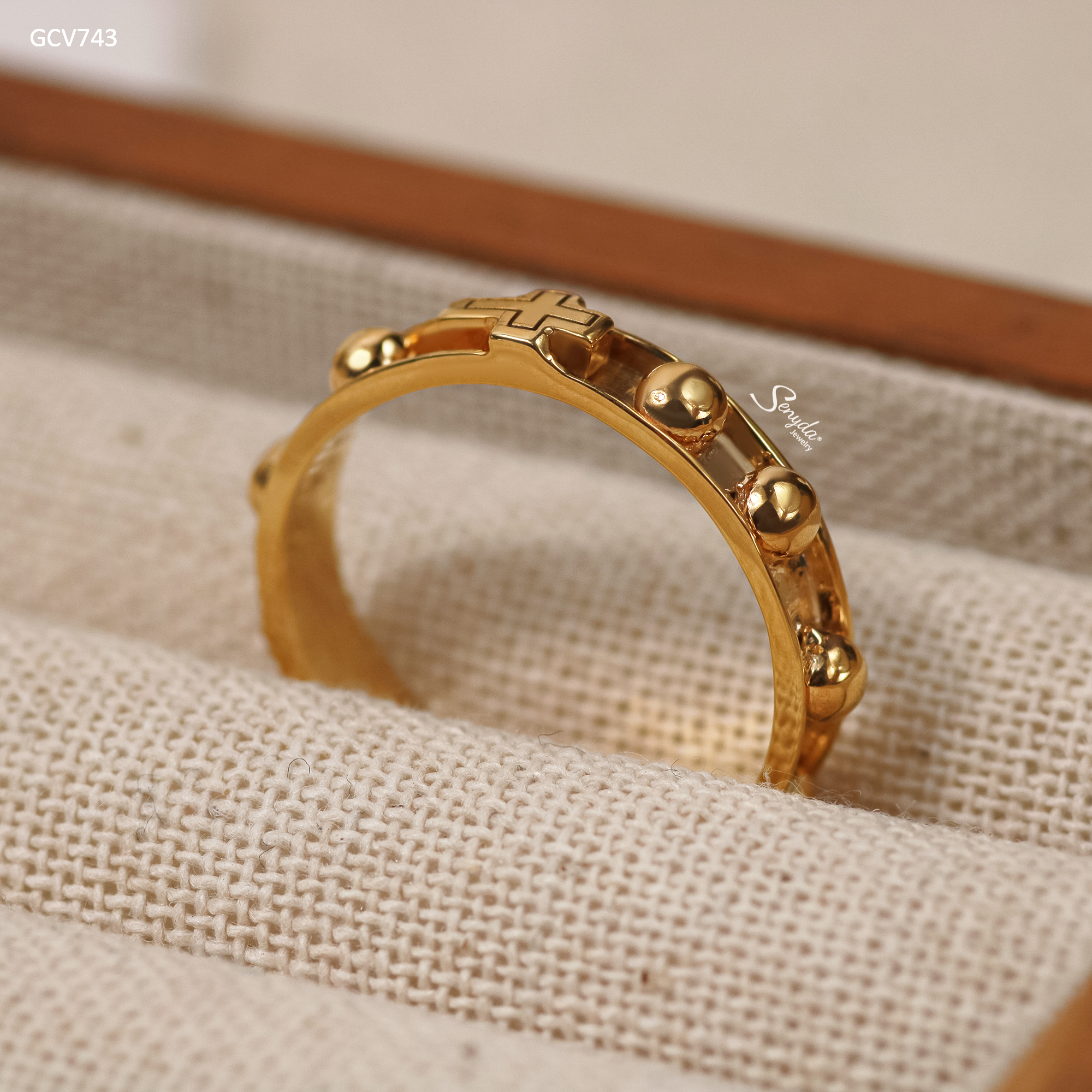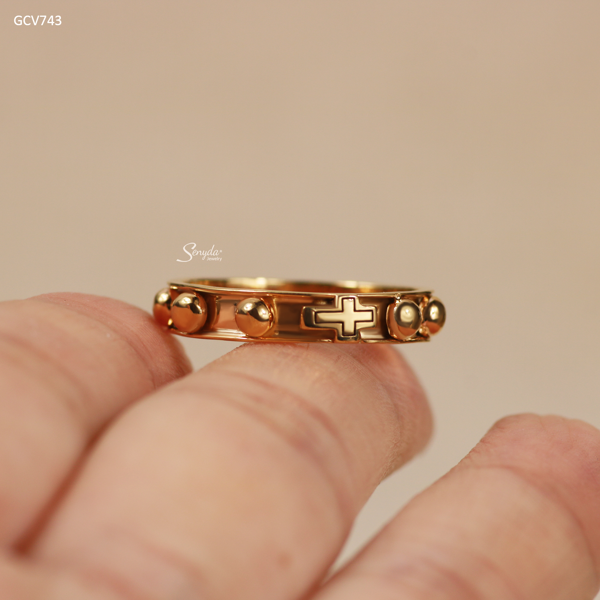 GCV743 Nhẫn vàng Senyda mặt Thánh giá nổi đai chấm bi nổi