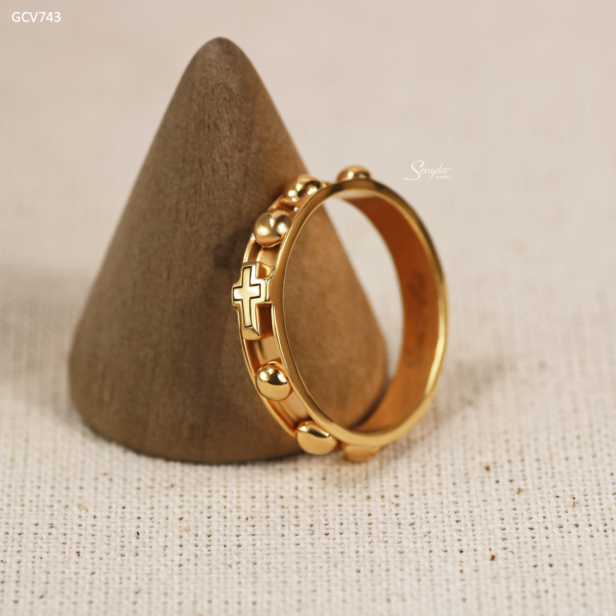 Mô tả: GCV743 Nhẫn vàng Senyda mặt Thánh giá nổi đai chấm bi nổi
