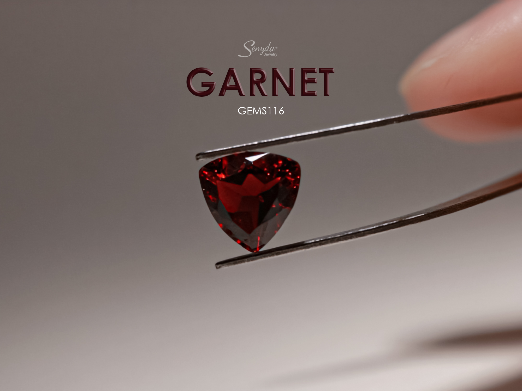 ✨ Chất liệu: Đá Garnet, tam giác bo cạnh (Trillion Cut)
