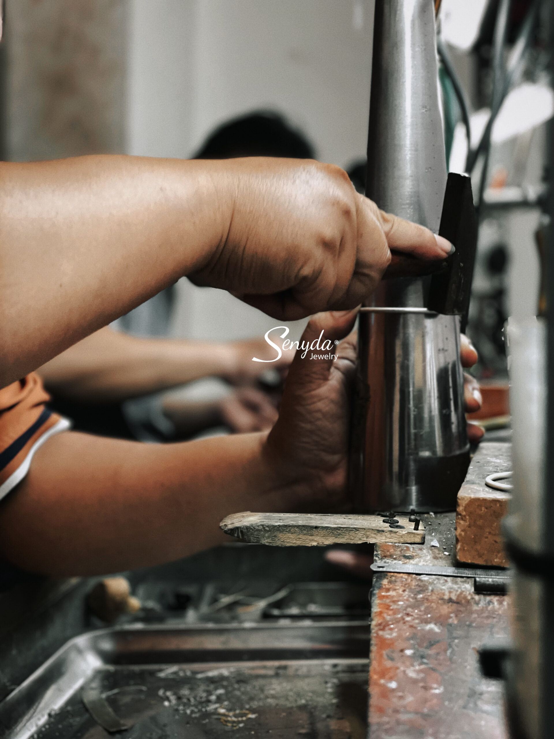 Đội ngũ thợ kim hoàn tại Senyda có nhiều kinh nghiệm trong việc xử lý các chi tiết nhỏ và tinh xảo. Trong quá trình gia công trang sức, những bộ phận như móc cài, gờ cạnh hay chân đá luôn được chăm chút cẩn thận để đảm bảo tính thẩm mỹ và độ chắc chắn. Quy trình làm việc linh hoạt, không cứng nhắc theo khuôn mẫu, giúp từng chi tiết được hoàn thiện chỉn chu và đồng đều, mang lại cảm giác yên tâm khi sử dụng.