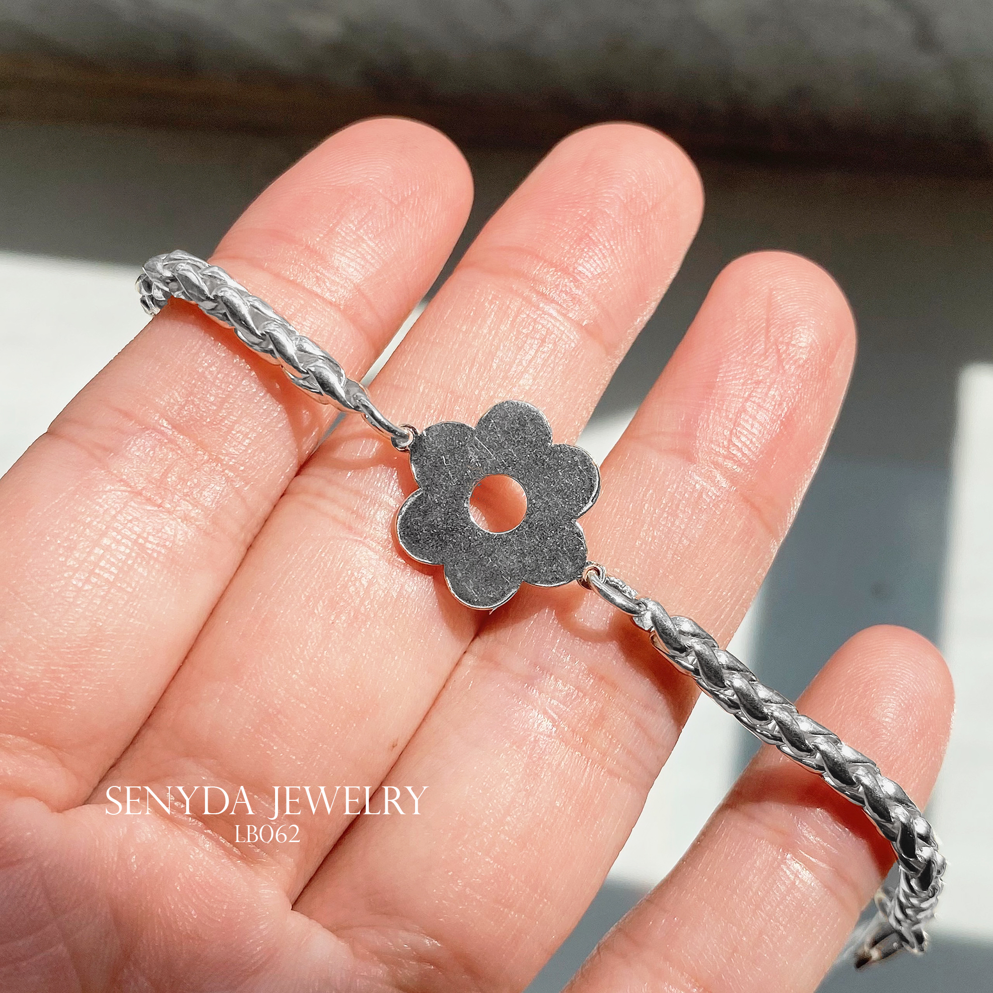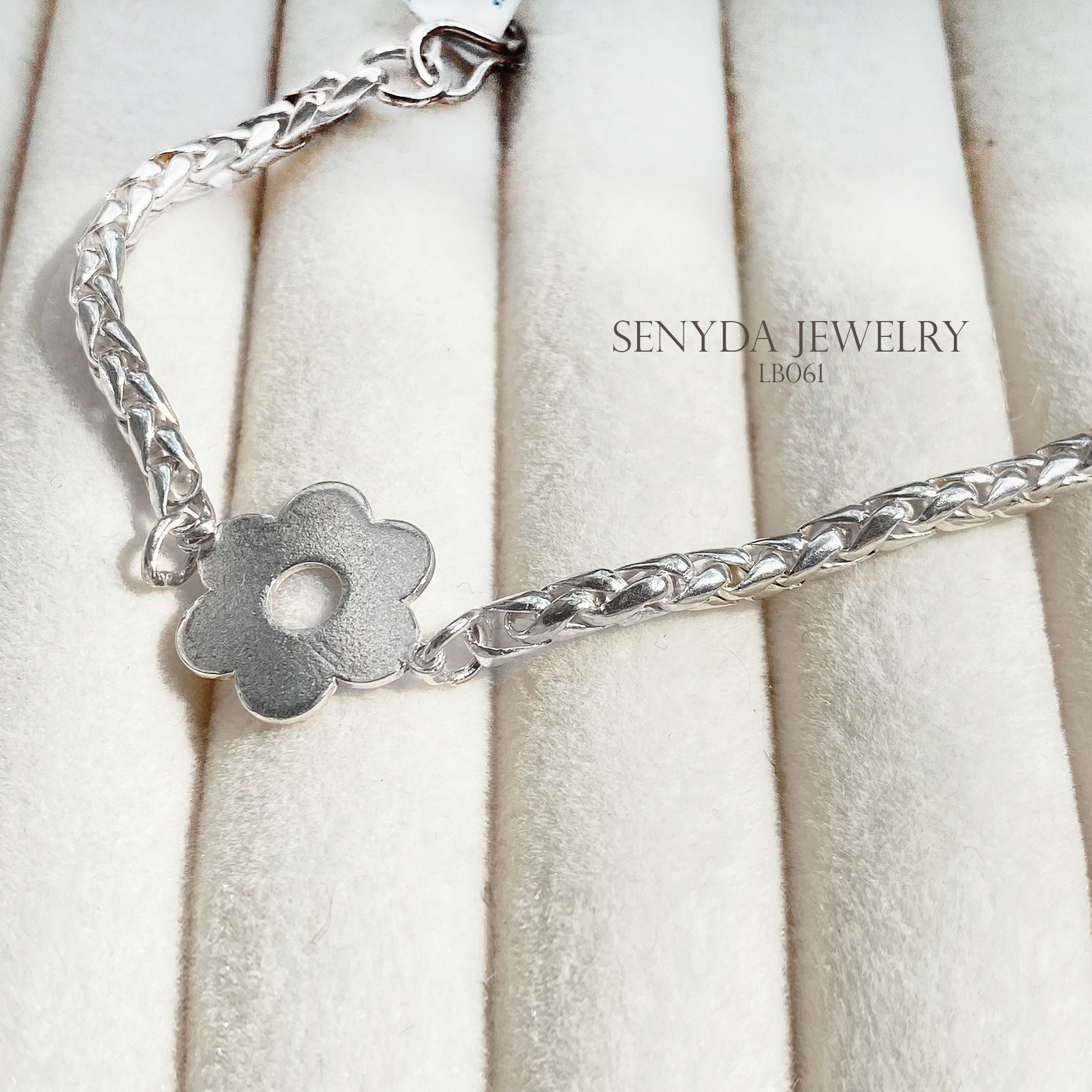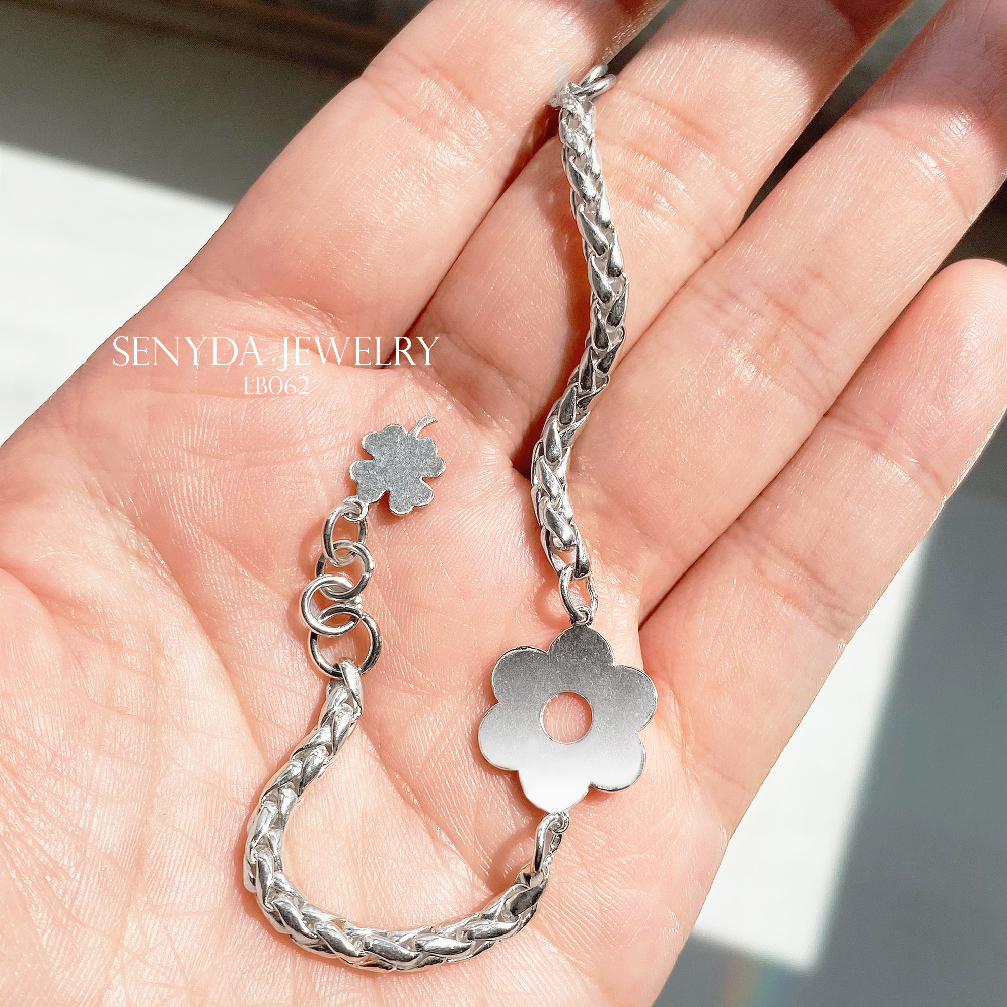 Mô tả: LB062 Lắc tay bạc cho bé Senyda dây rồng mặt hoa 6 cánh nhụy rỗng