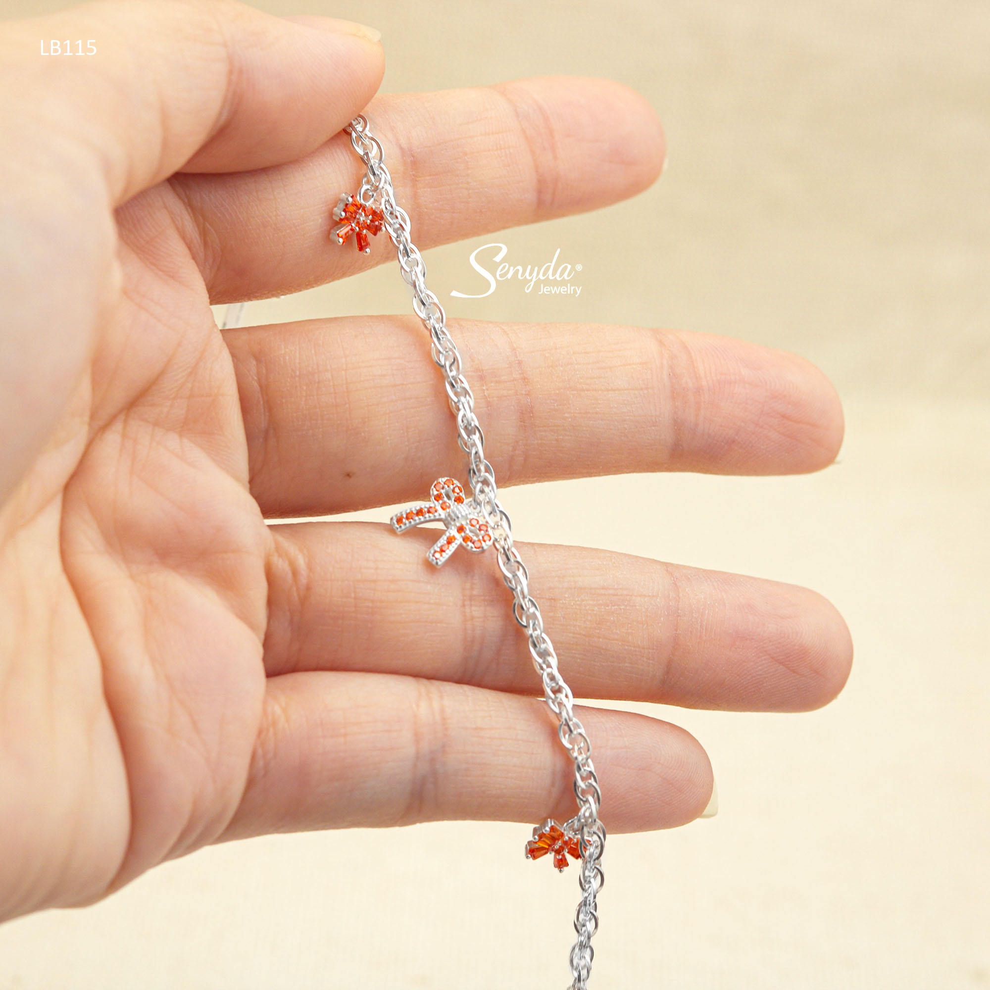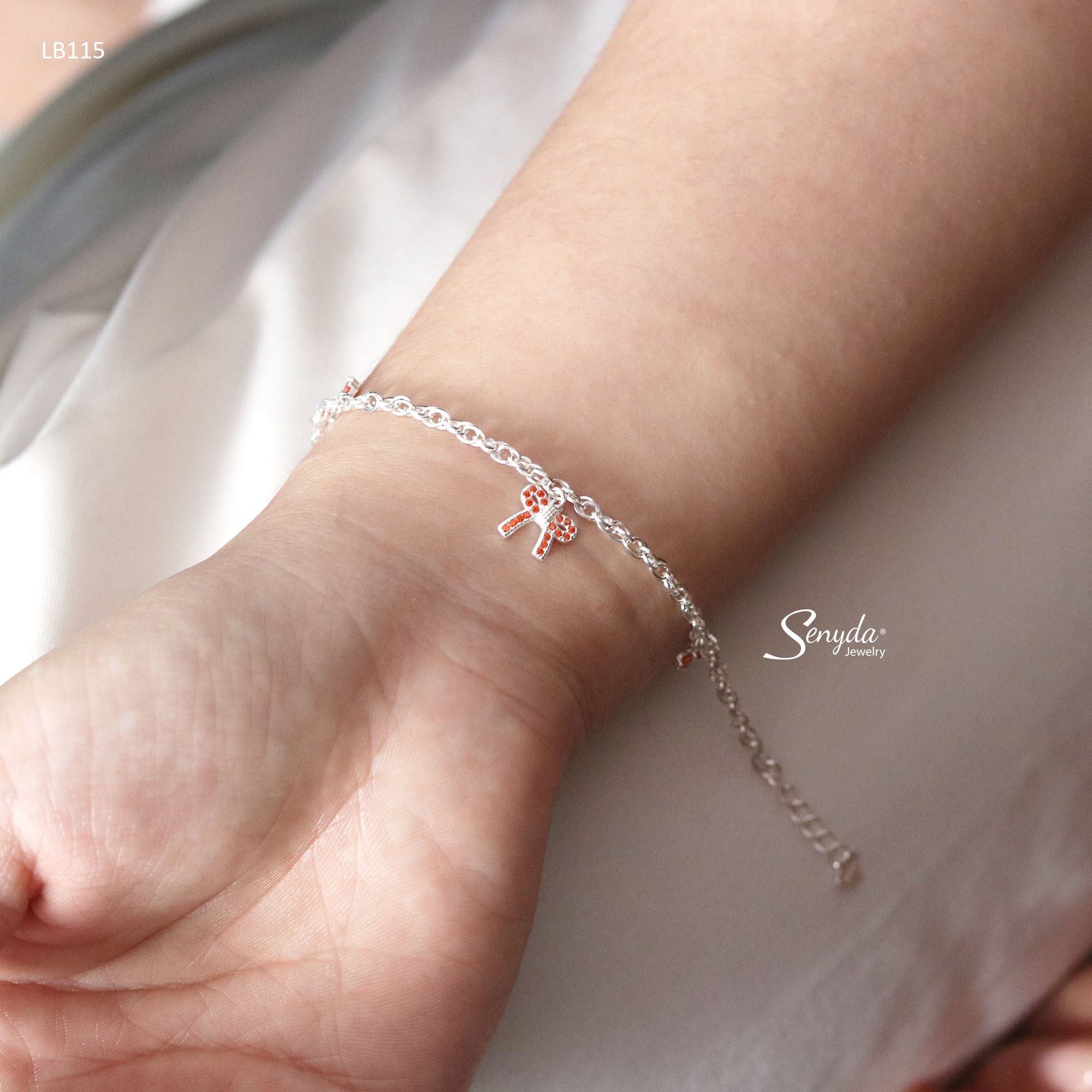 Mô tả: LB115 Lắc bạc cho bé Senyda dây chữ cong đôi nơ đá treo