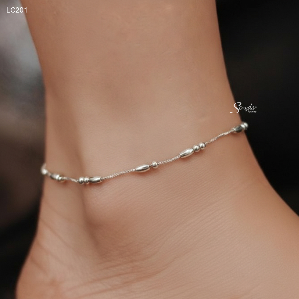 Mô tả: LC201 Lắc chân bạc Ý Senyda dây mì xỏ bi ống trụ trơn