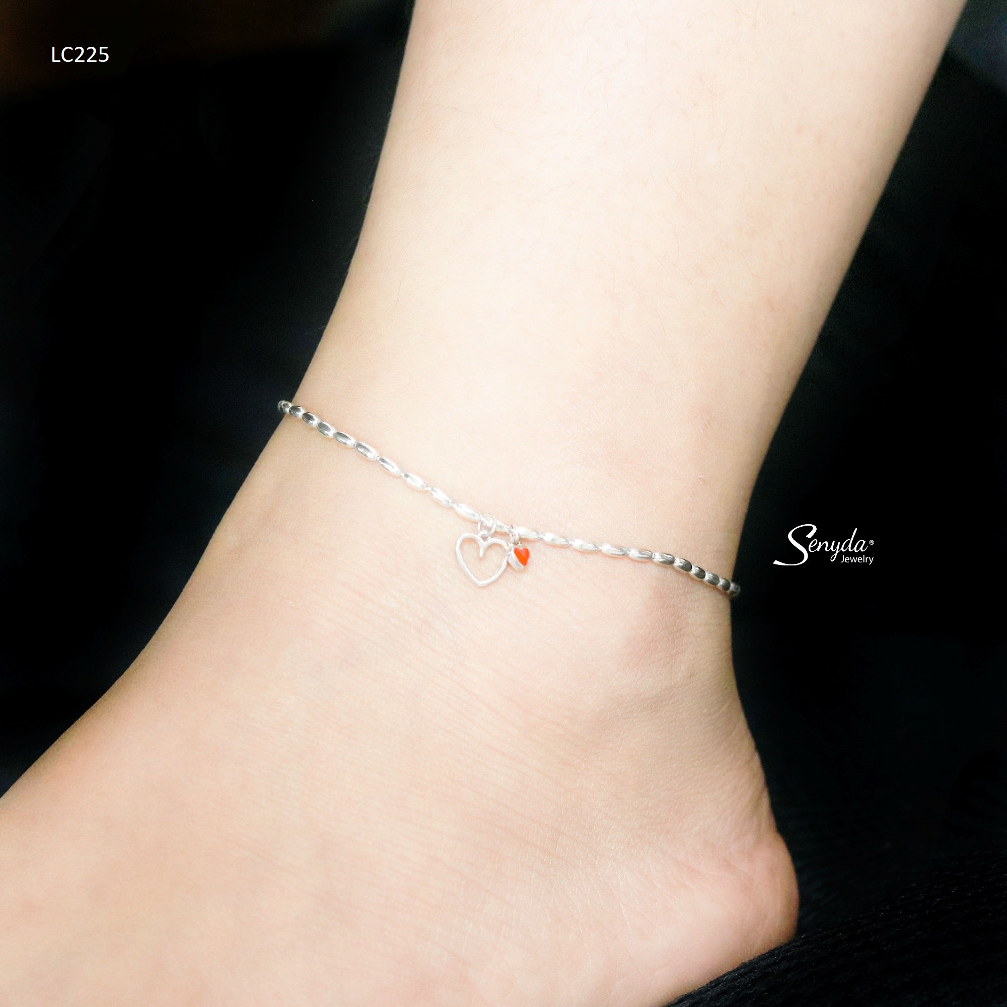 LC225 Lắc chân bạc Ý Senyda dây bi dài hạt gạo tim treo