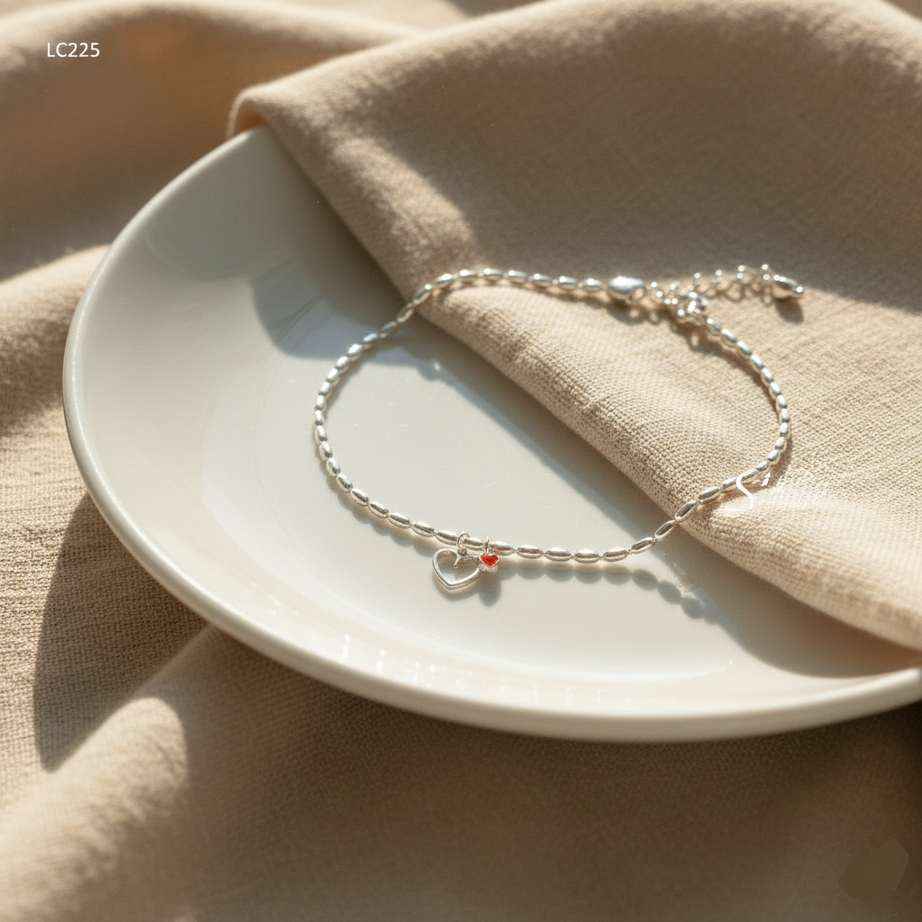 Hãy là người đầu tiên nhận xét “LC225 Lắc chân bạc Ý Senyda dây bi dài hạt gạo tim treo”
