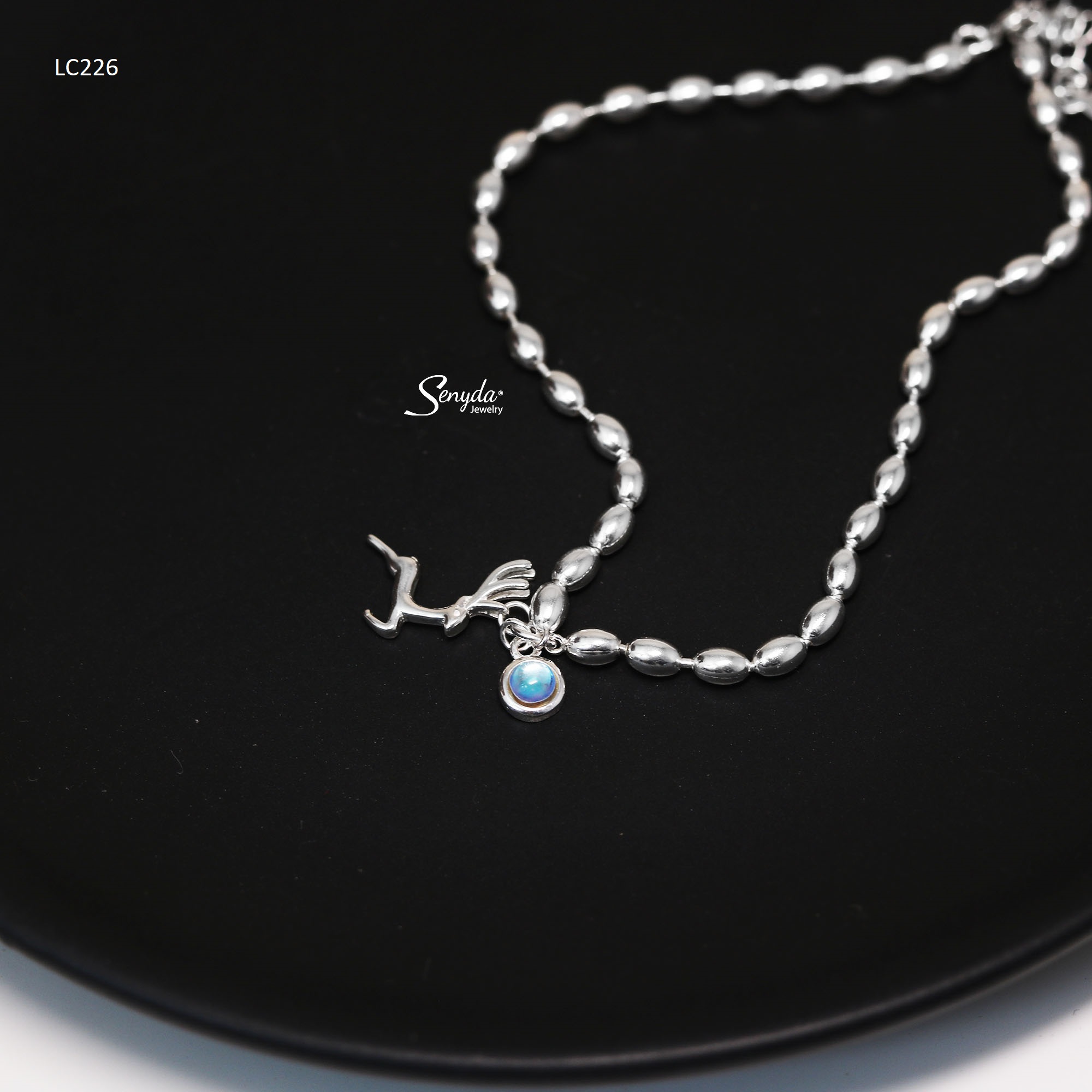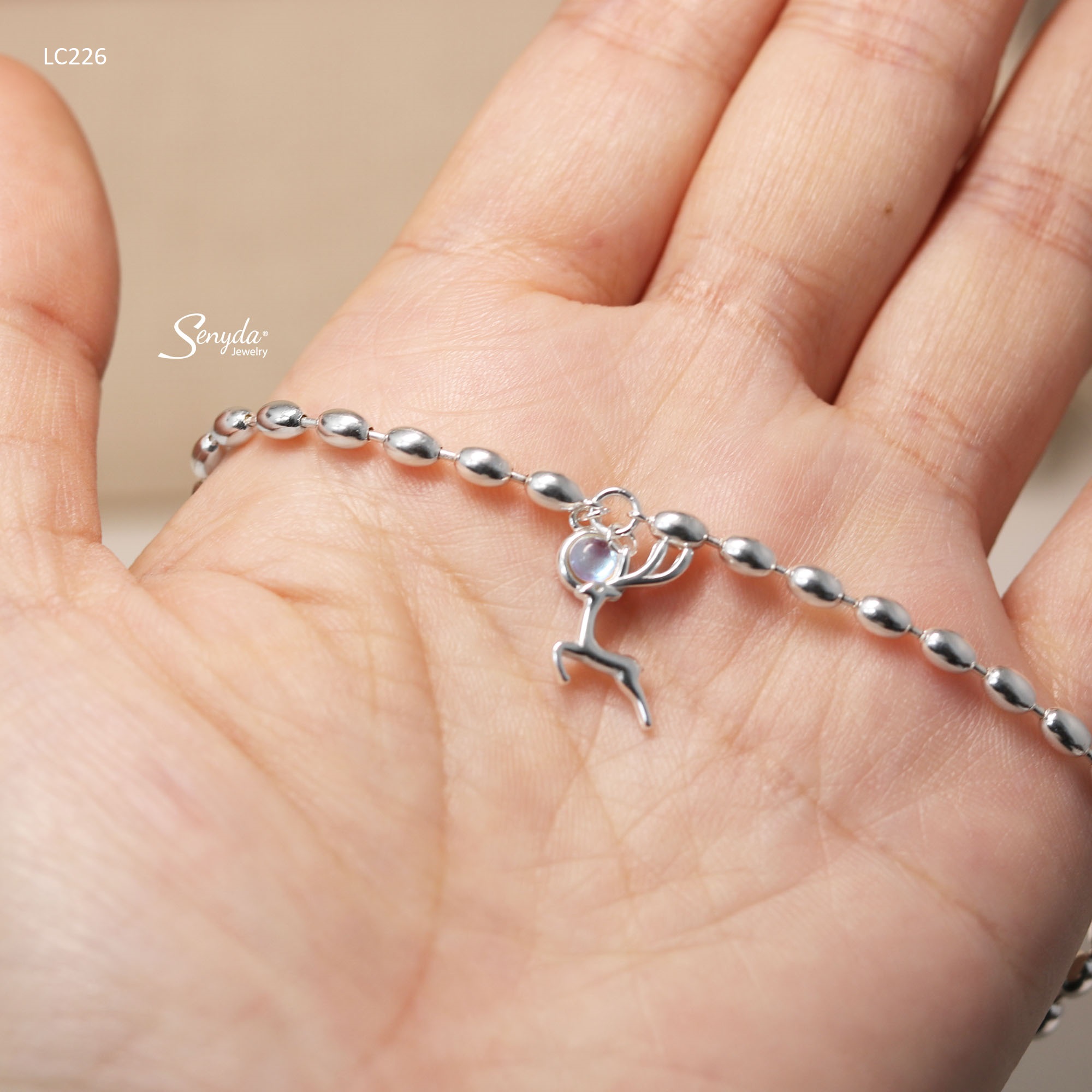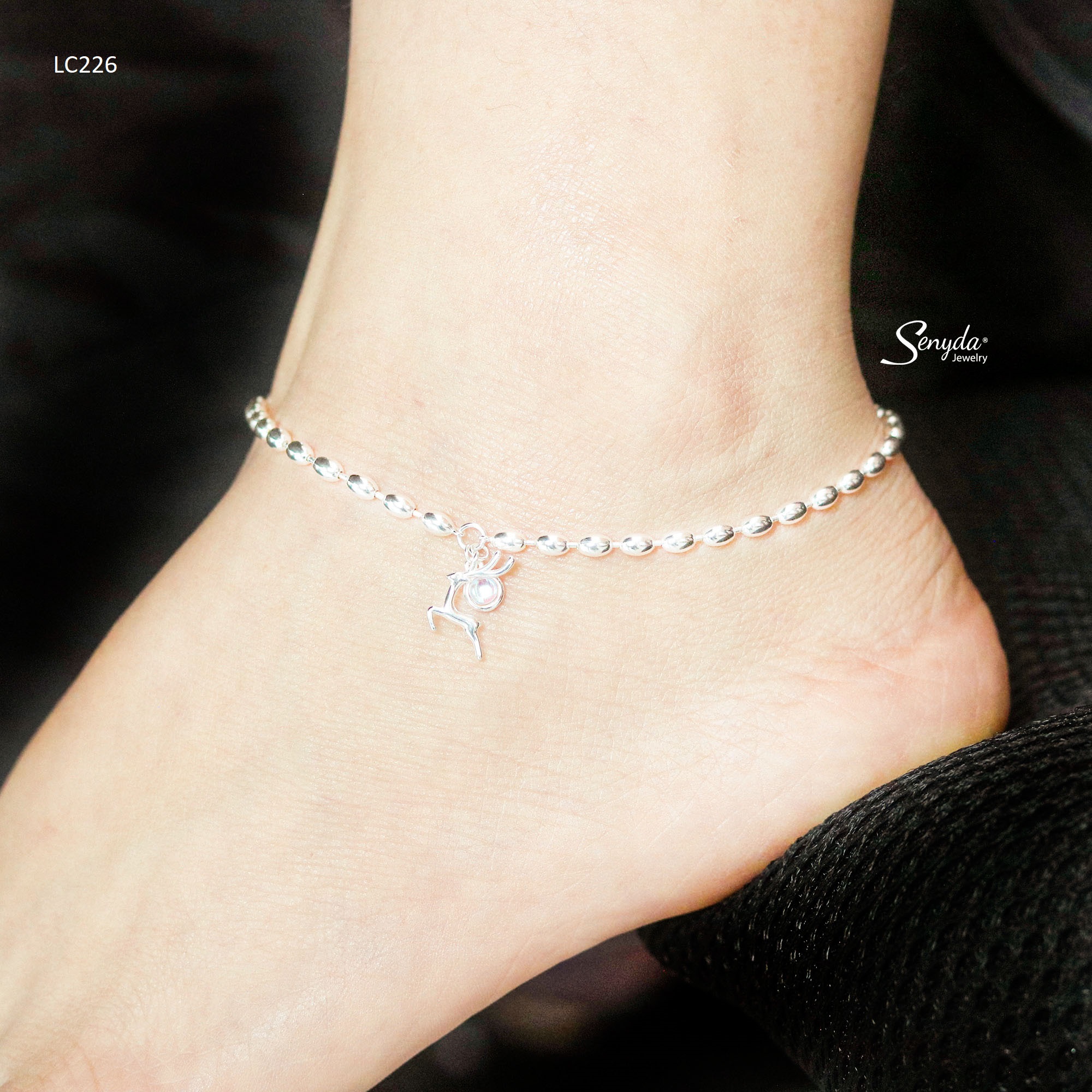 Mô tả: LC226 Lắc chân bạc Ý Senyda dây bi dài hạt gạo lớn tuần lộc treo