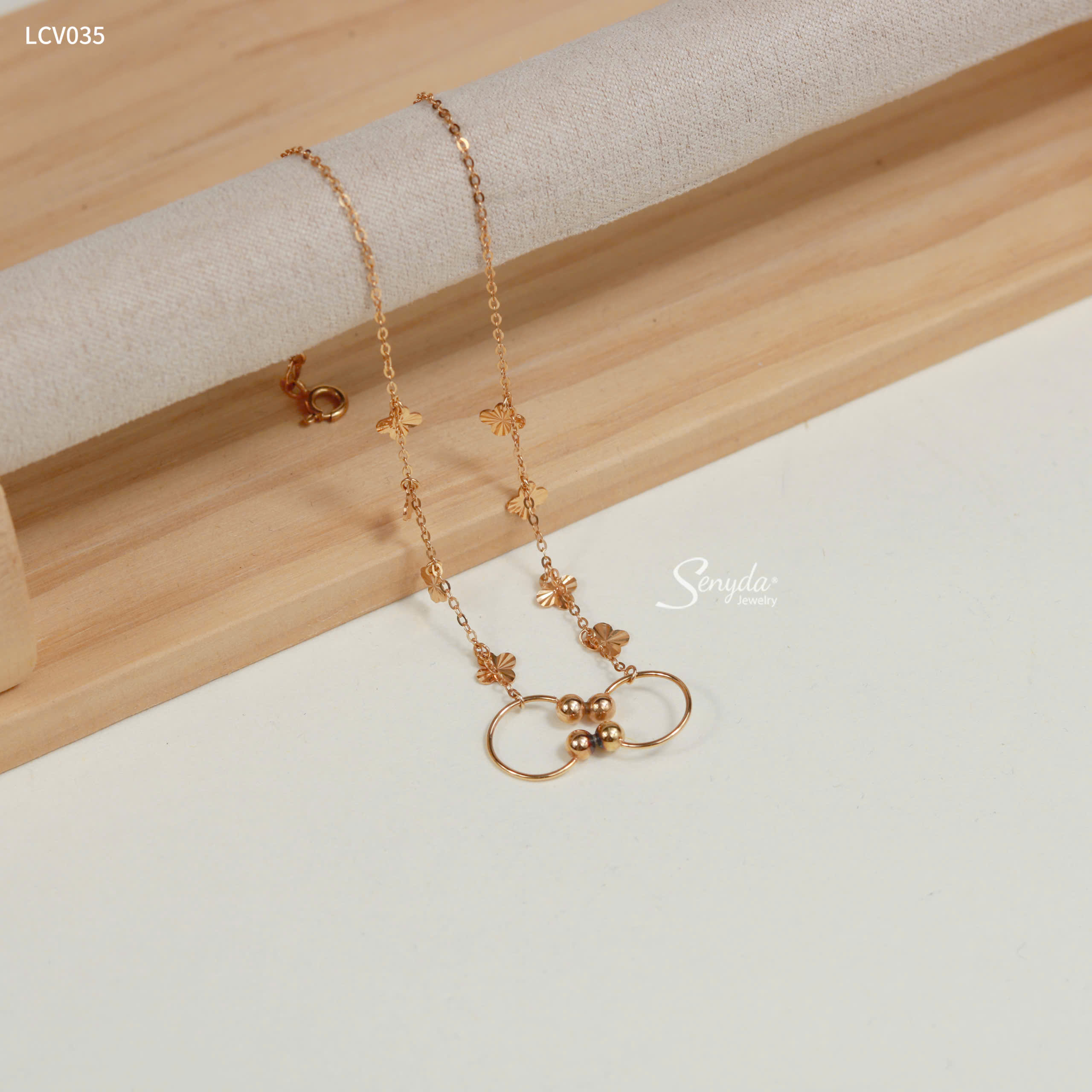 57 đánh giá cho LCV035 Lắc chân vàng Senyda 2 vòng tròn hở 2 đầu bi hoa 4 cánh giác treo