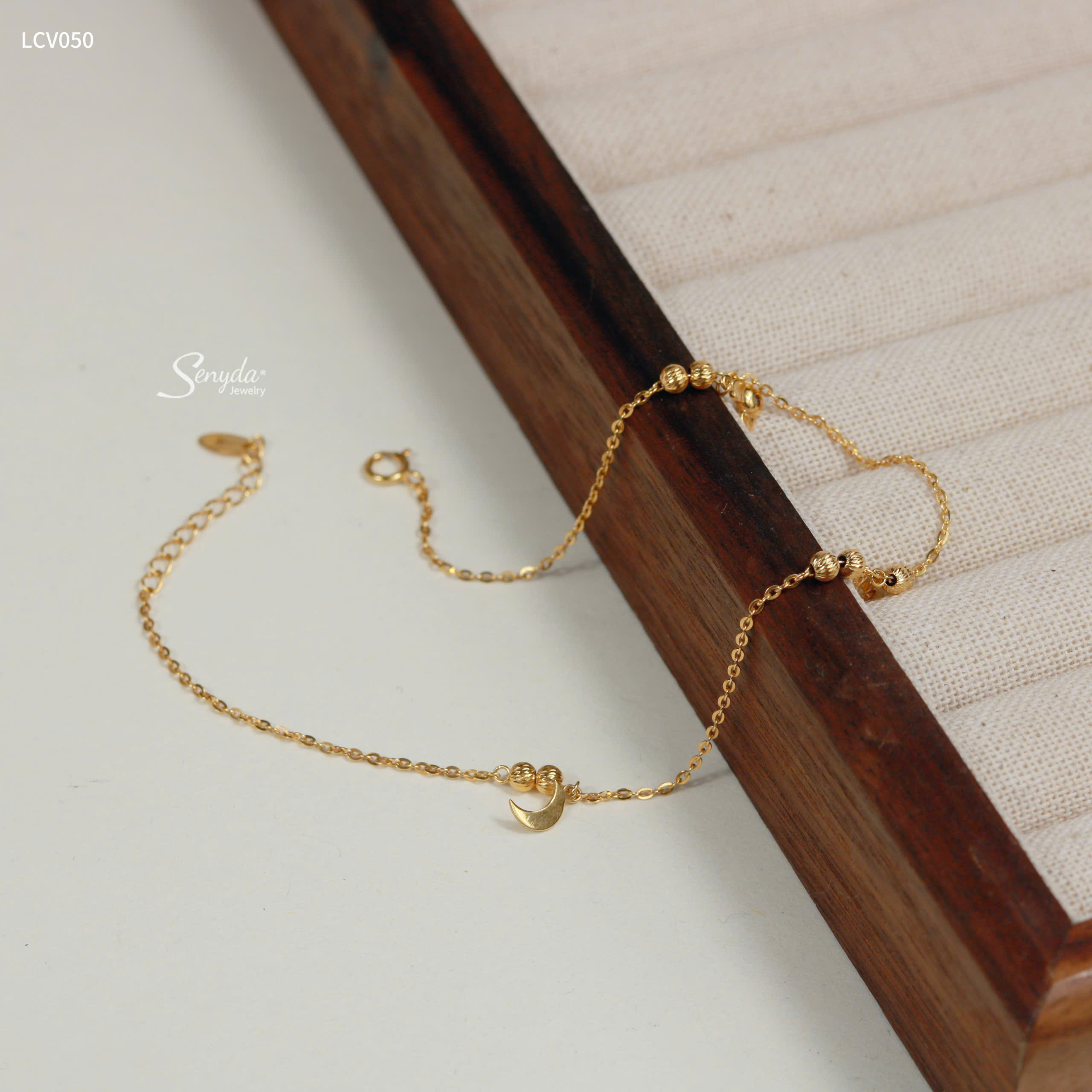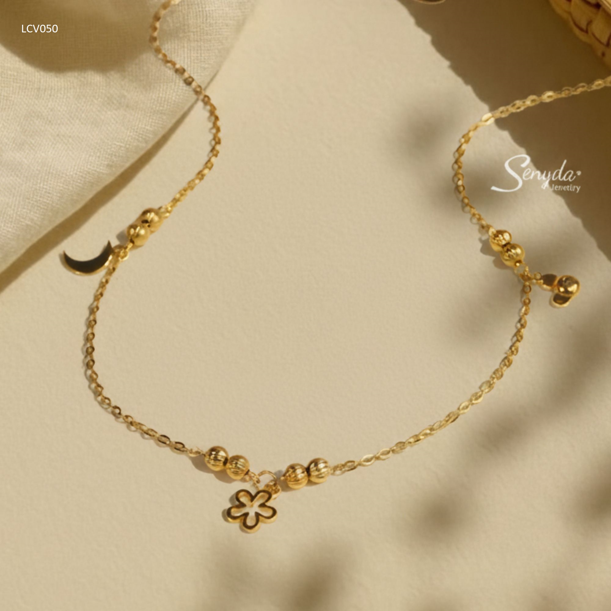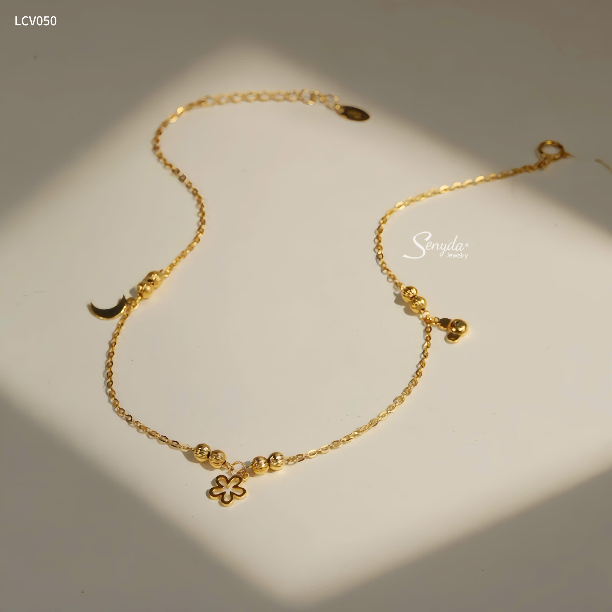 LCV050 Lắc chân vàng Senyda trăng mickey nụ đá hoa 5 cánh rỗng treo