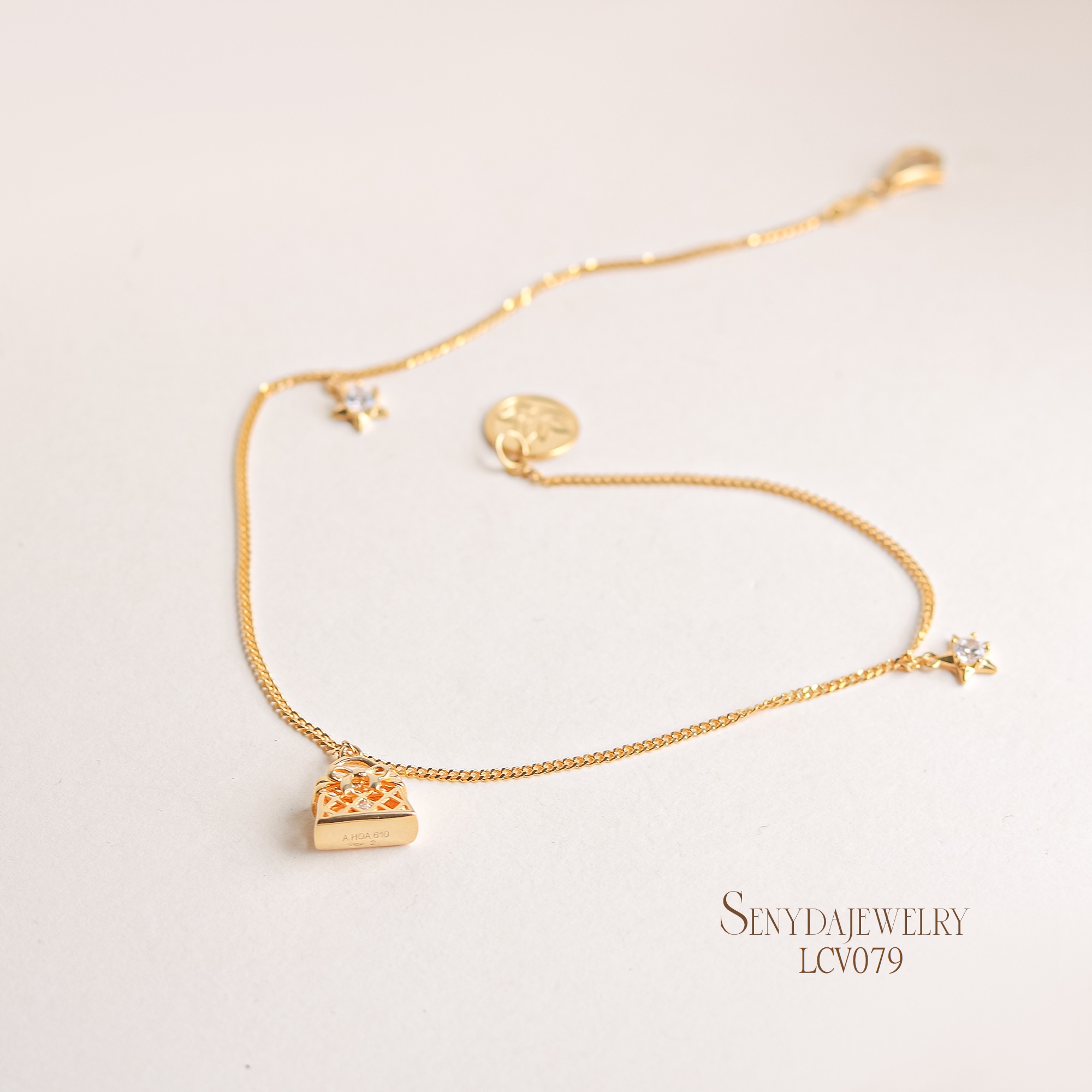 LCV079 Lắc chân vàng Senyda dây khoen lật túi xách ngôi sao treo