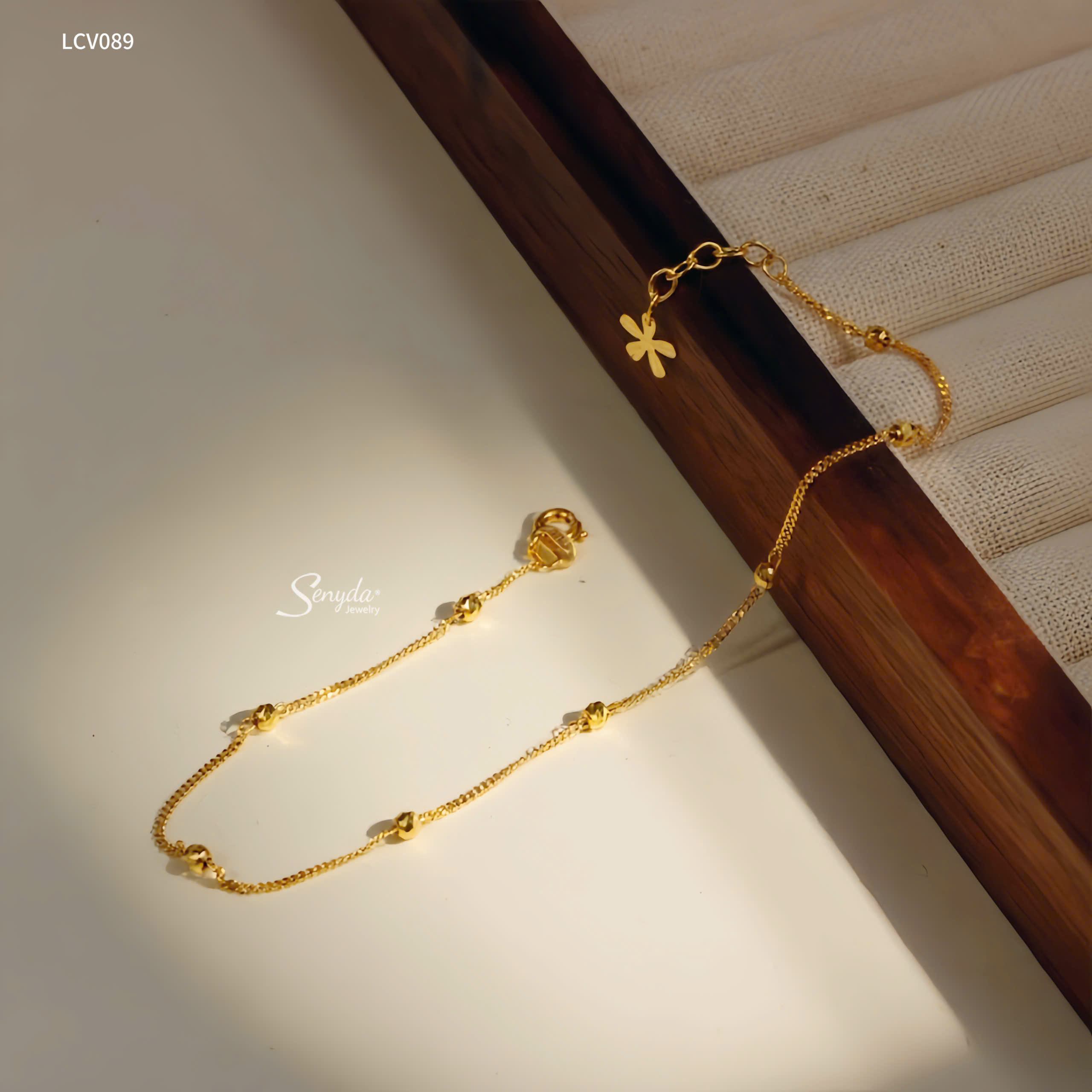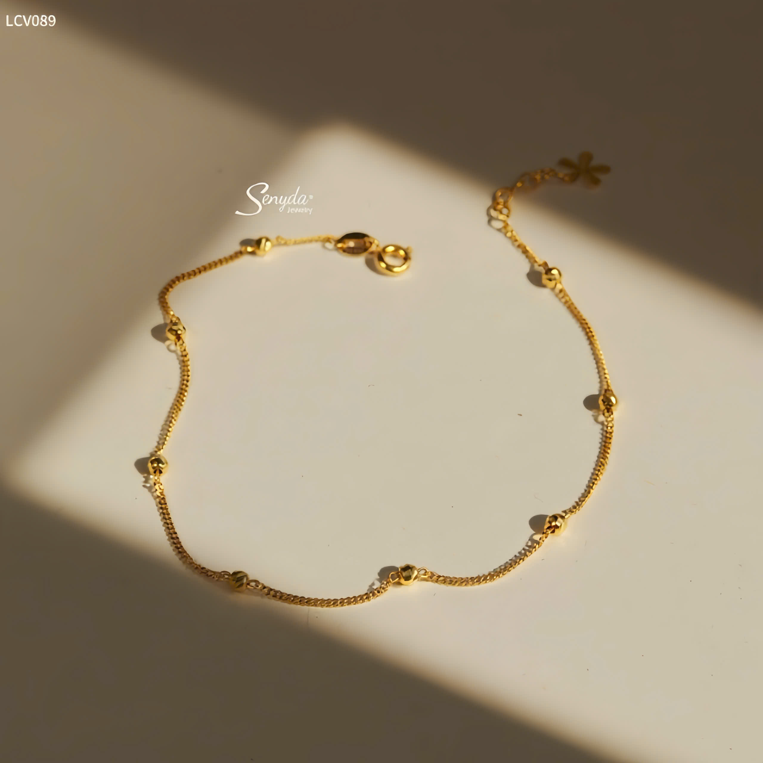 LCV089 Lắc chân vàng Senyda dây khoen lật xen bi giác nhỏ