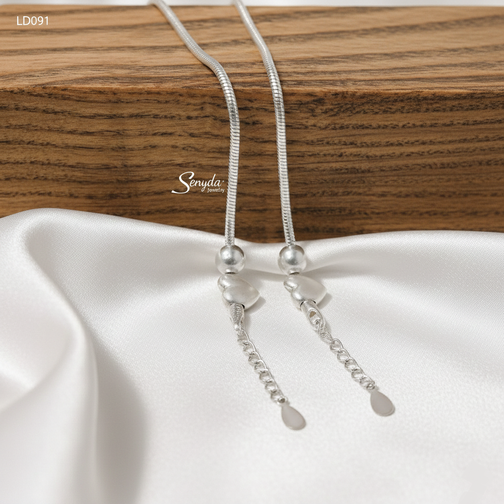 Mô tả: LD091 Lắc đôi bạc Ý Senyda mì trụ xỏ bi tim phồng trơn