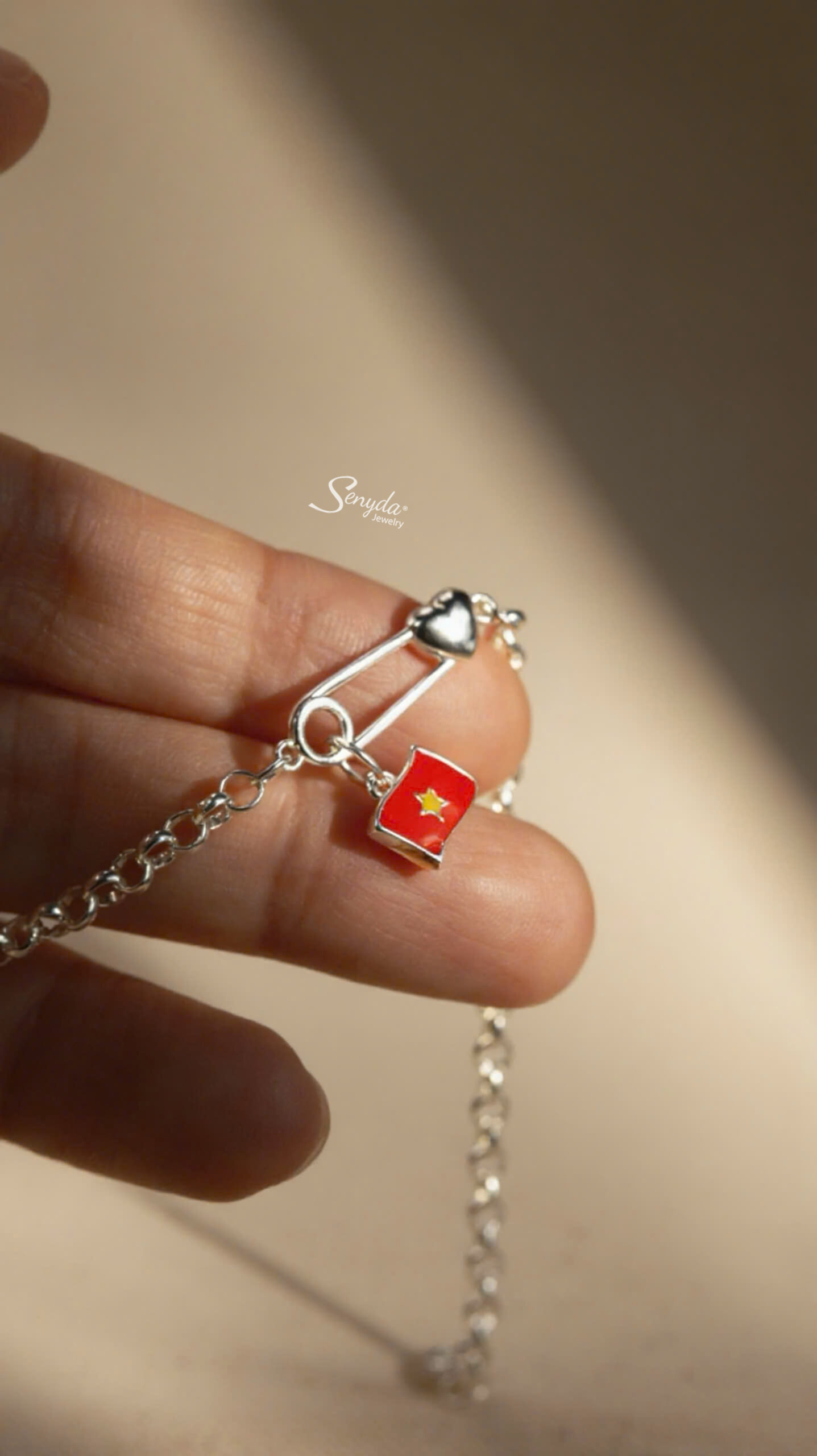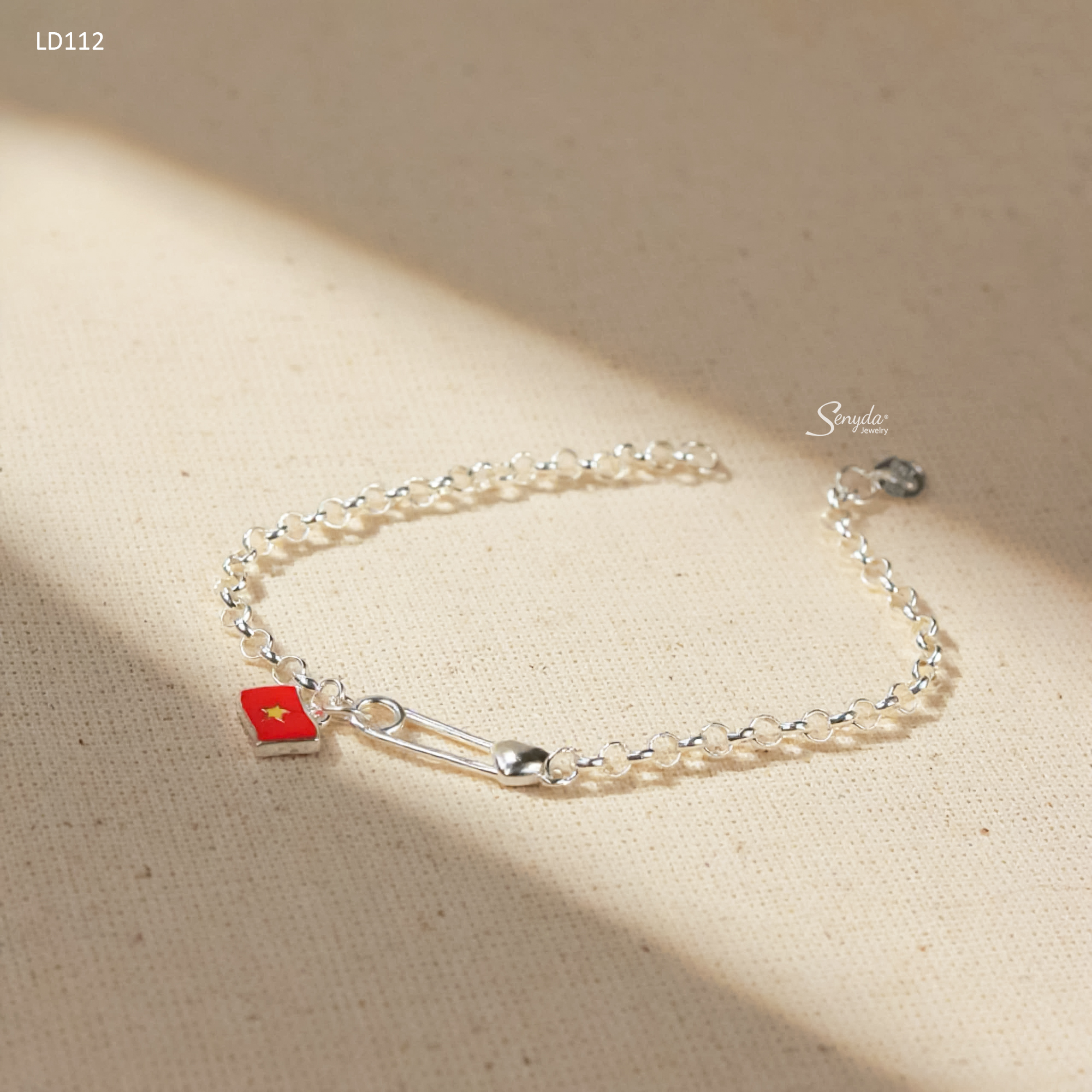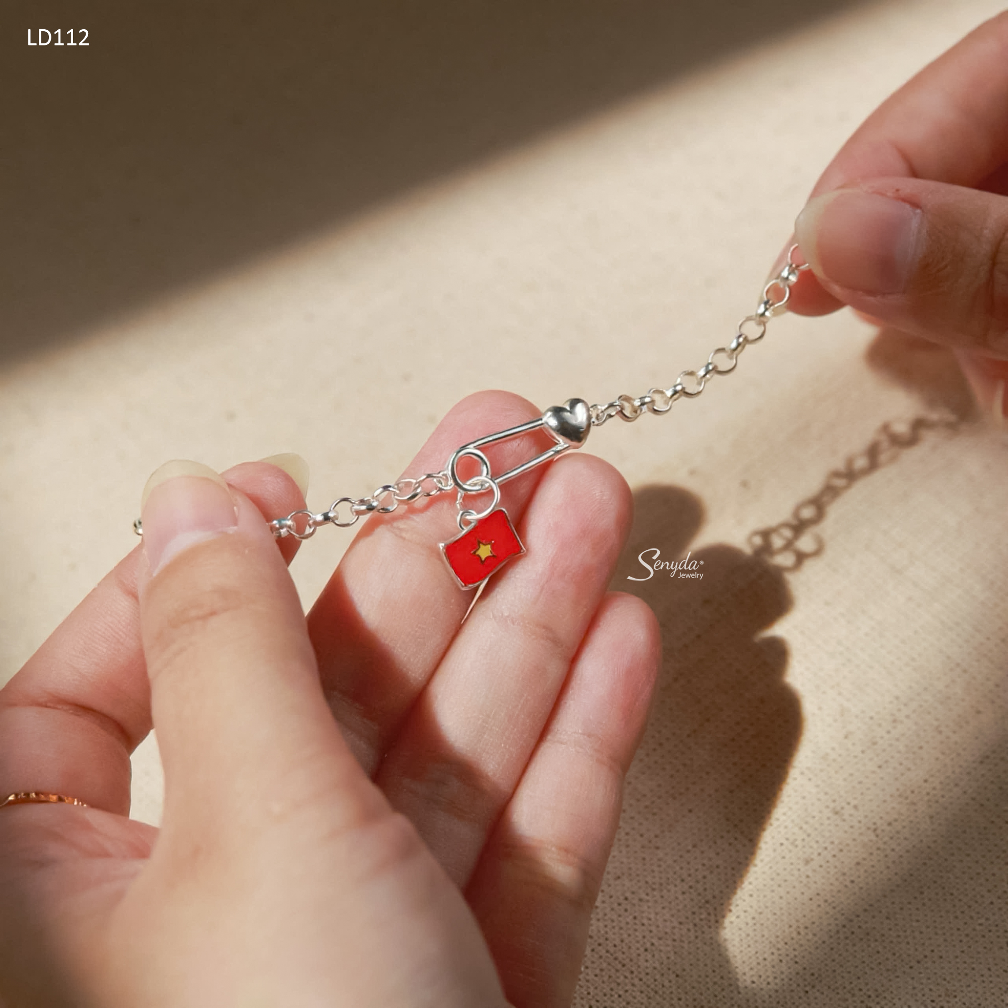 Mô tả: LD112 Lắc tay bạc Ý Senyda chữ cong tròn lớn ghim tây lá cờ treo