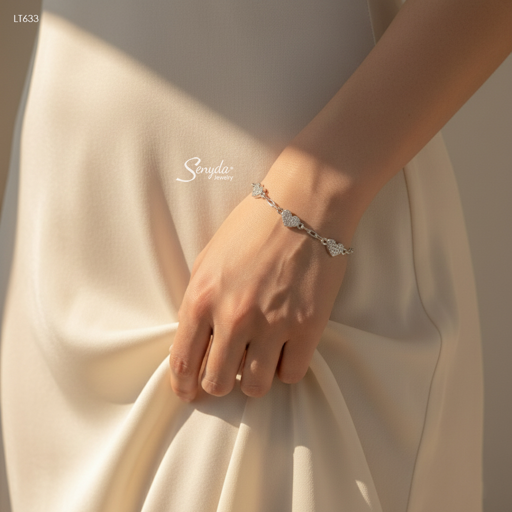 67 đánh giá cho LT633 Lắc tay bạc Ý Senyda chữ cong đôi trái tim đá